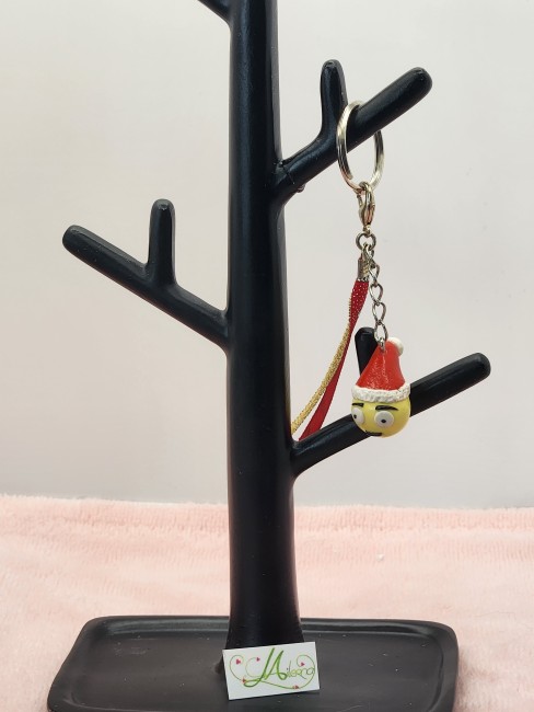 Je vous propose ce porte clefs smiley émoticone avec son bonnet de Noël en polymère,