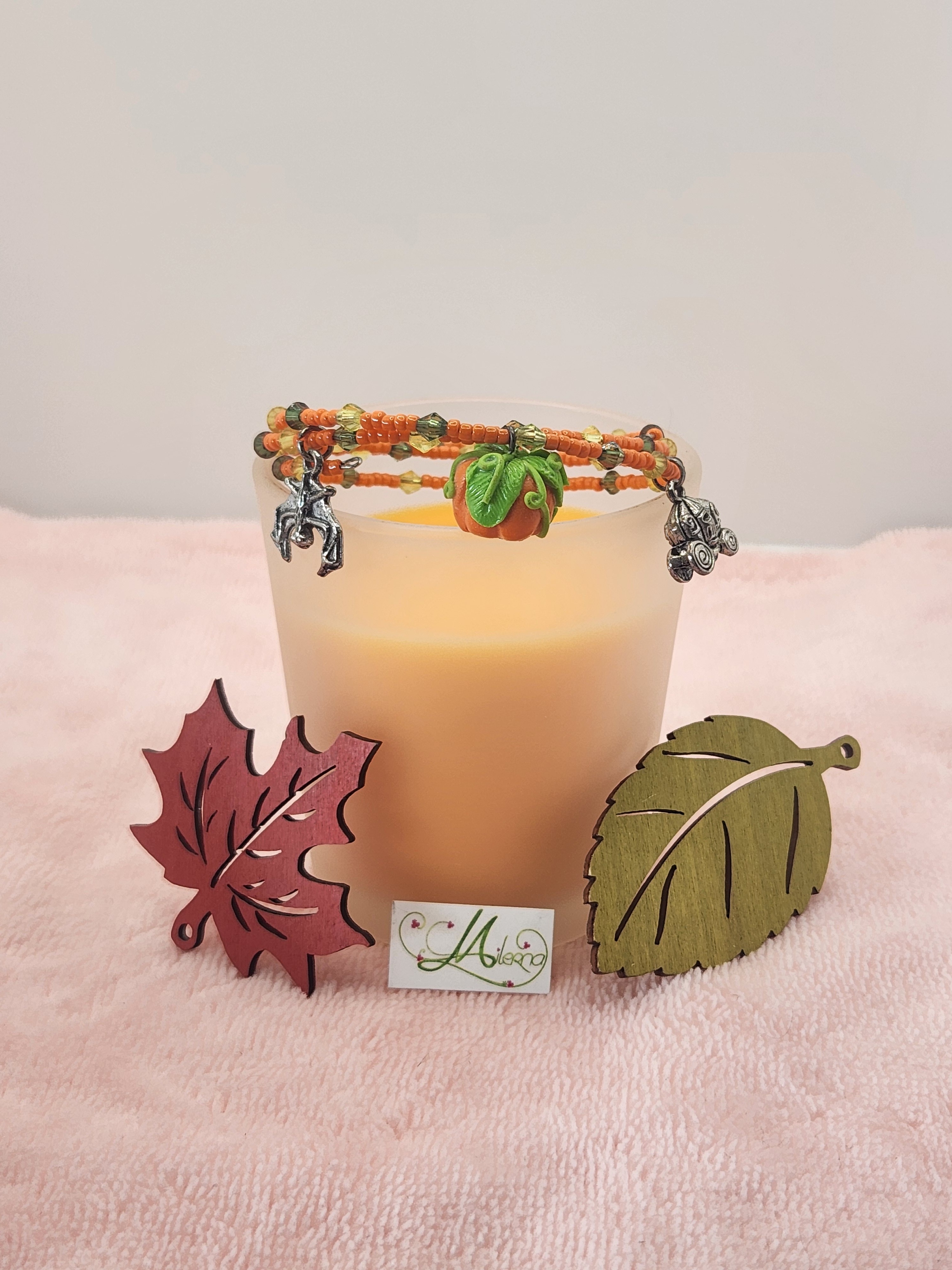 Deux breloques viennent agrémenter ce bracelet, de part et d'autre de la citrouille.