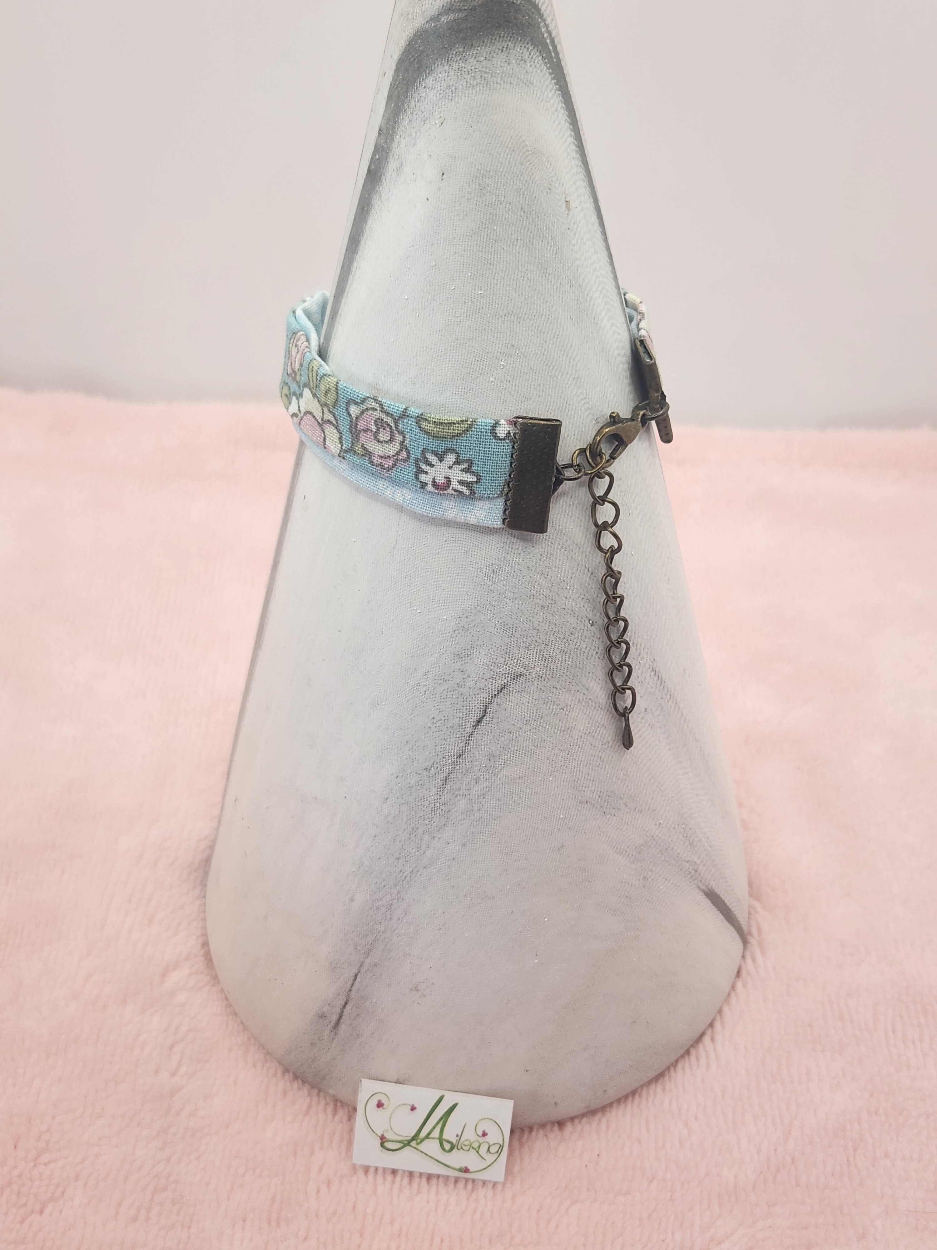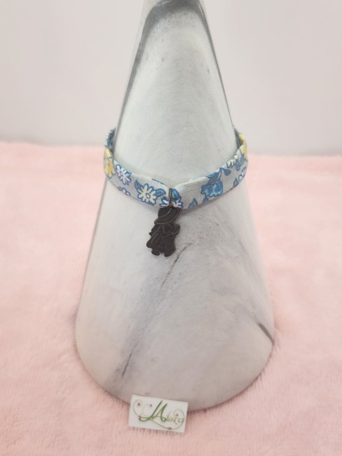 Je vous propose ce bracelet Liberty ton de bleu, taille adulte, breloque danseuse en bronze.