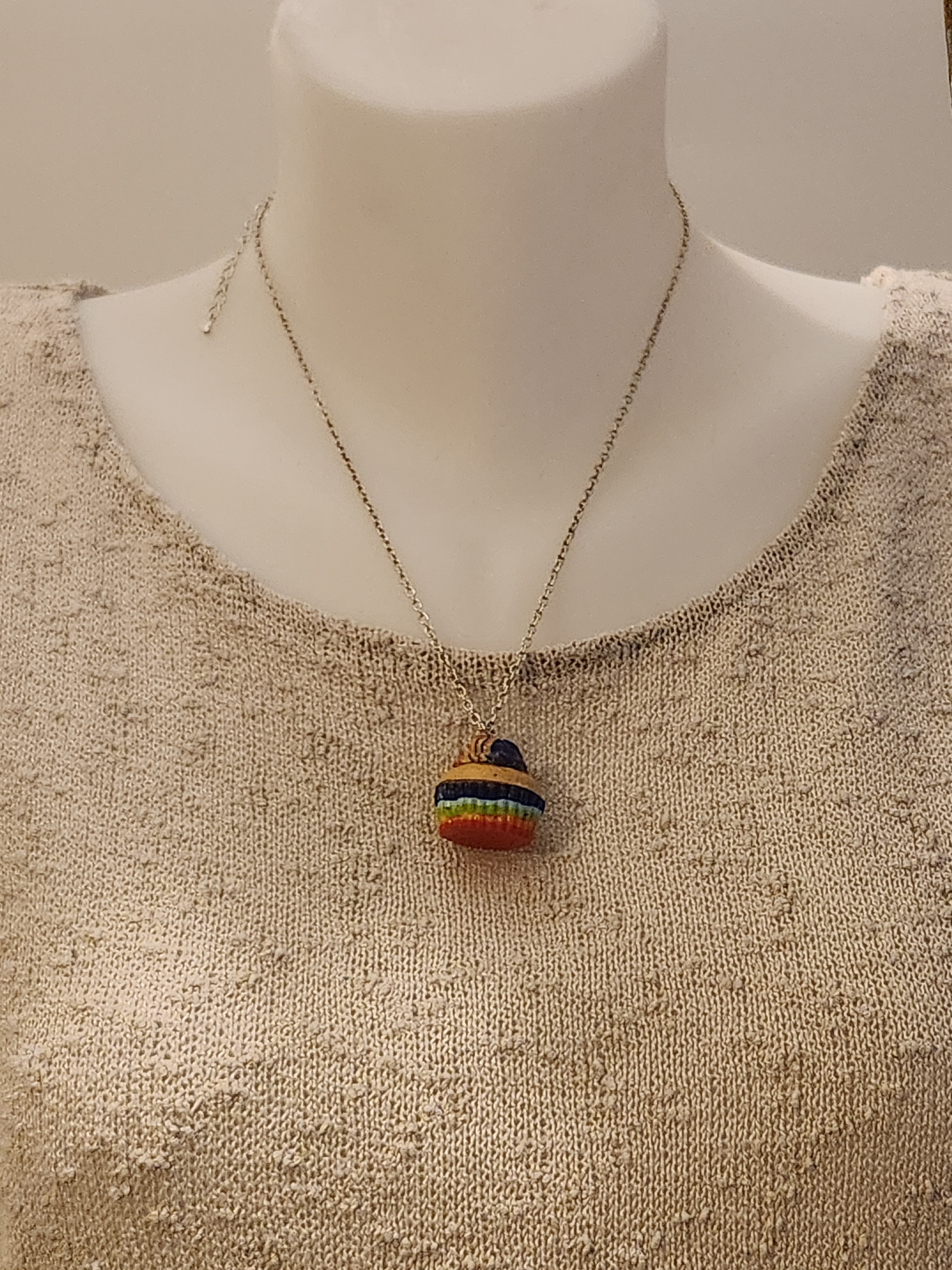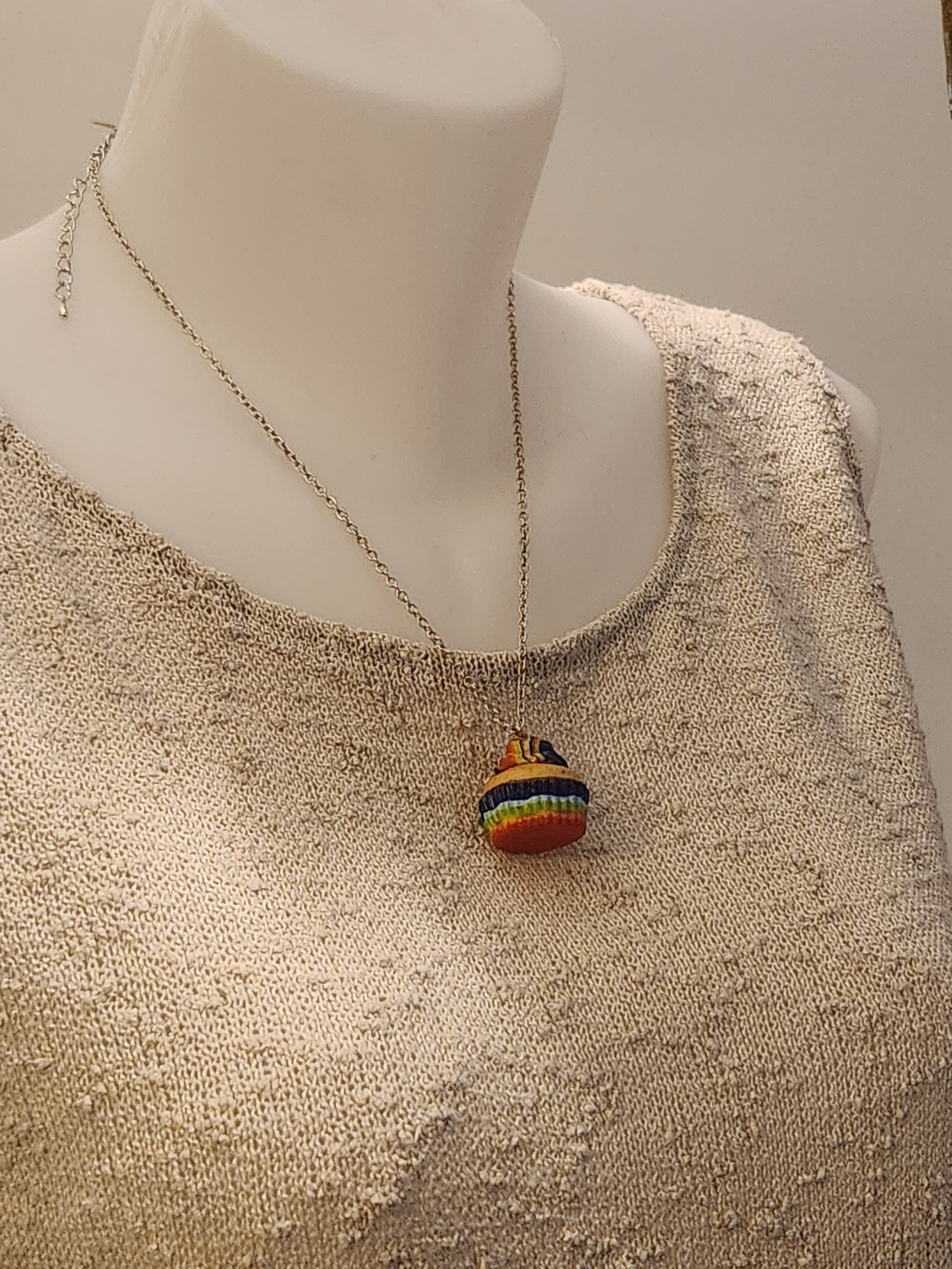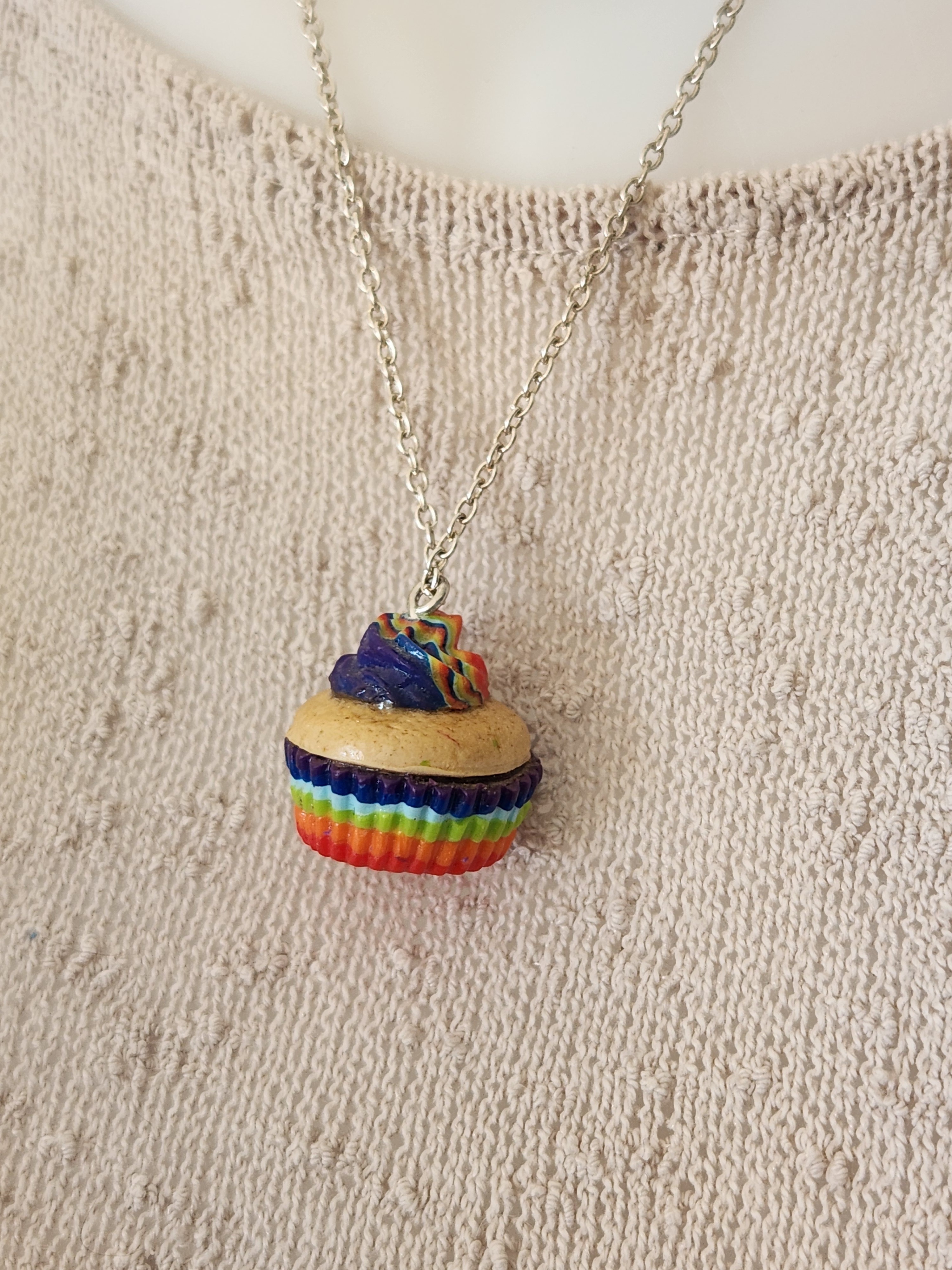 Je vous propose ce pendentif gourmand, cupcake arc en ciel en polymère, monté sur chaine argenté.