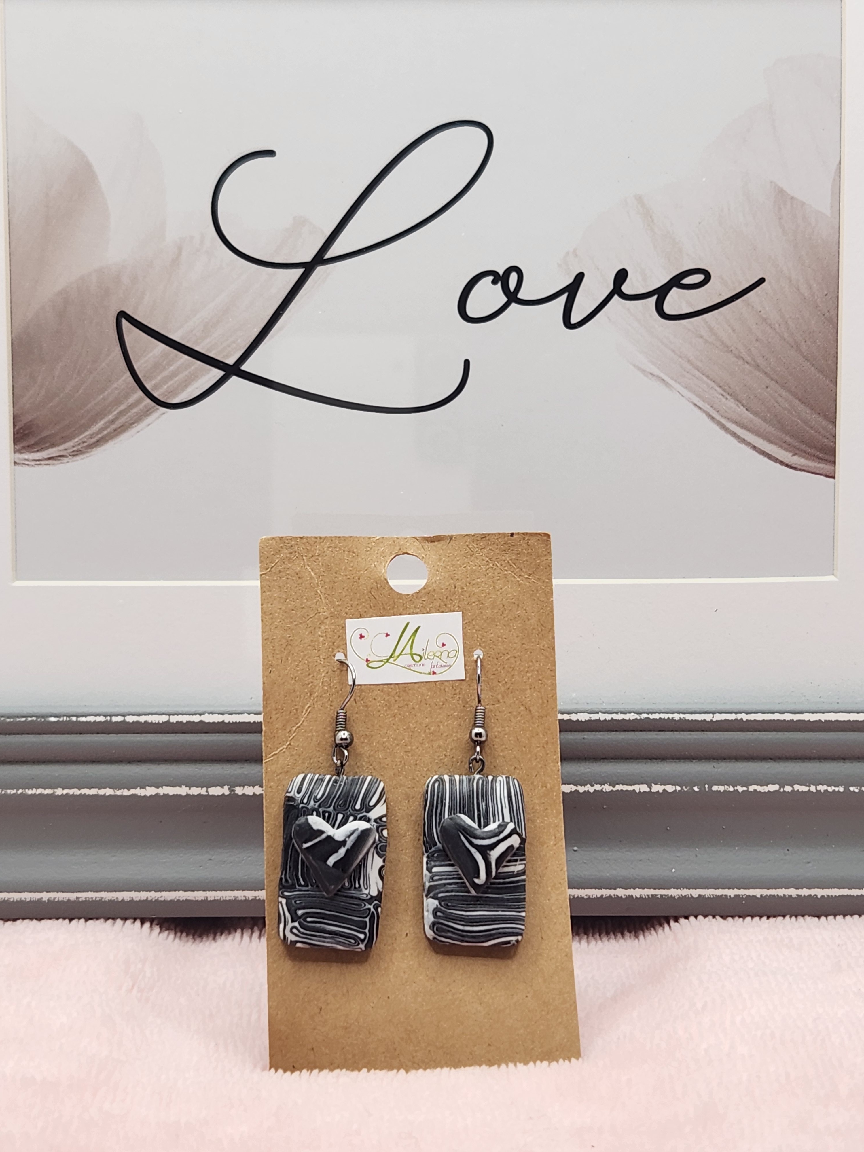 Je vous propose cette paire de boucles d'oreilles rectangulaire avec un coeur en polymère.