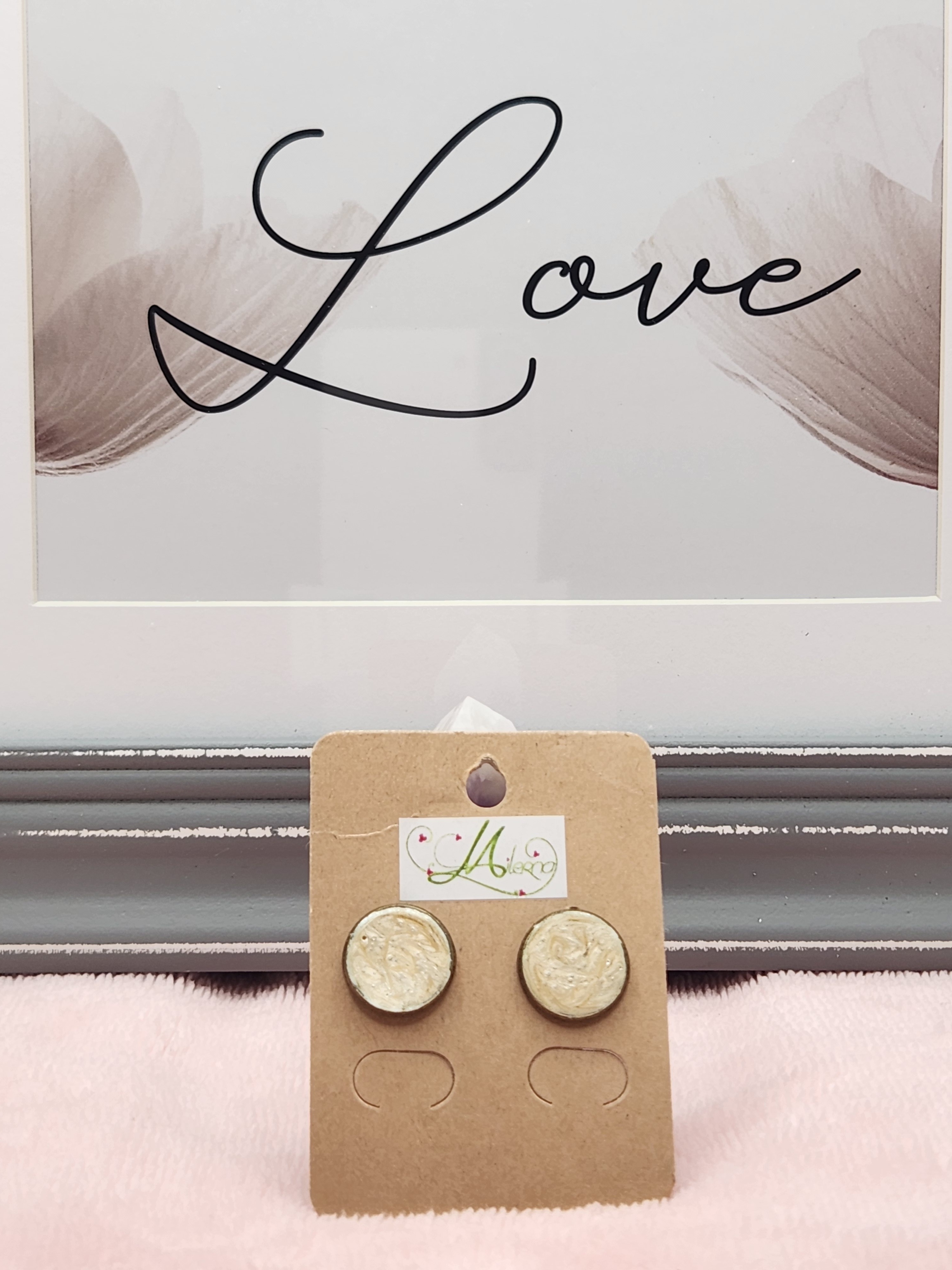 Boucles d'oreilles fantaisie cabochon en bronze, coloris crème nacré