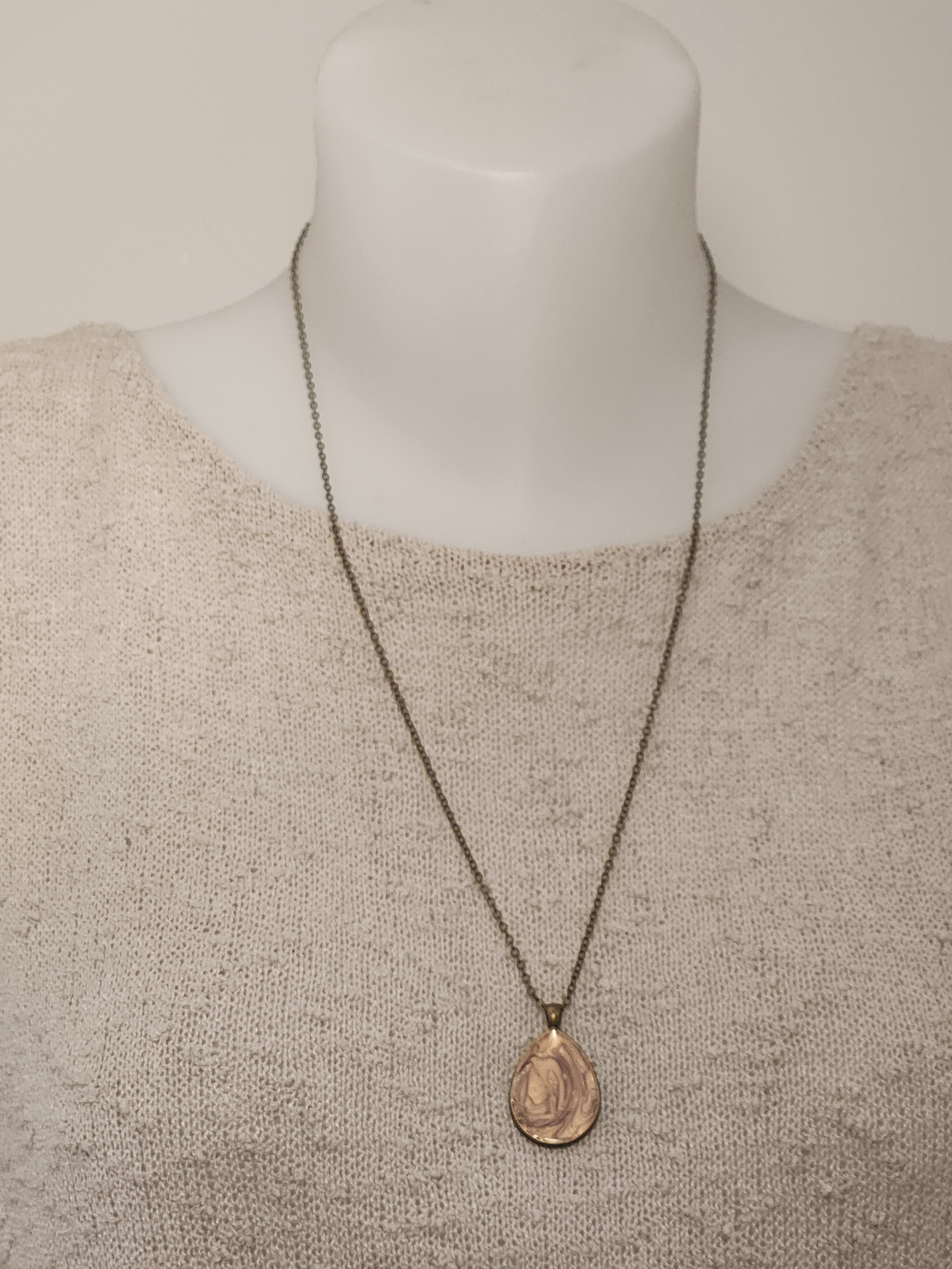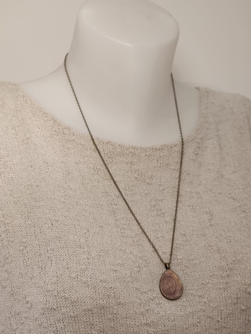 Je vous propose ce collier avec son cabochon en bronze à effet, de couleur mauve