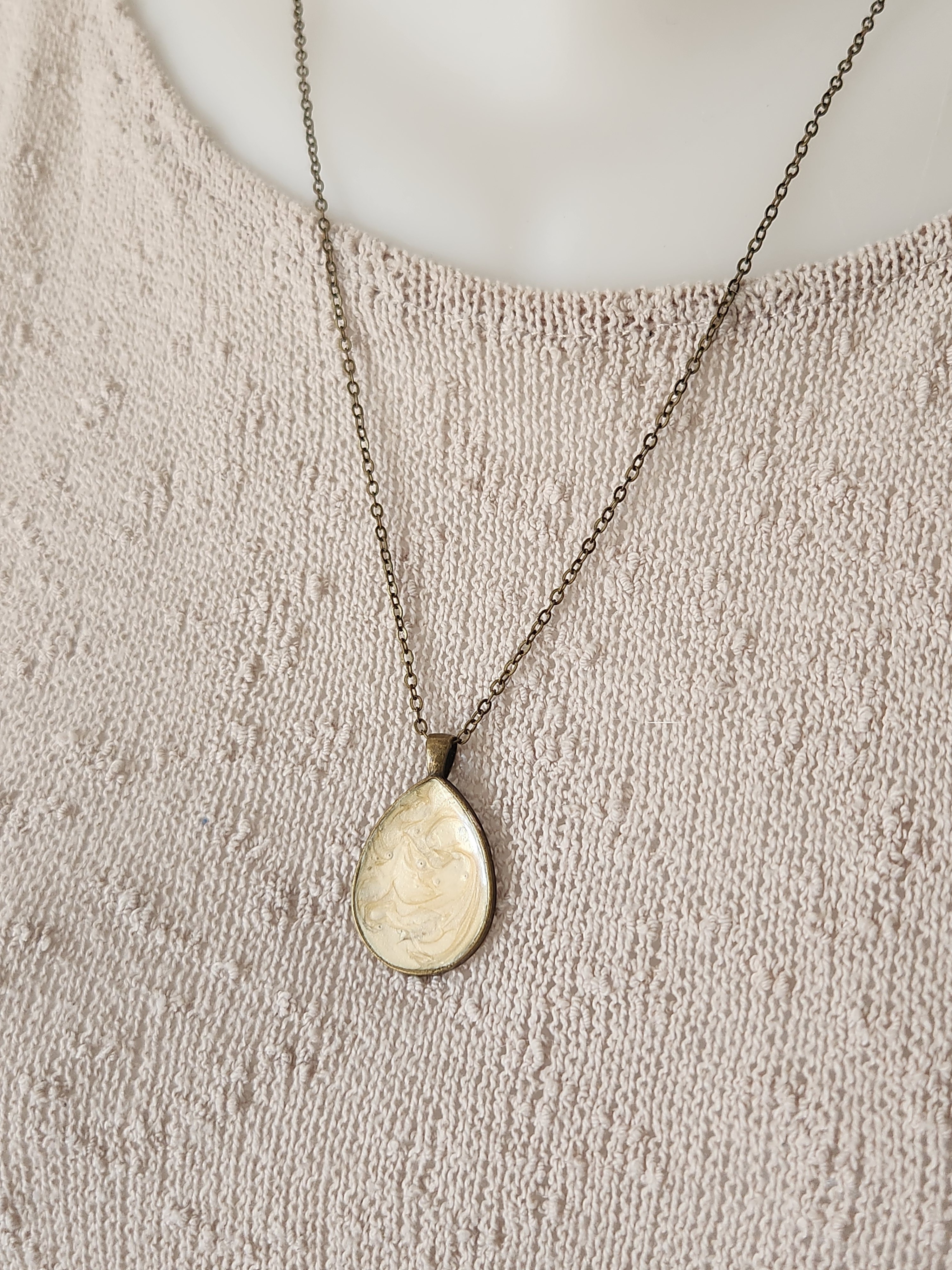 Je vous propose ce collier avec son cabochon en bronze à effet, de couleur crème