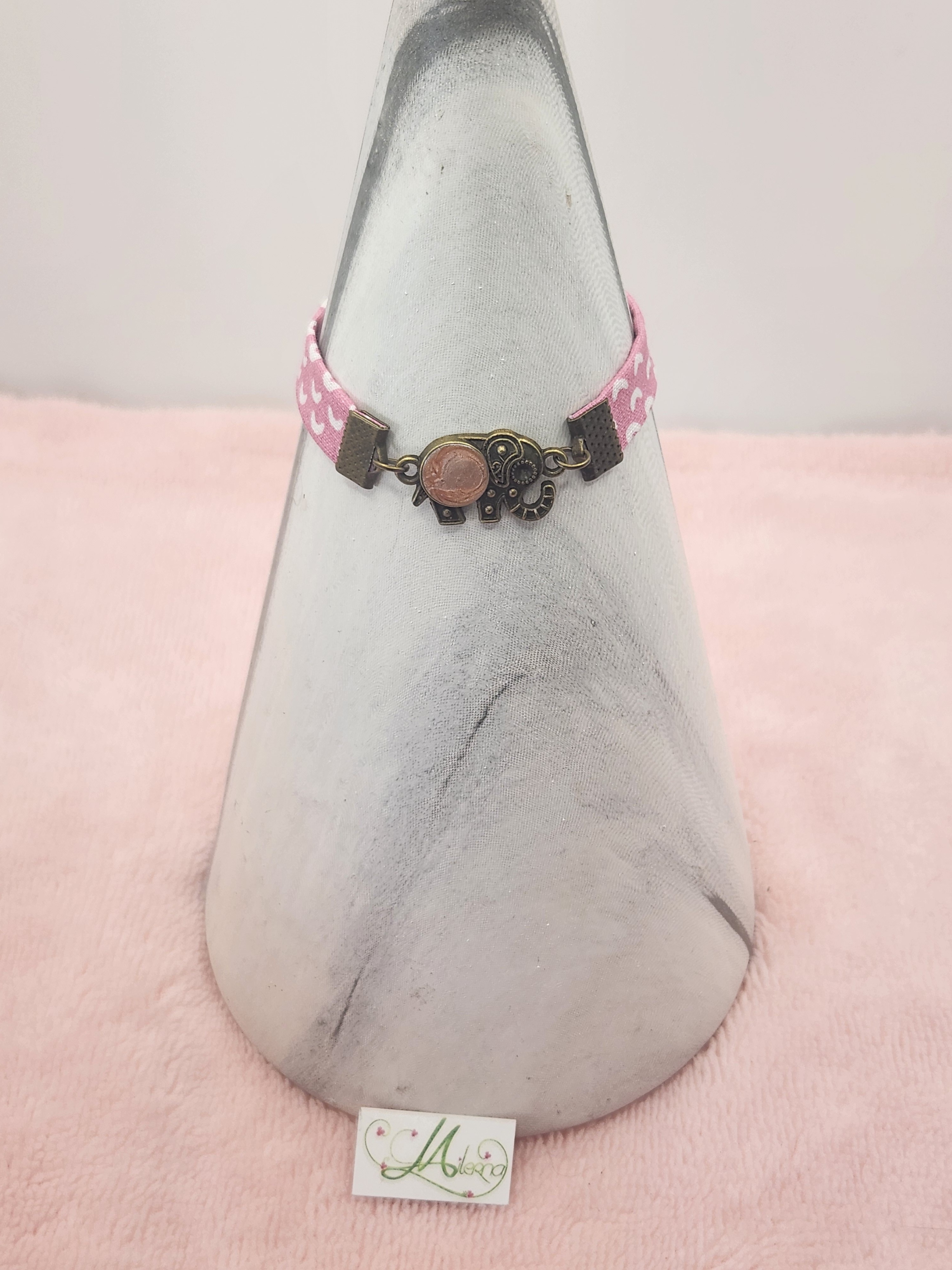 Je vous propose ce bracelet Liberty ton de rose, taille adulte ado/adulte, breloque éléphant avec peinture à effet rose en bronze.