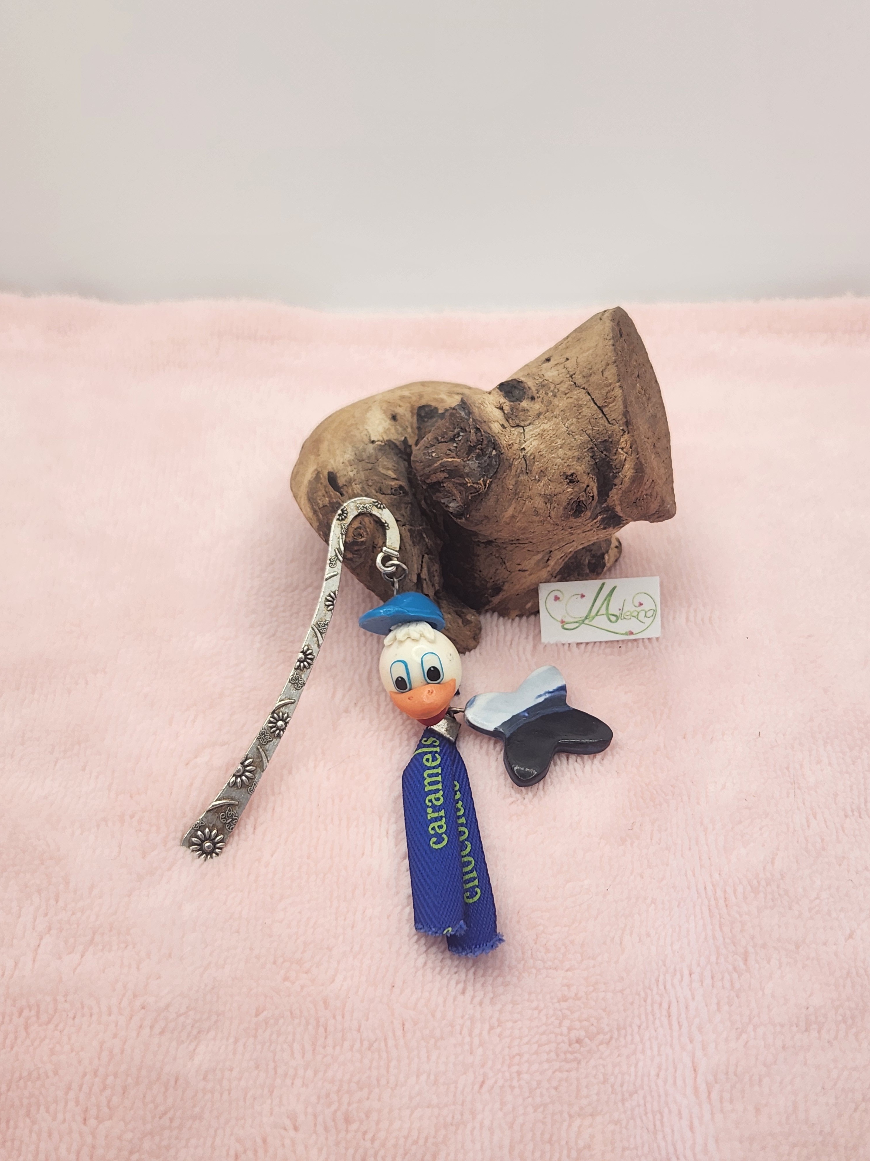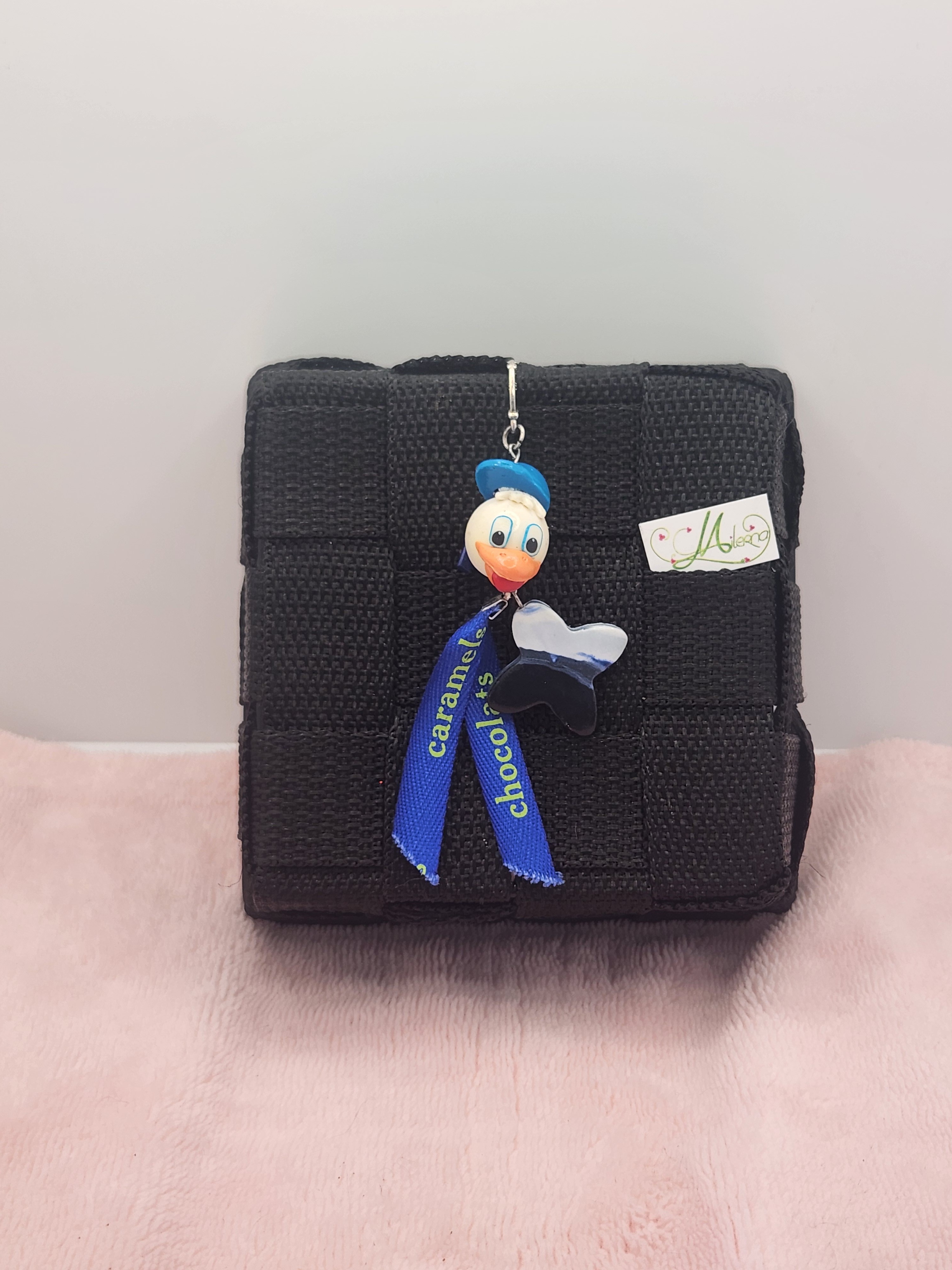 Il est composé du "célèbre canard" avec breloque bleue et rubans "caramel et chocolat".
