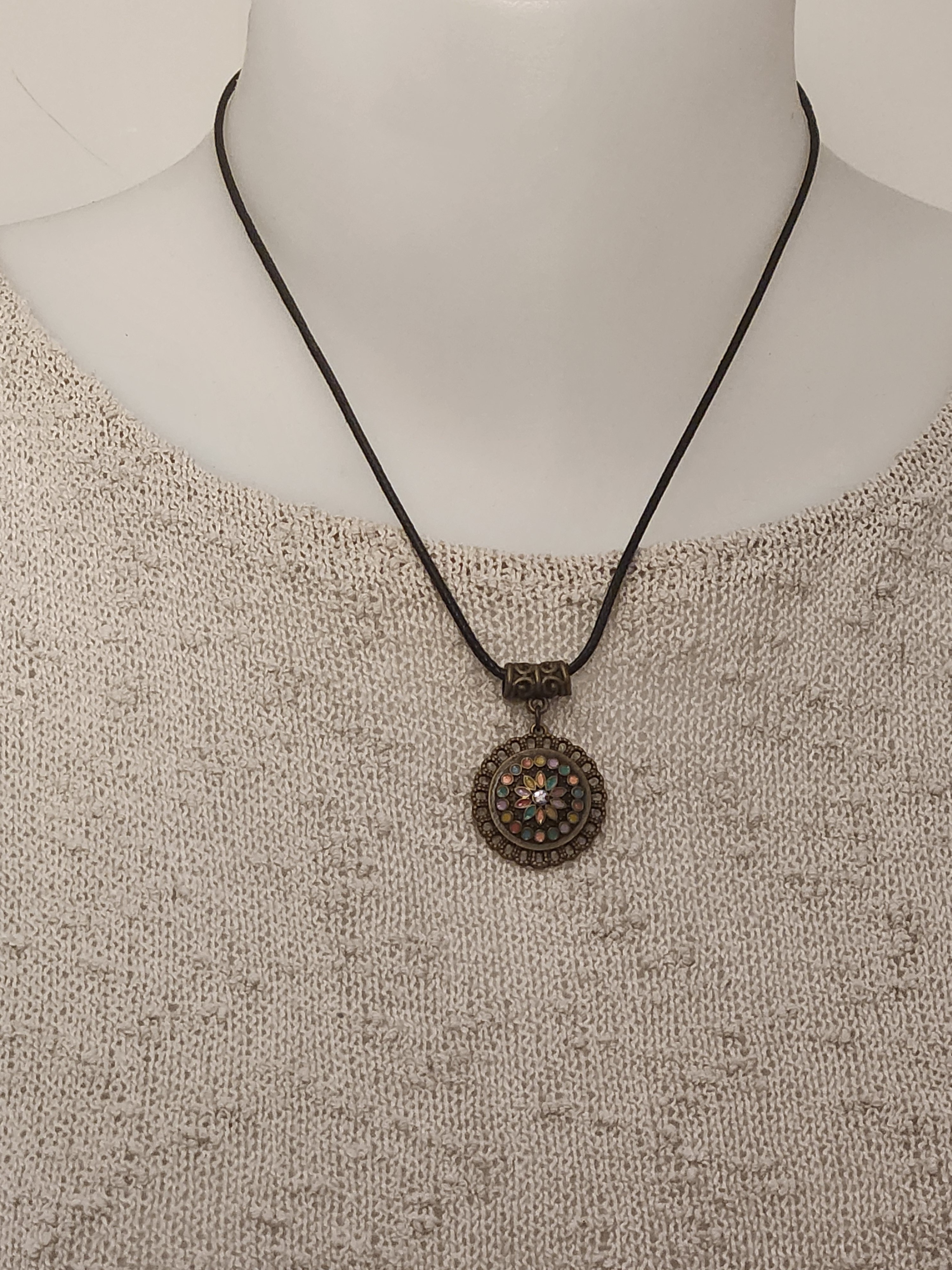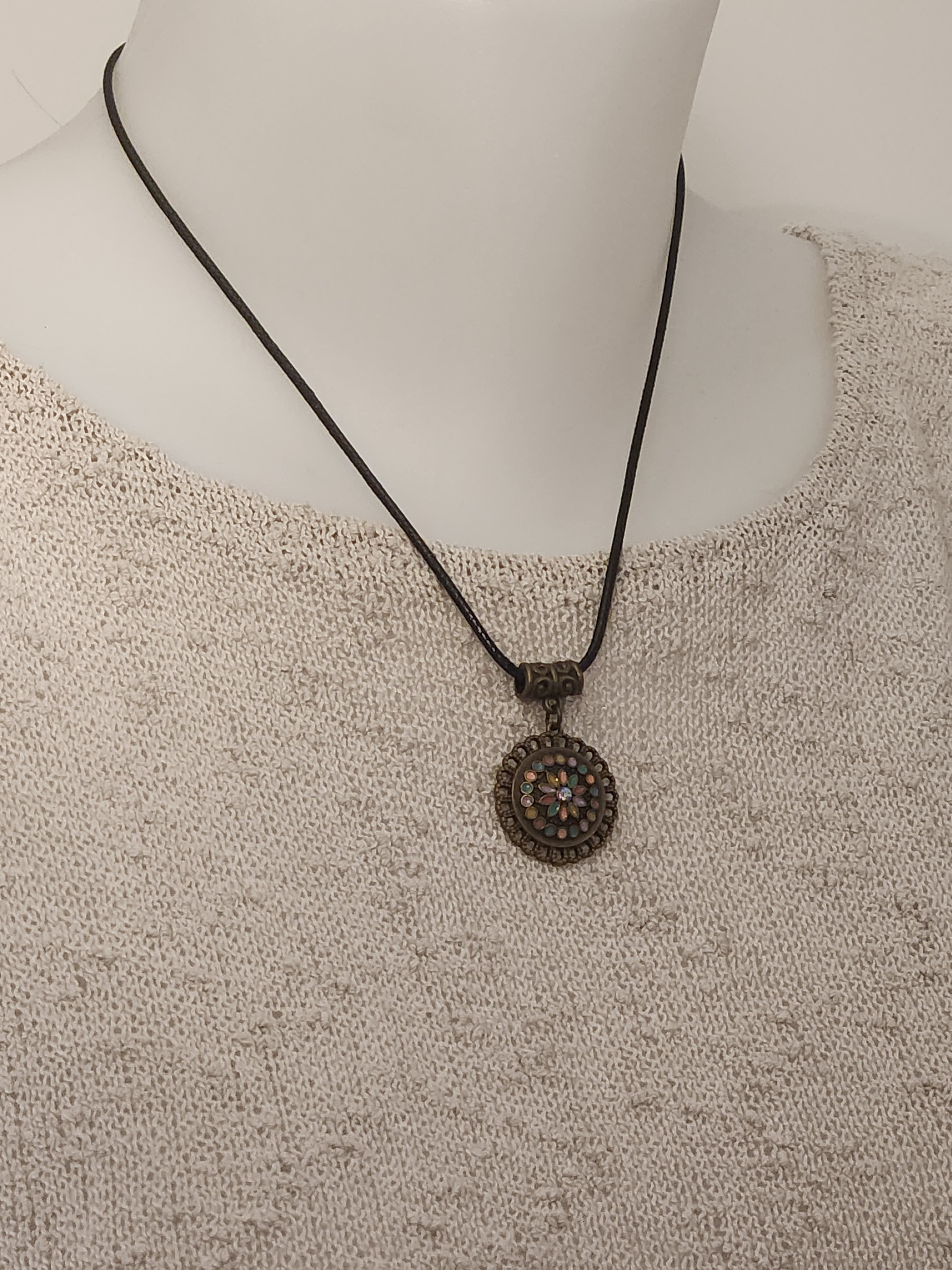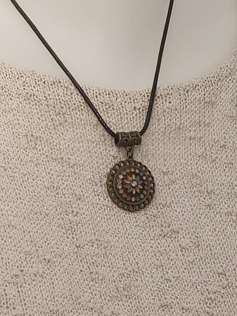 Je vous propose ce pendentif rond en métal fantaisie en bronze