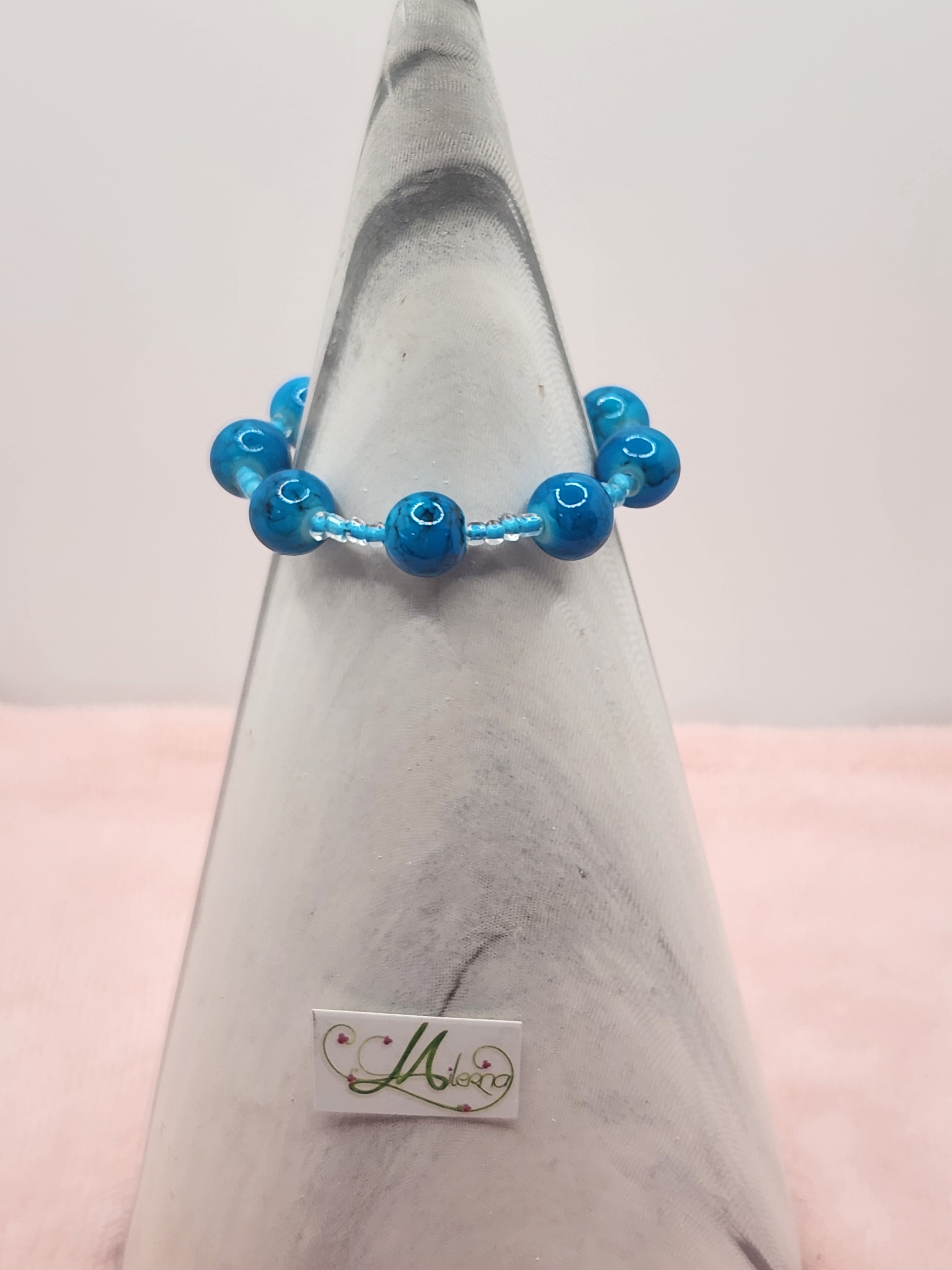 Il se compose de perles de rocaille bleue. Des grosses perles ronde de coloris bleu turquoise.