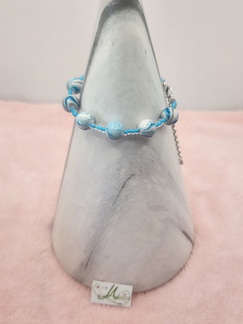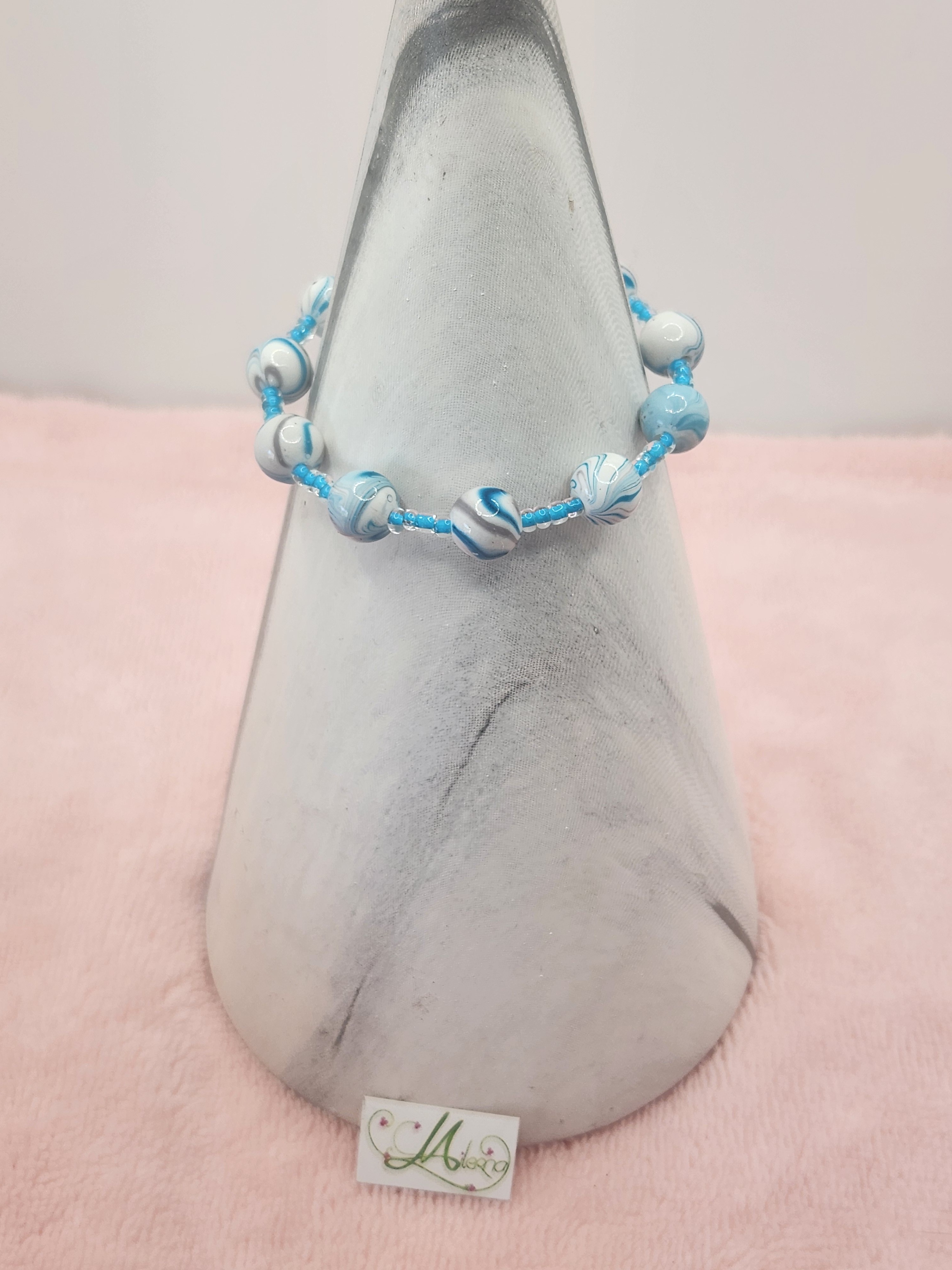 Il se compose de perles de rocaille bleue. Des grosses perles ronde de coloris bleu turquoise.
