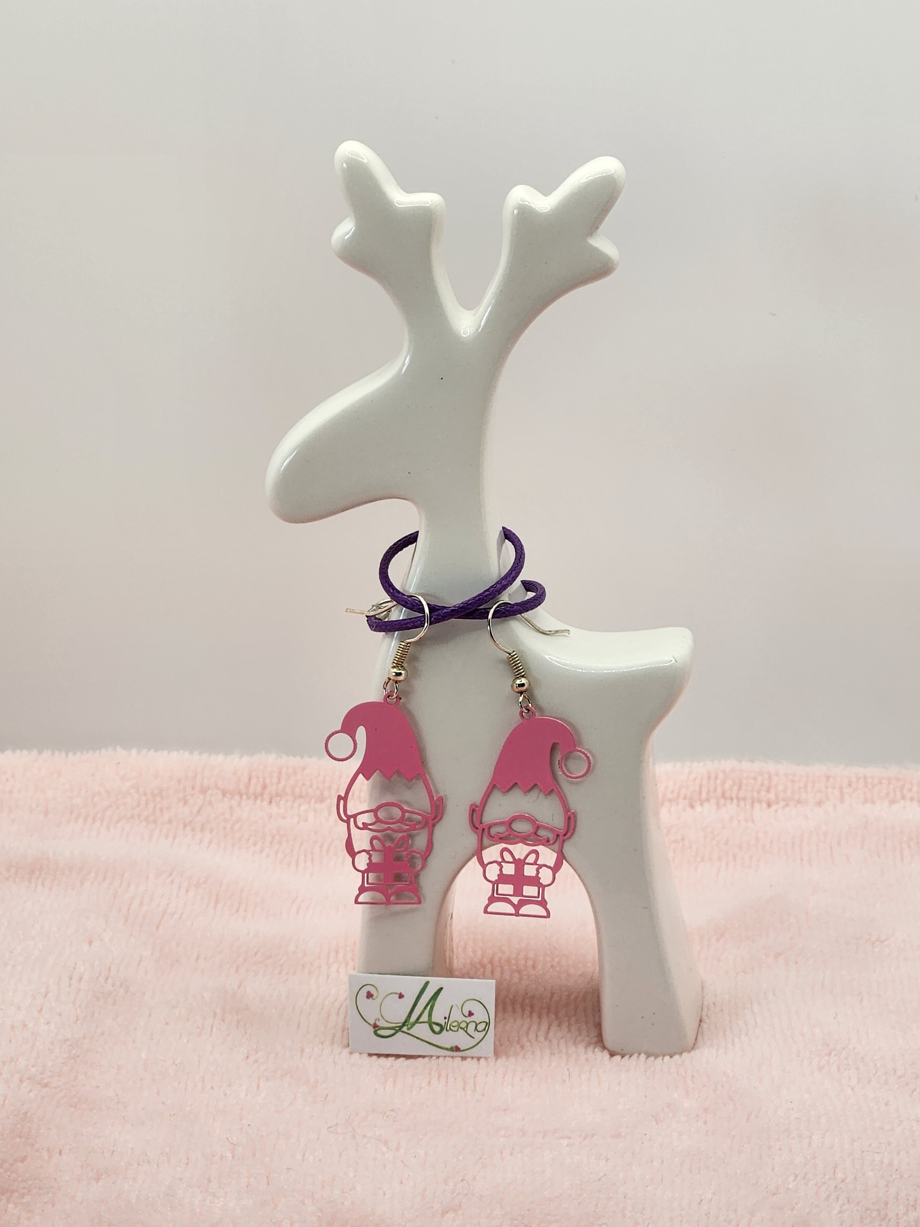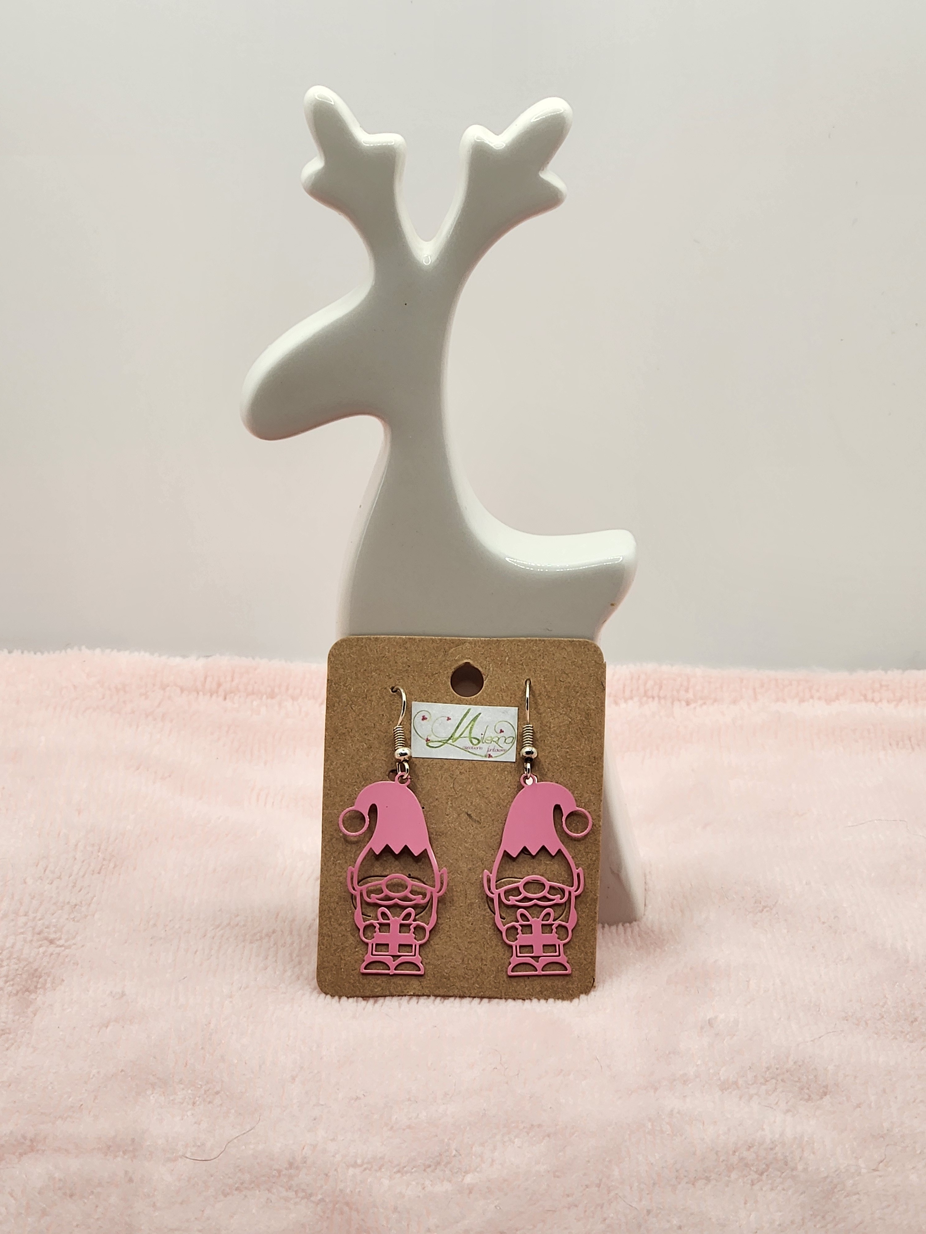 Je vous propose cette paire de boucles d'oreilles estampe gnome rose de Noël.
