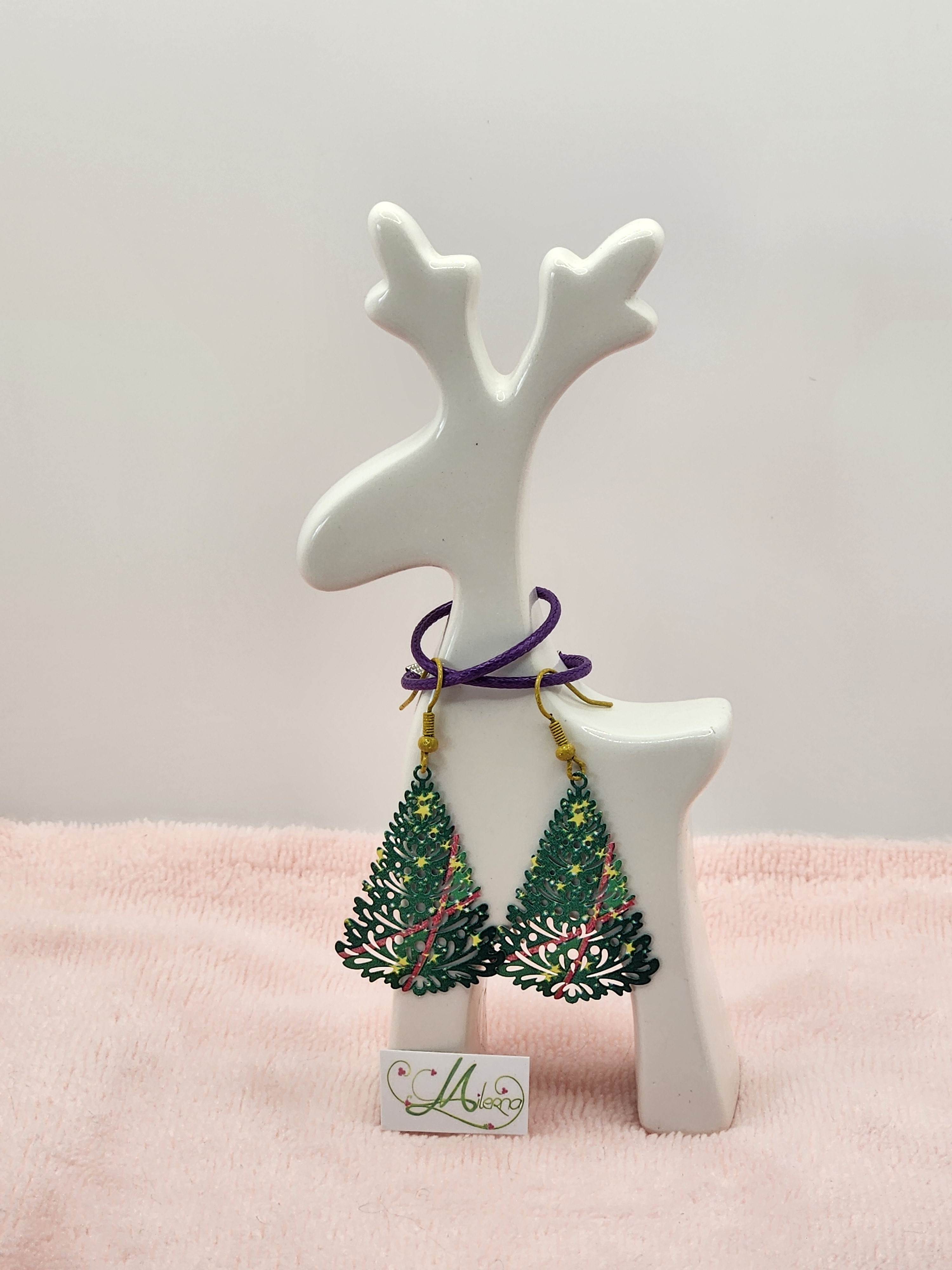 Je vous propose cette paire de boucles d'oreilles estampe sapin de Noël vert.
