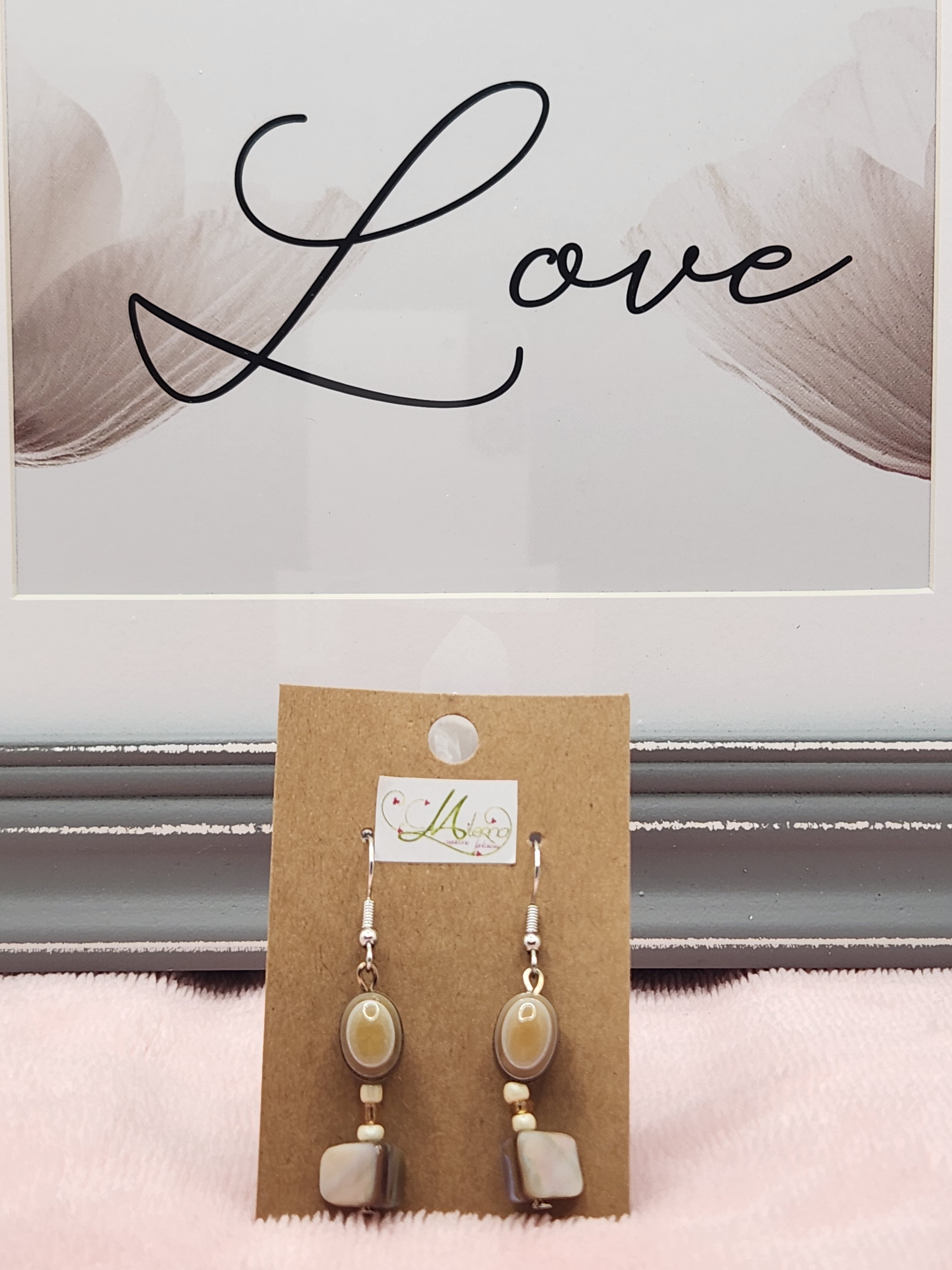Boucles d'oreilles perles nacrées composée d'une perle ronde allongée et d'une perle en nacre.