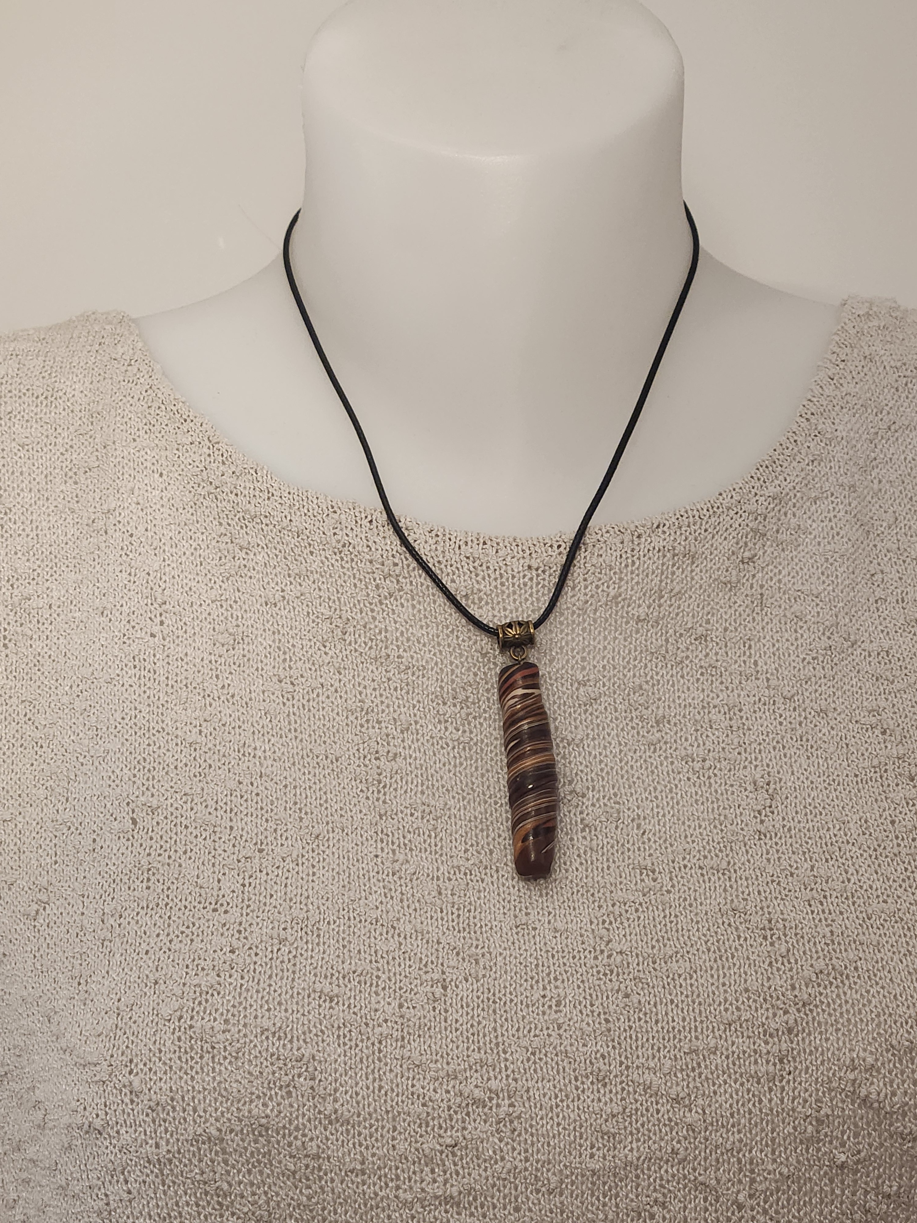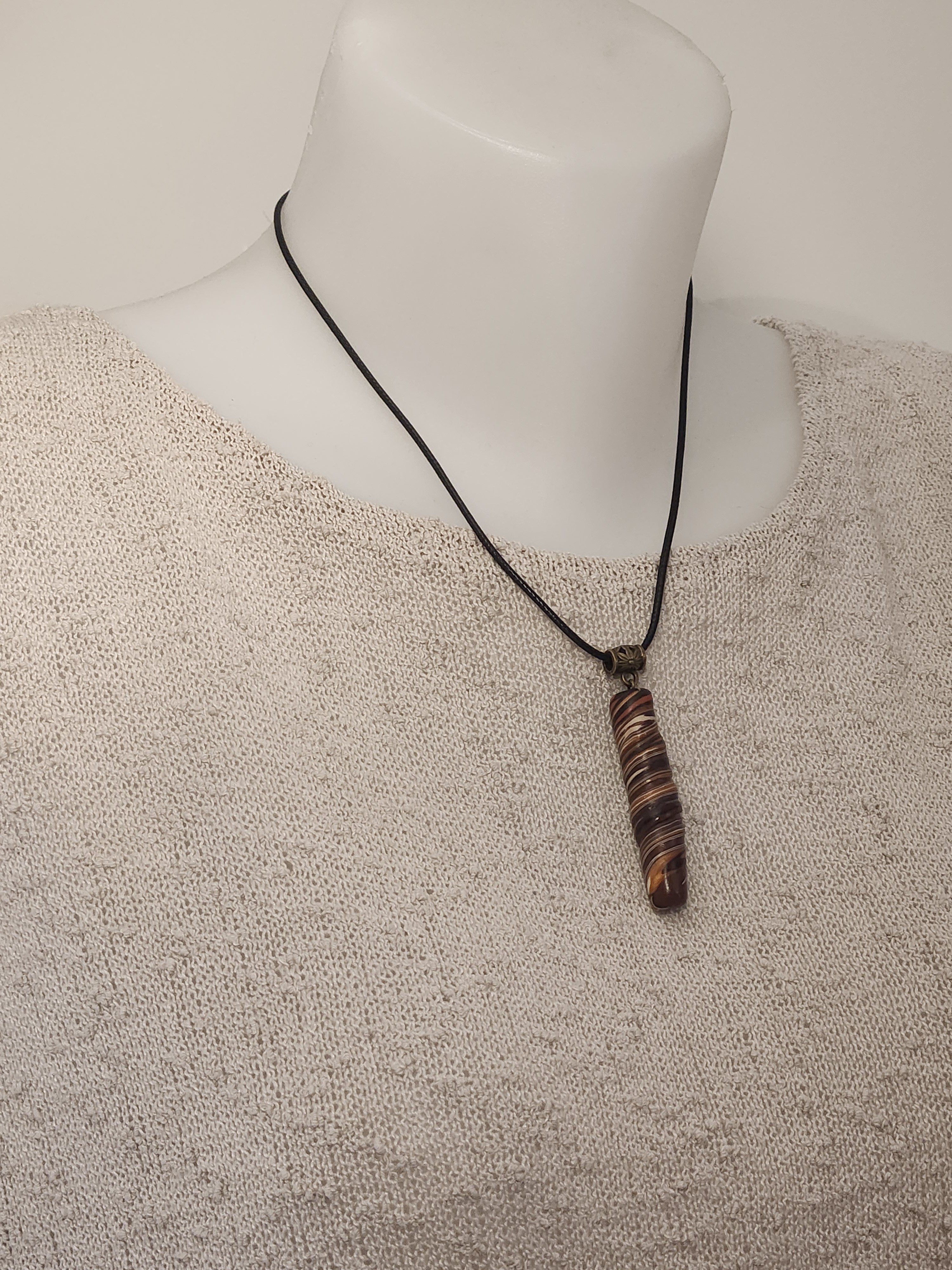 Je vous propose ce pendentif en polymère bâton de couleurs marbré, cordon en coton noir.