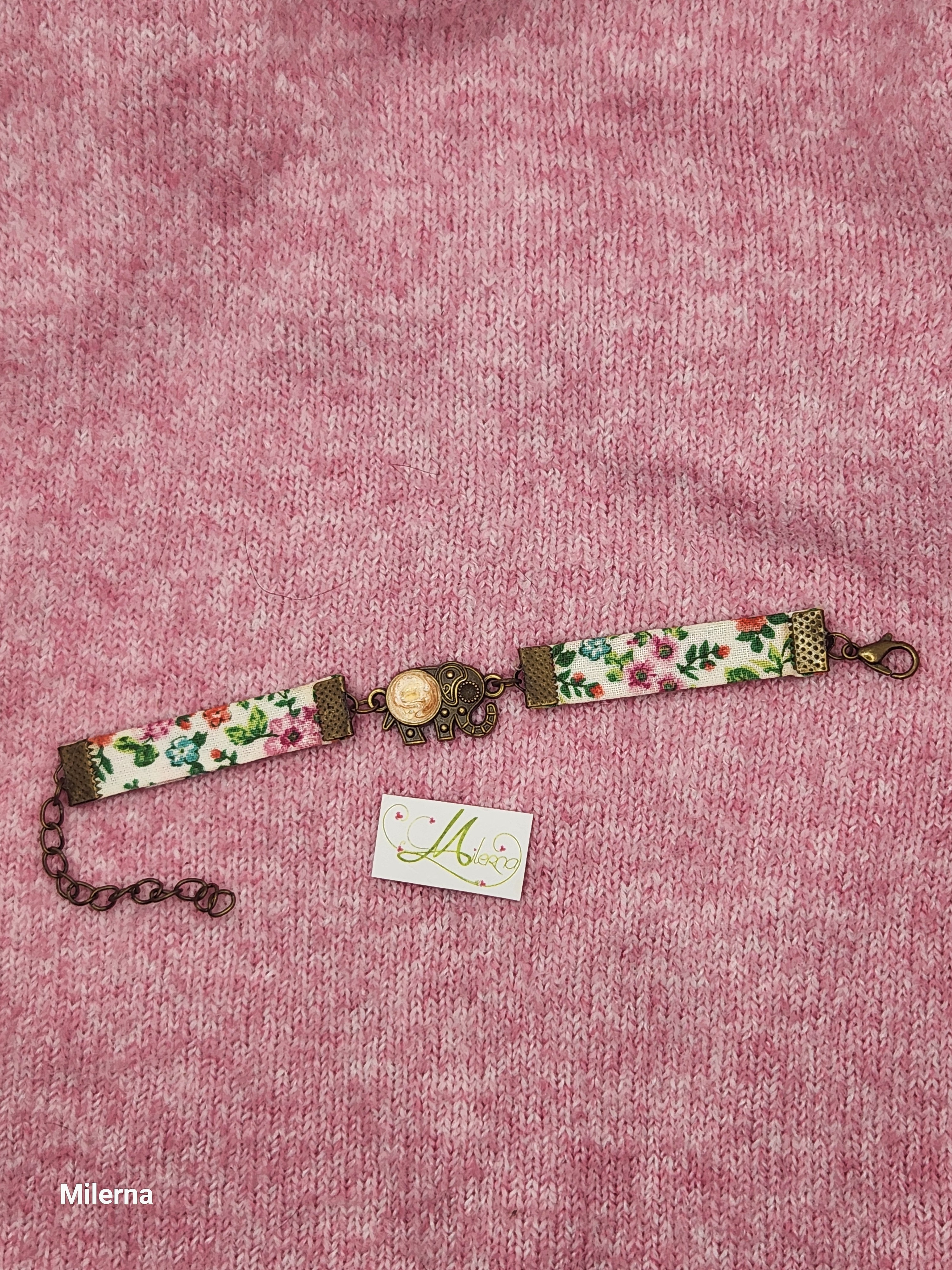 Je vous propose ce bracelet Liberty ton de blanc et rose, taille adulte ado/adulte, breloque éléphant avec peinture à effet rose en bronze.