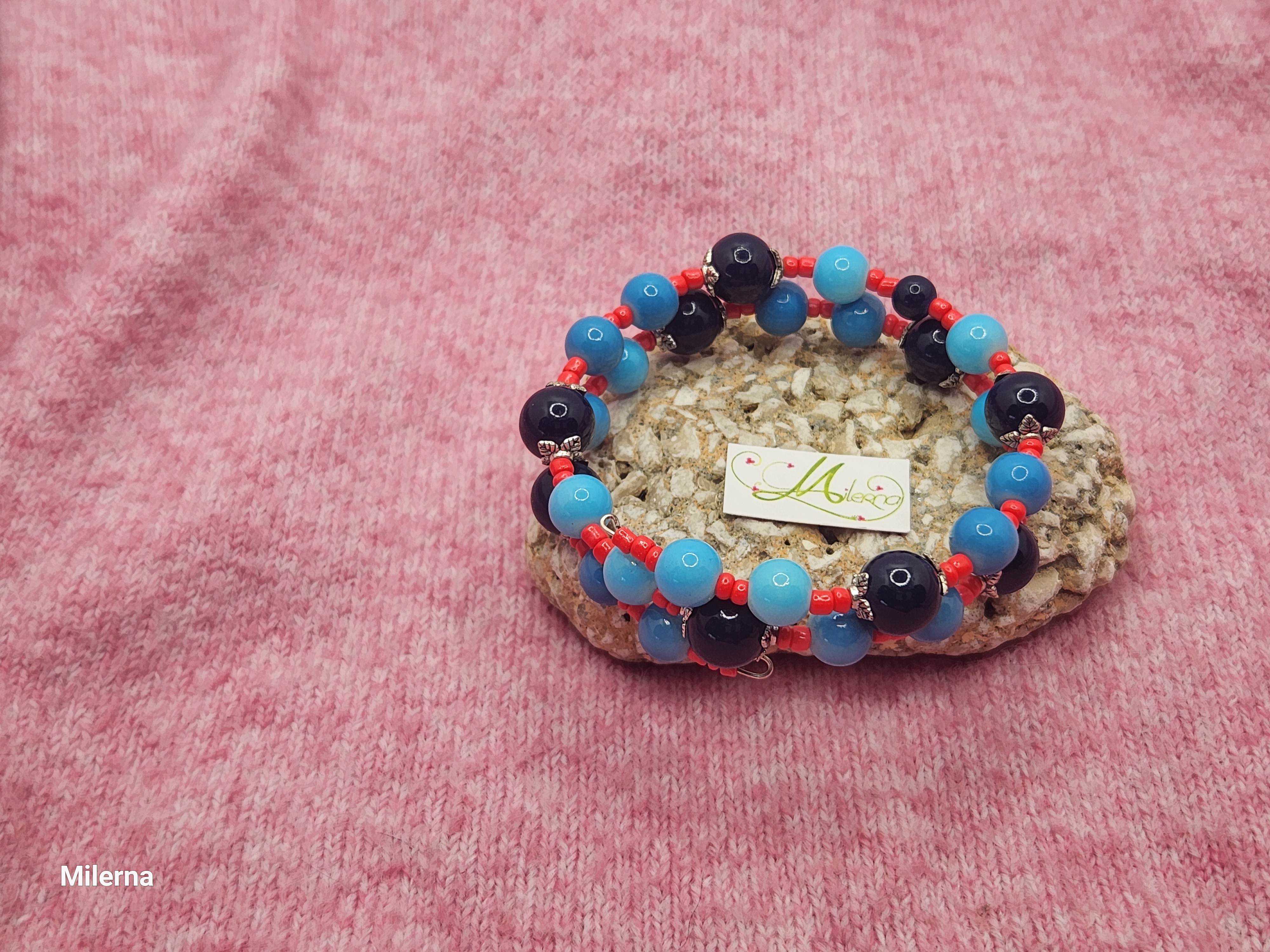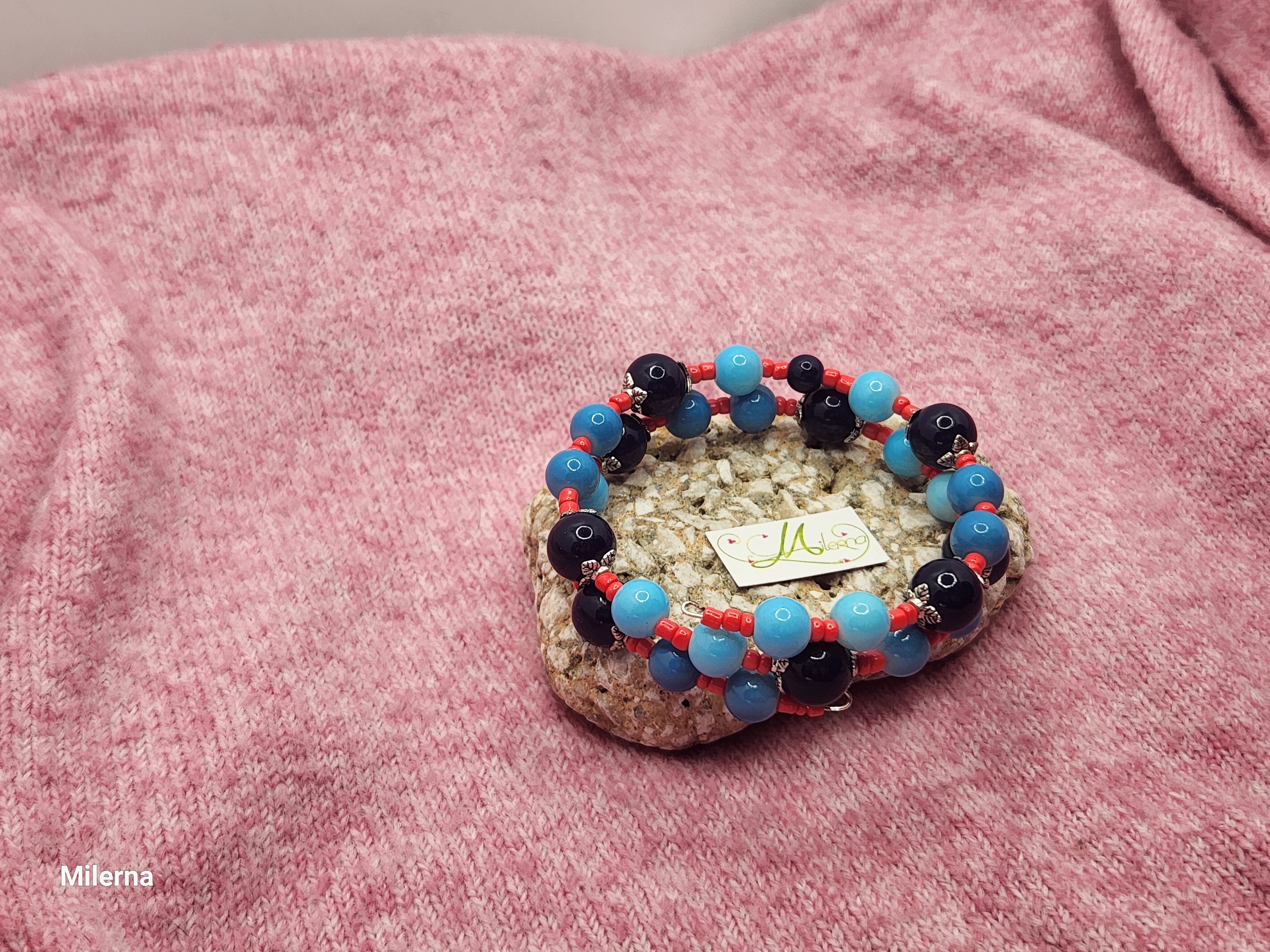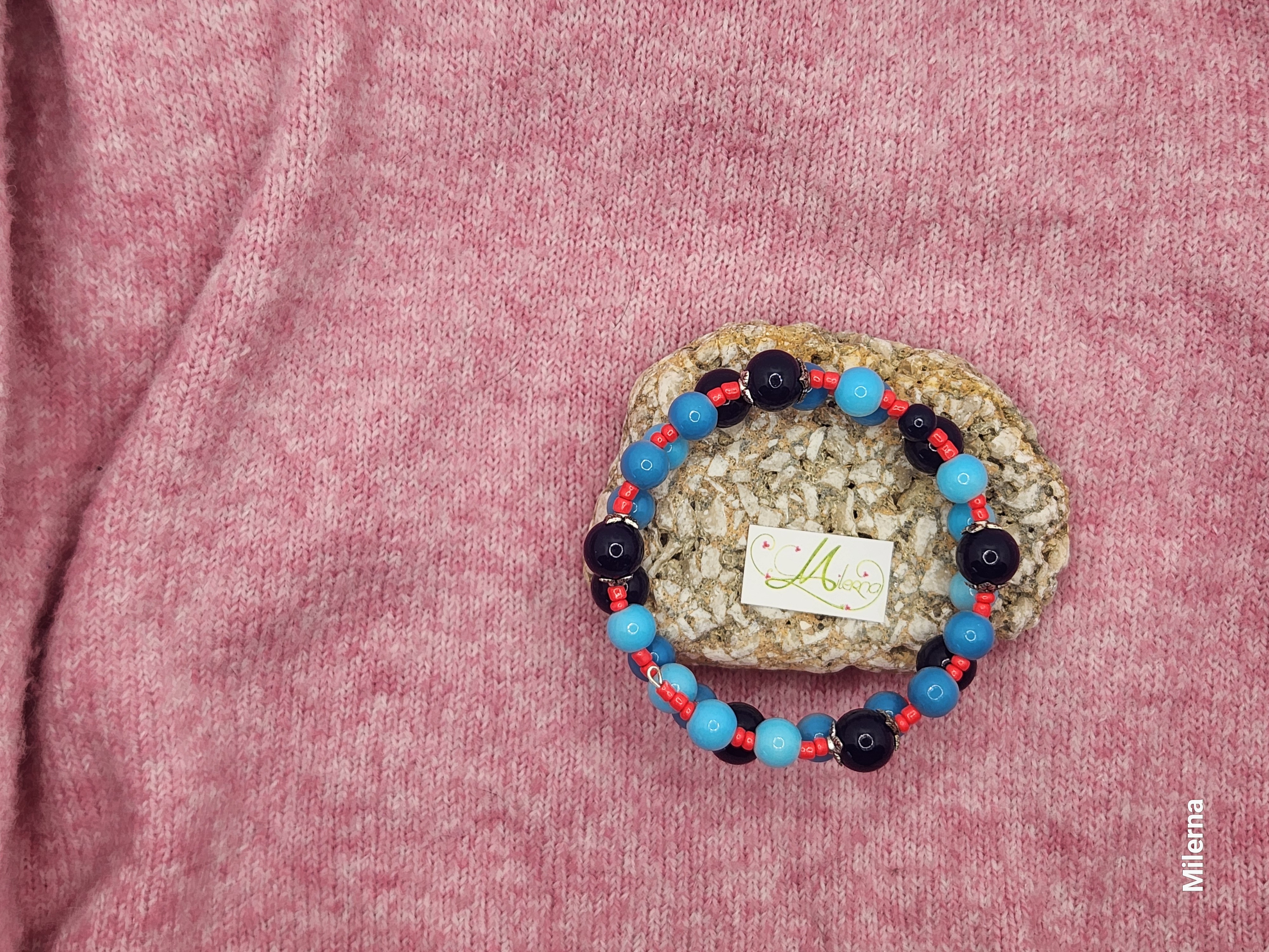 Il se compose de perles dans les tons de bleu avec des perles de rocailles corail.