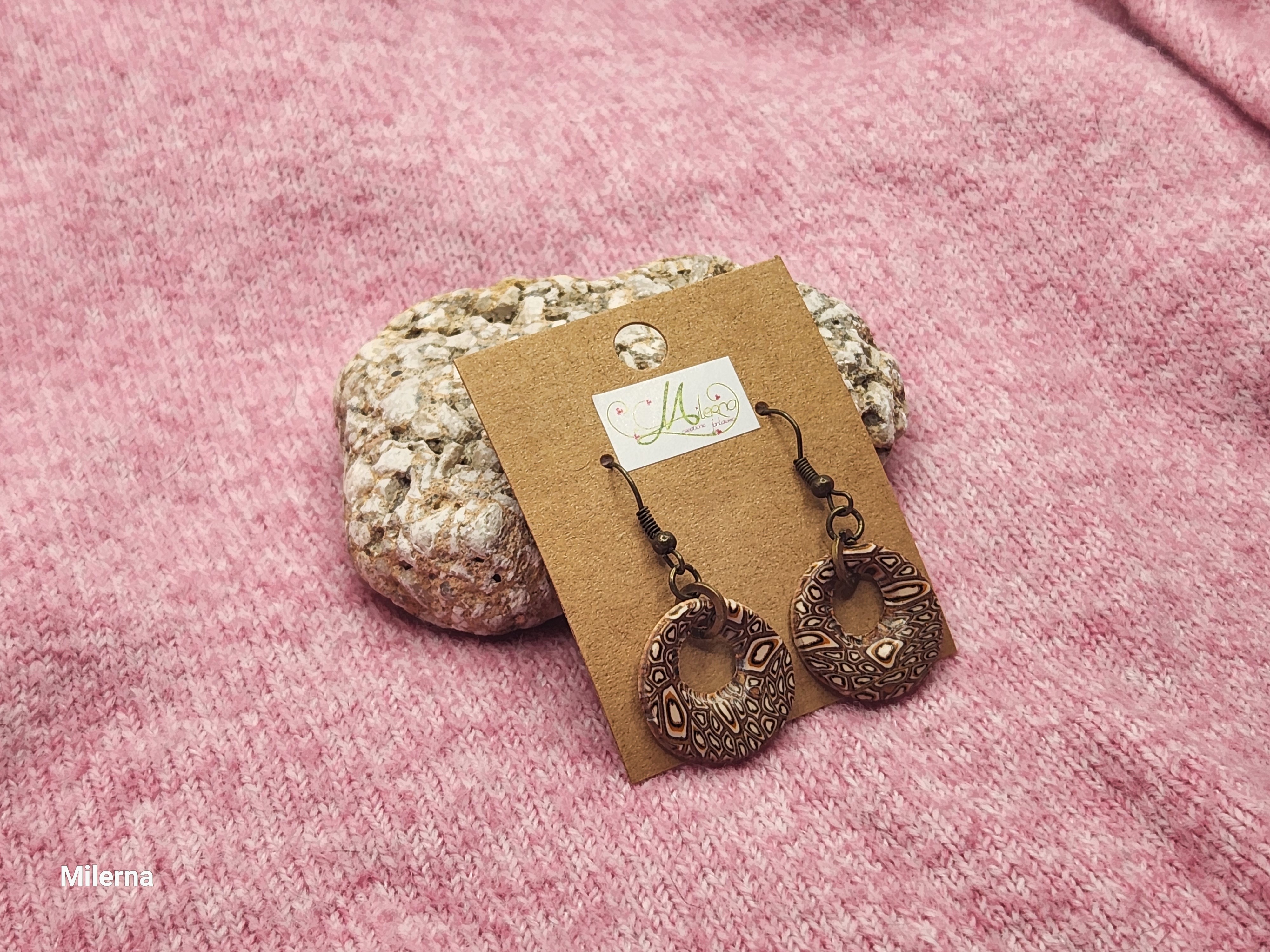 Je vous propose cette paire de boucles d'oreilles ronde de couleur marron/crème à motif en polymère, boucle de coloris bronze.