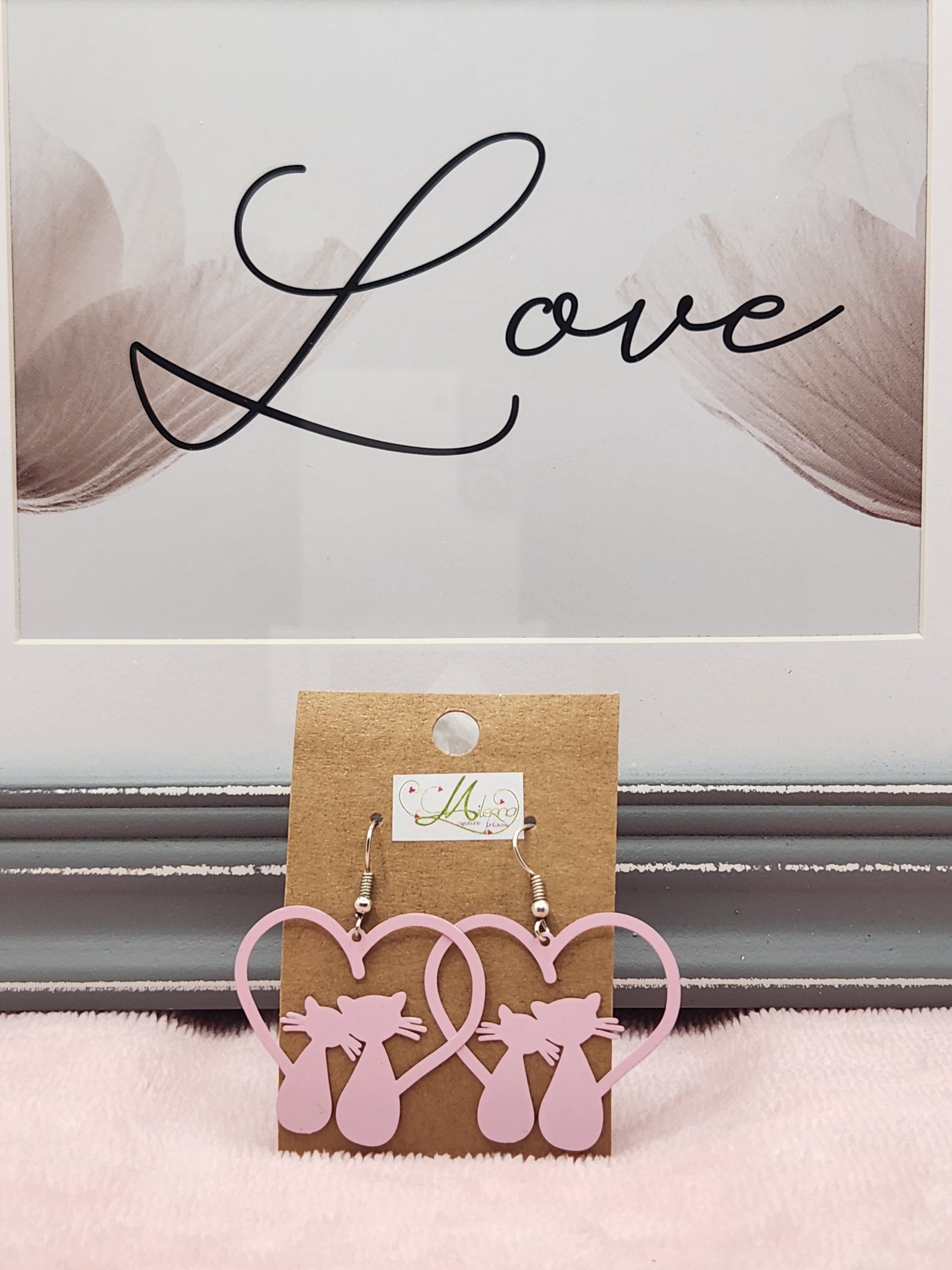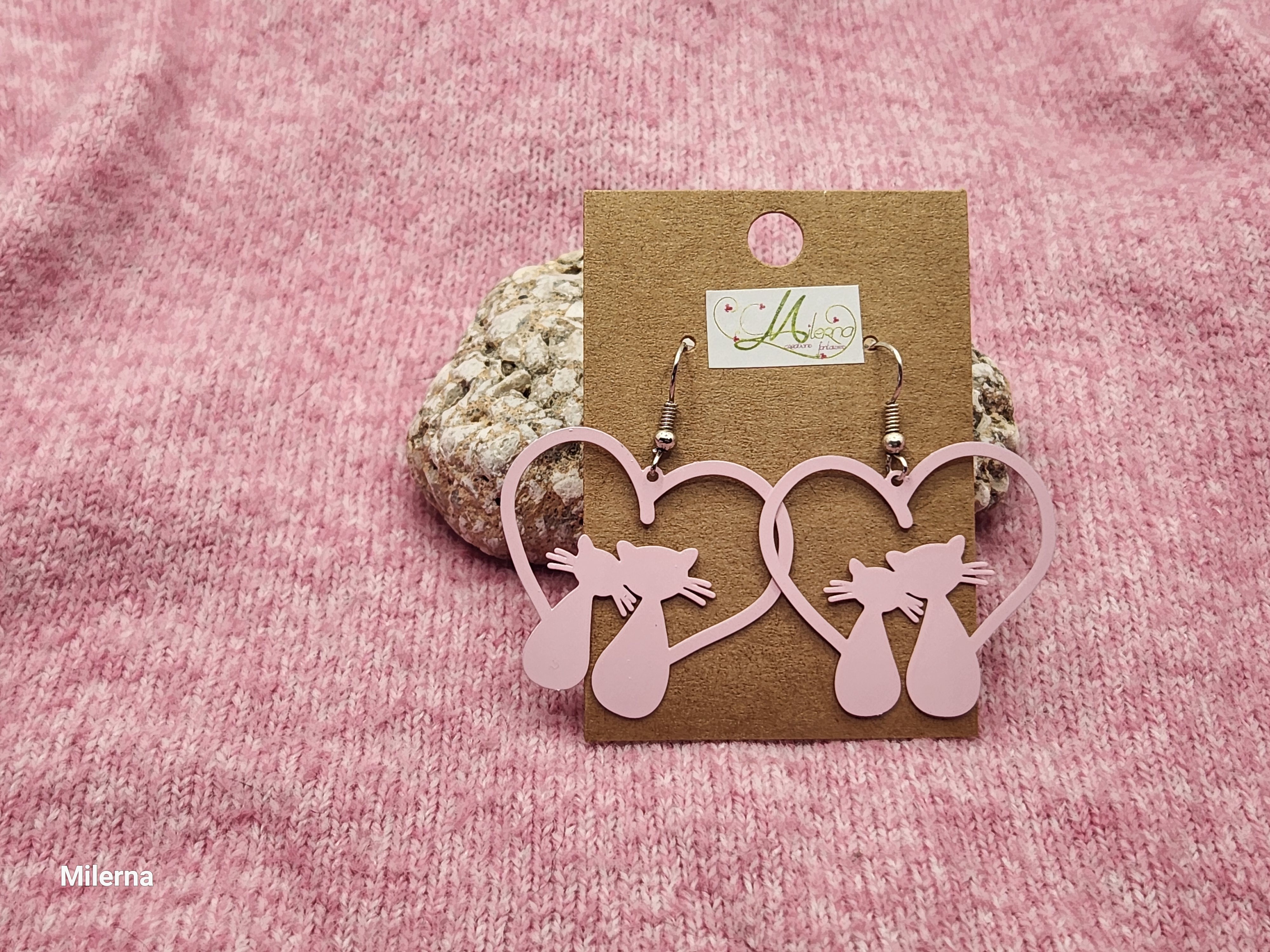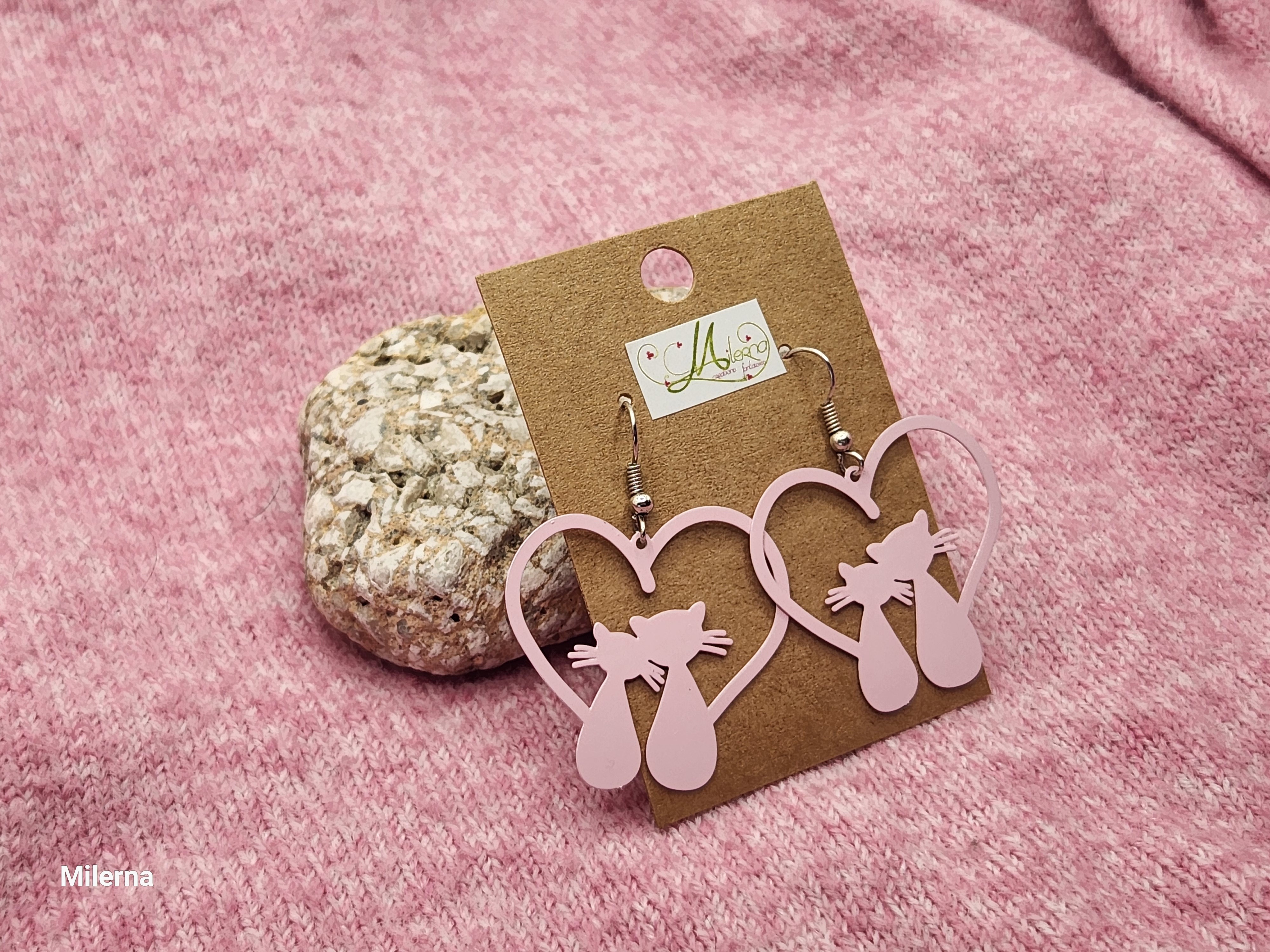 Boucles d'oreilles Estampe coloris rose. "Un amour, deux chats"