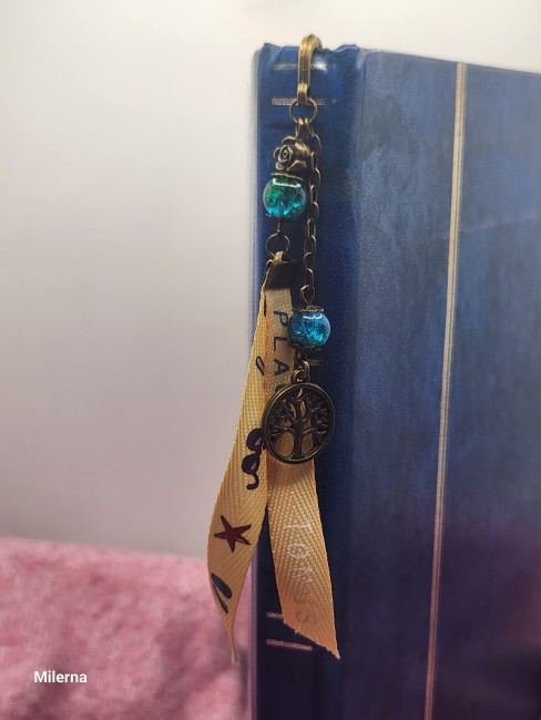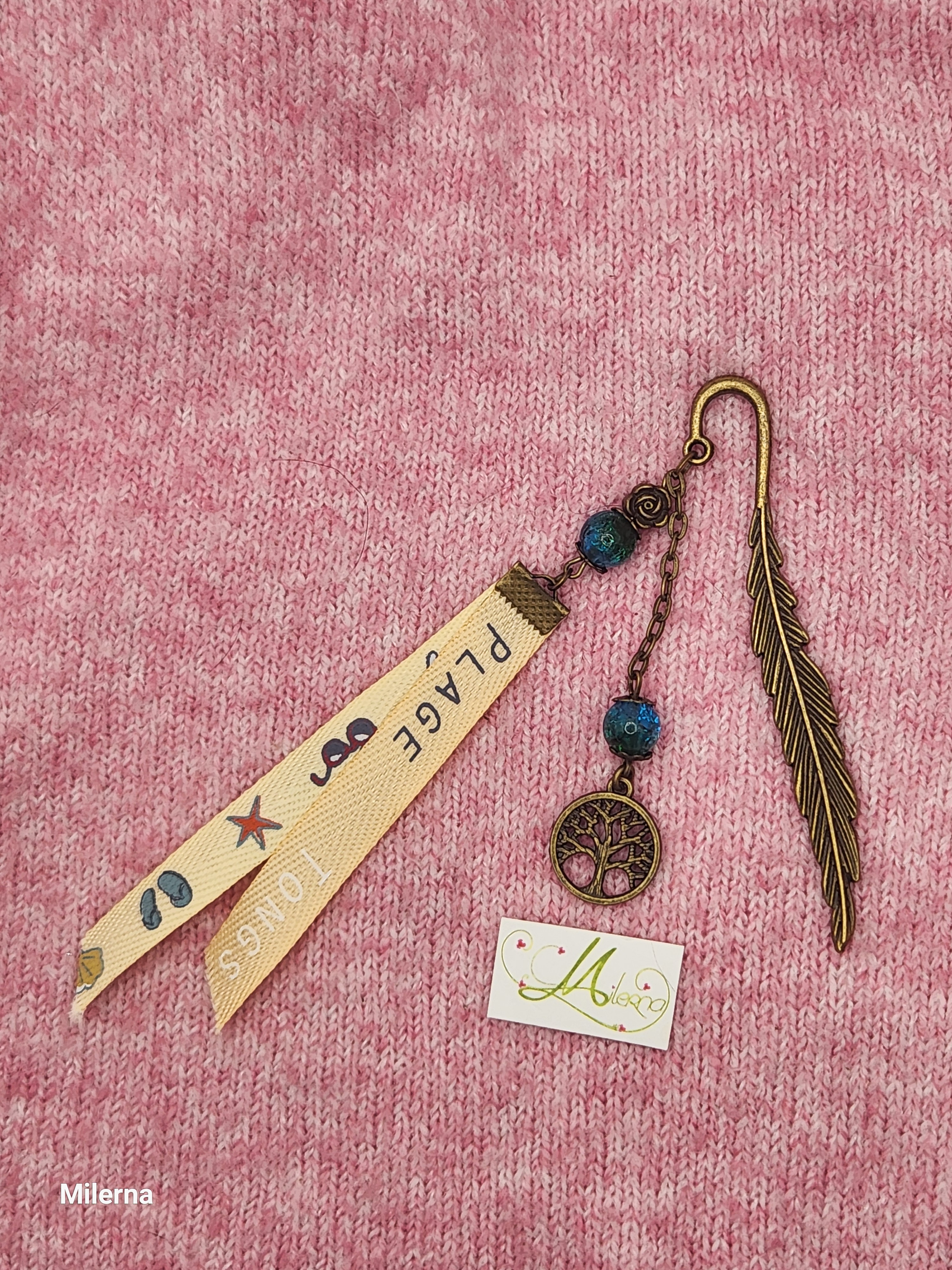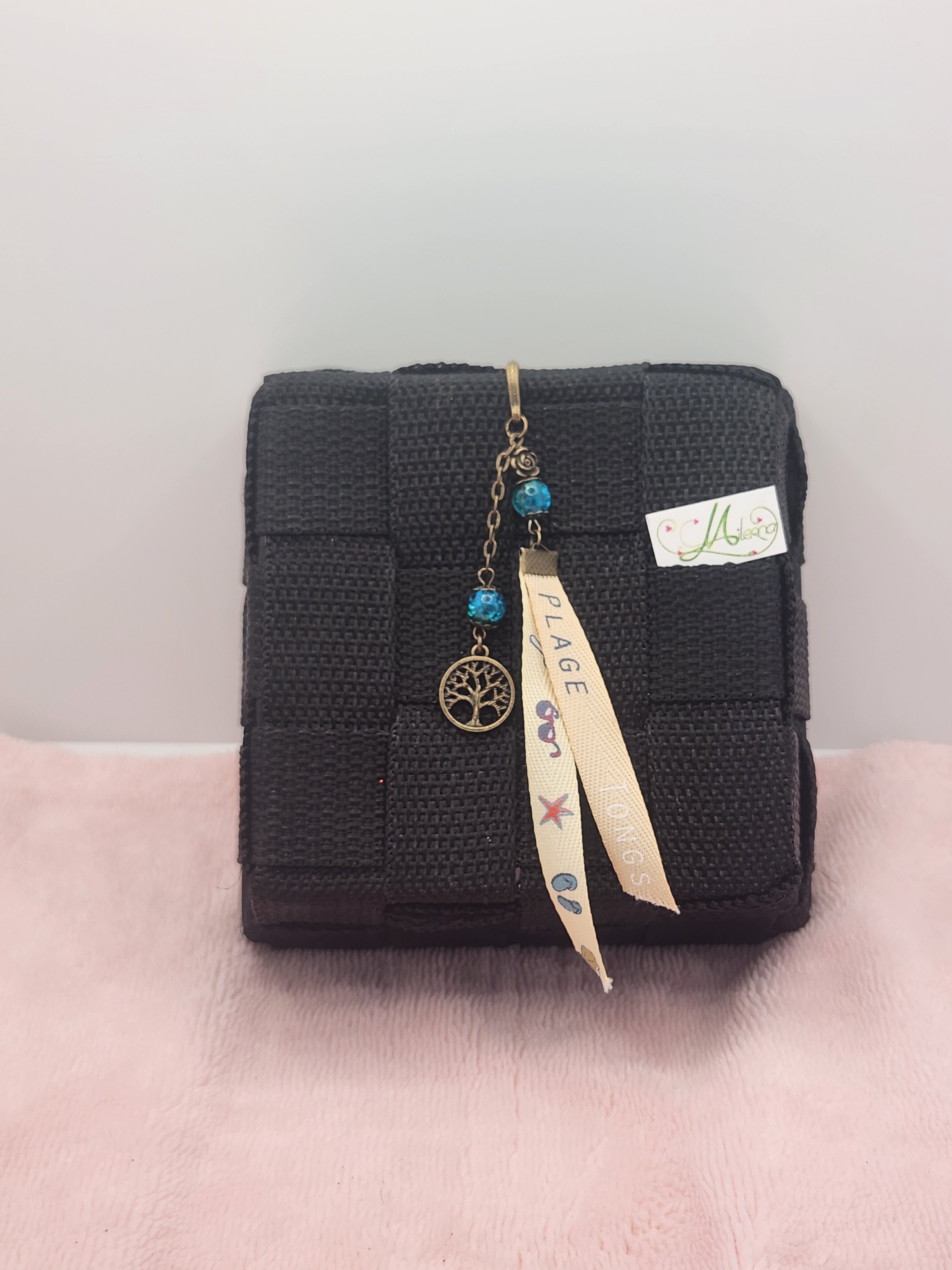 Il est composé de perles bleues et arbre de vie en bronze et rubans "plage/Tongs et motifs".