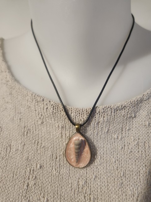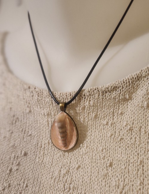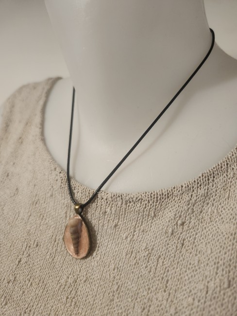 Je vous propose ce cabochon coloris bronze et rose avec en son centre un coquillage.
