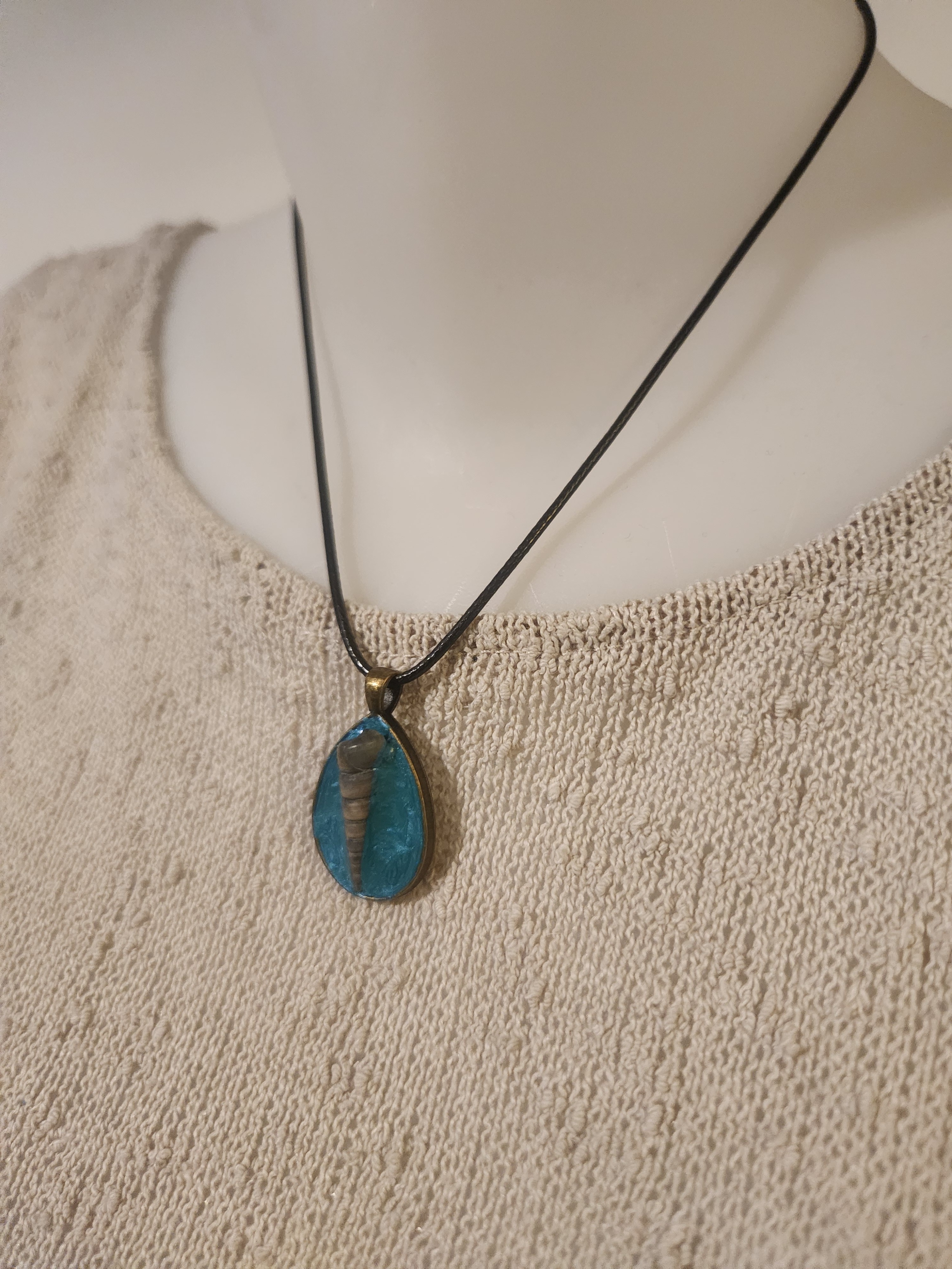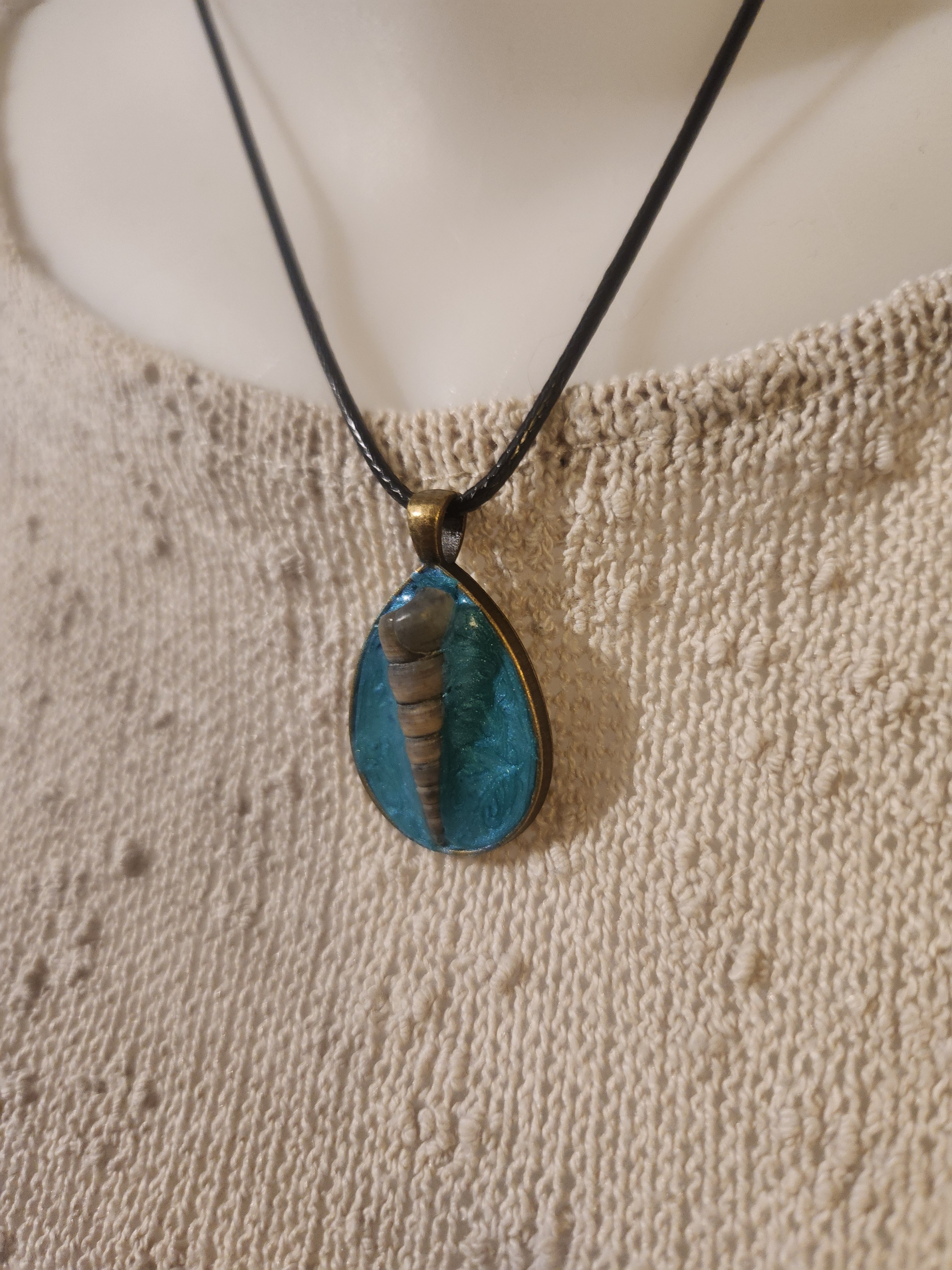 Longueur 24.5cm. il est monté sur un tour de cou en coton ciré noir.