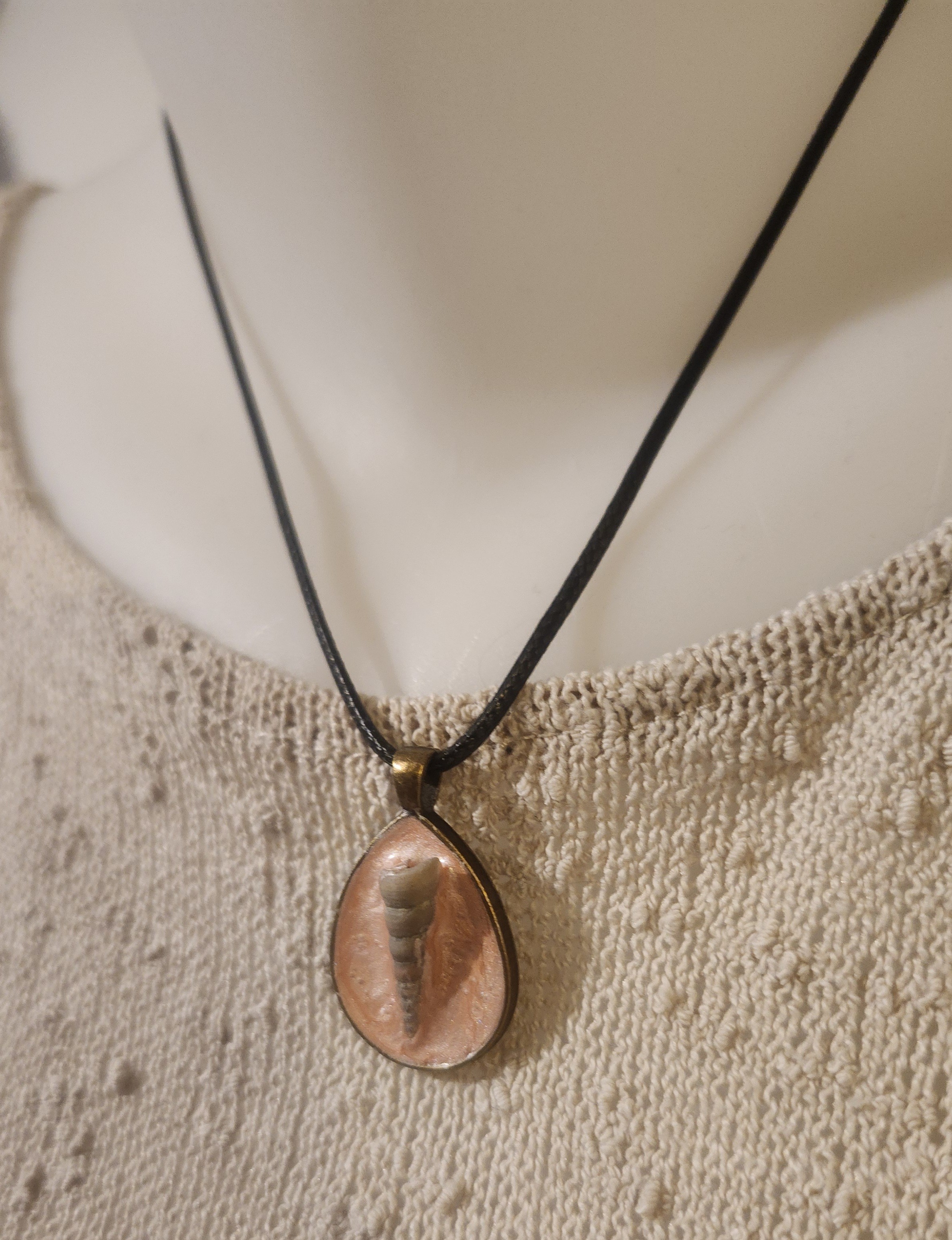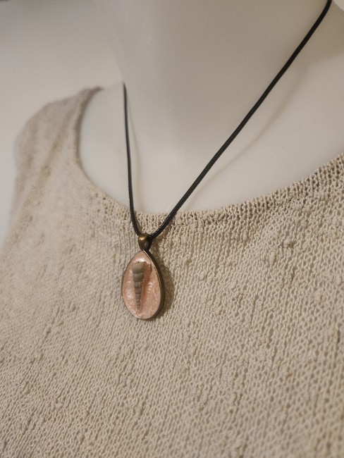 Je vous propose ce cabochon coloris bronze et rose avec en son centre un coquillage.