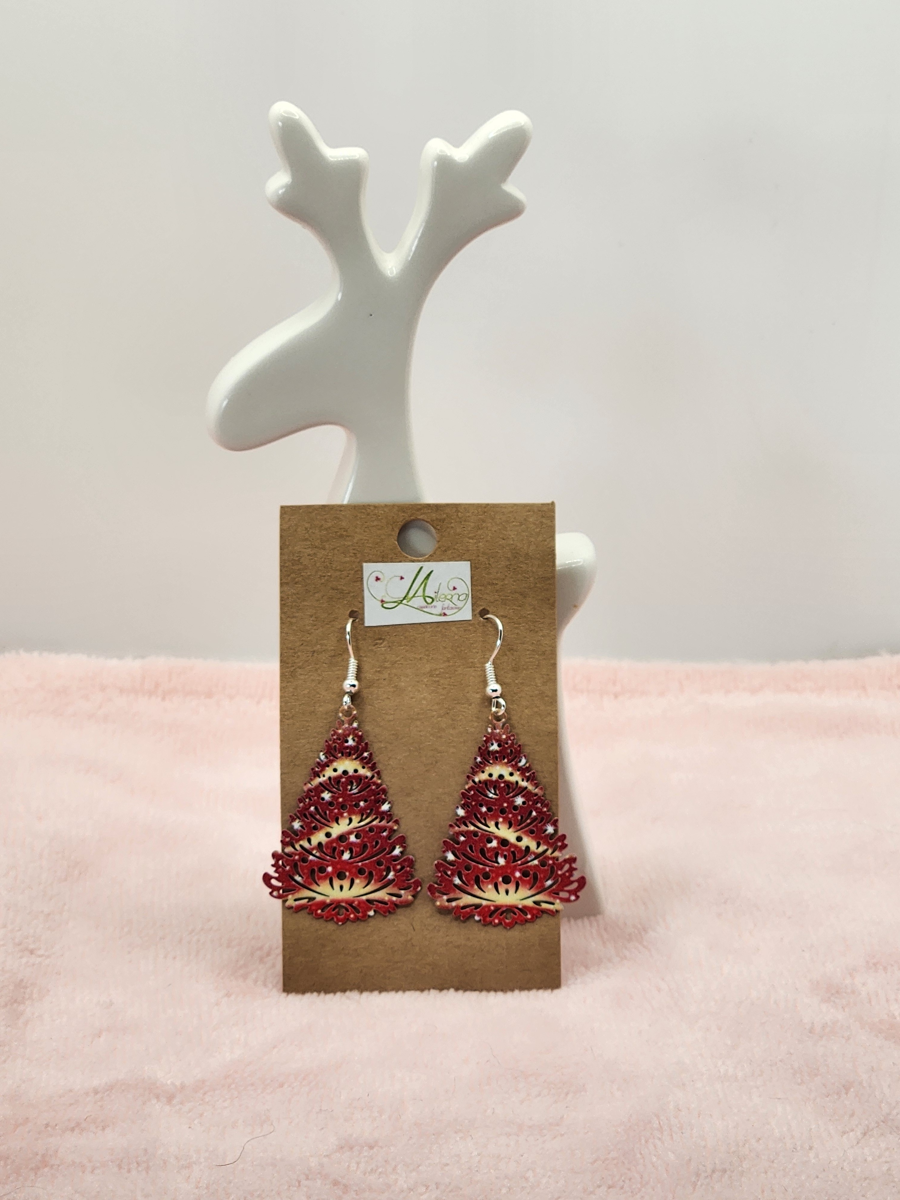 Je vous propose cette paire de boucles d'oreilles estampe sapin de Noël rouge.