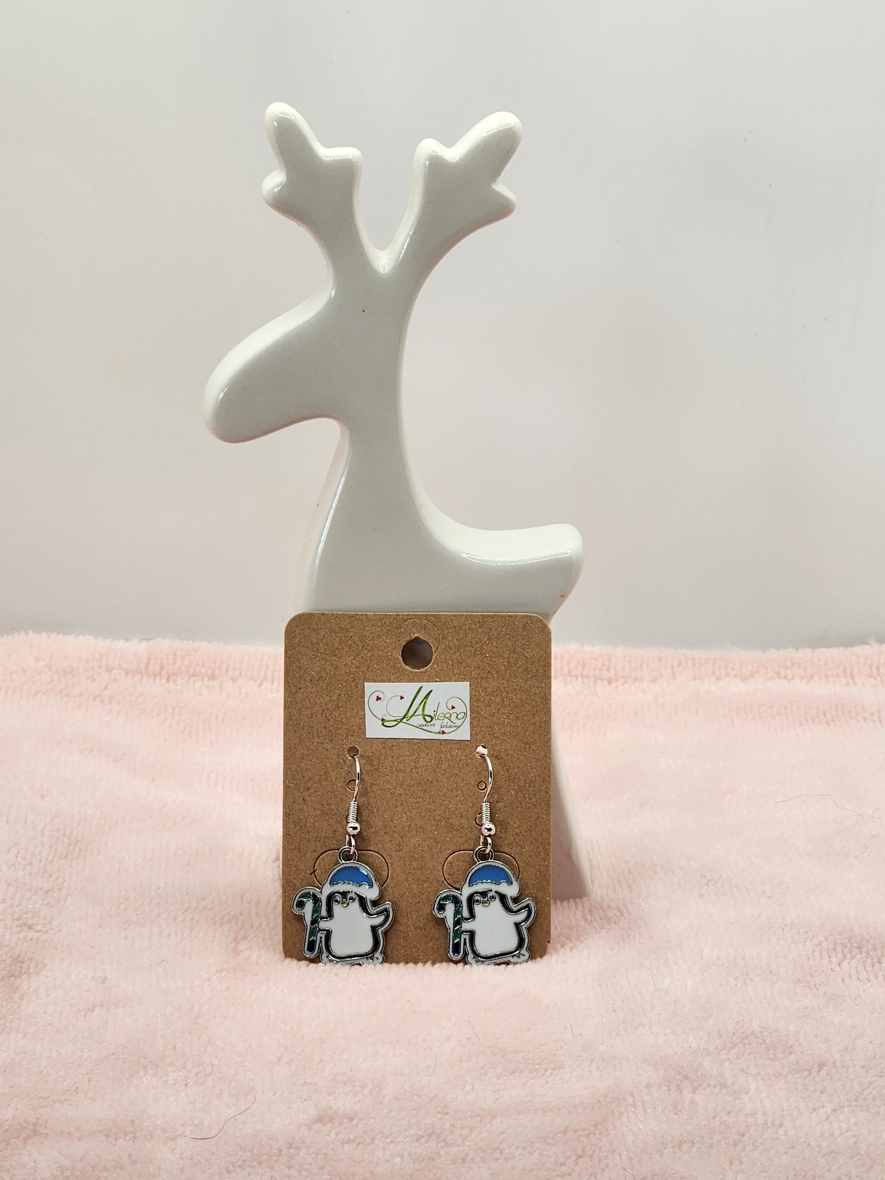 Je vous propose cette paire de boucles d'oreilles breloque de Noël pingouin.