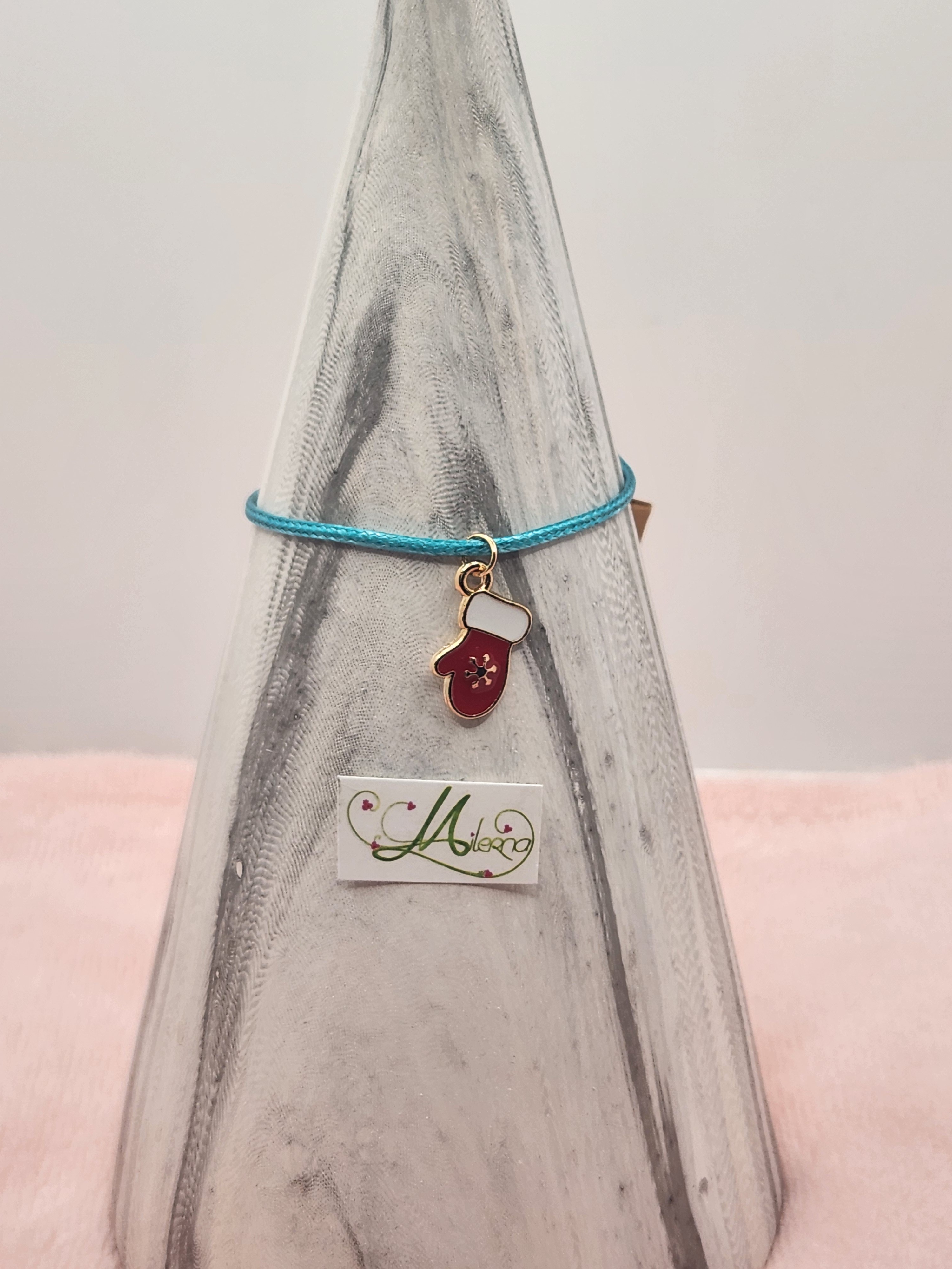 Je vous propose ce bracelet breloque gant de noël en métal argenté coloré.