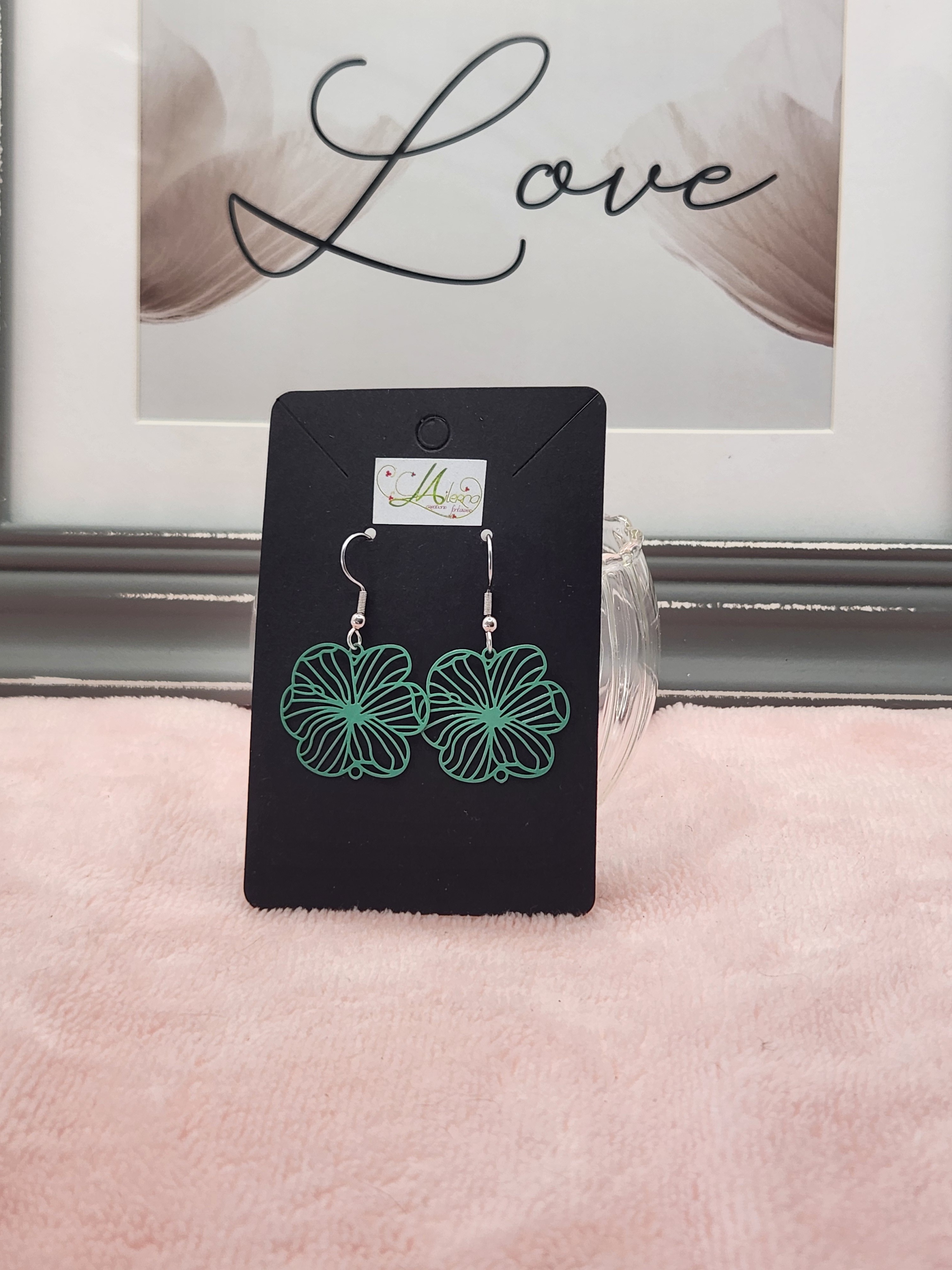 Boucles d'oreilles estampes fleur verte