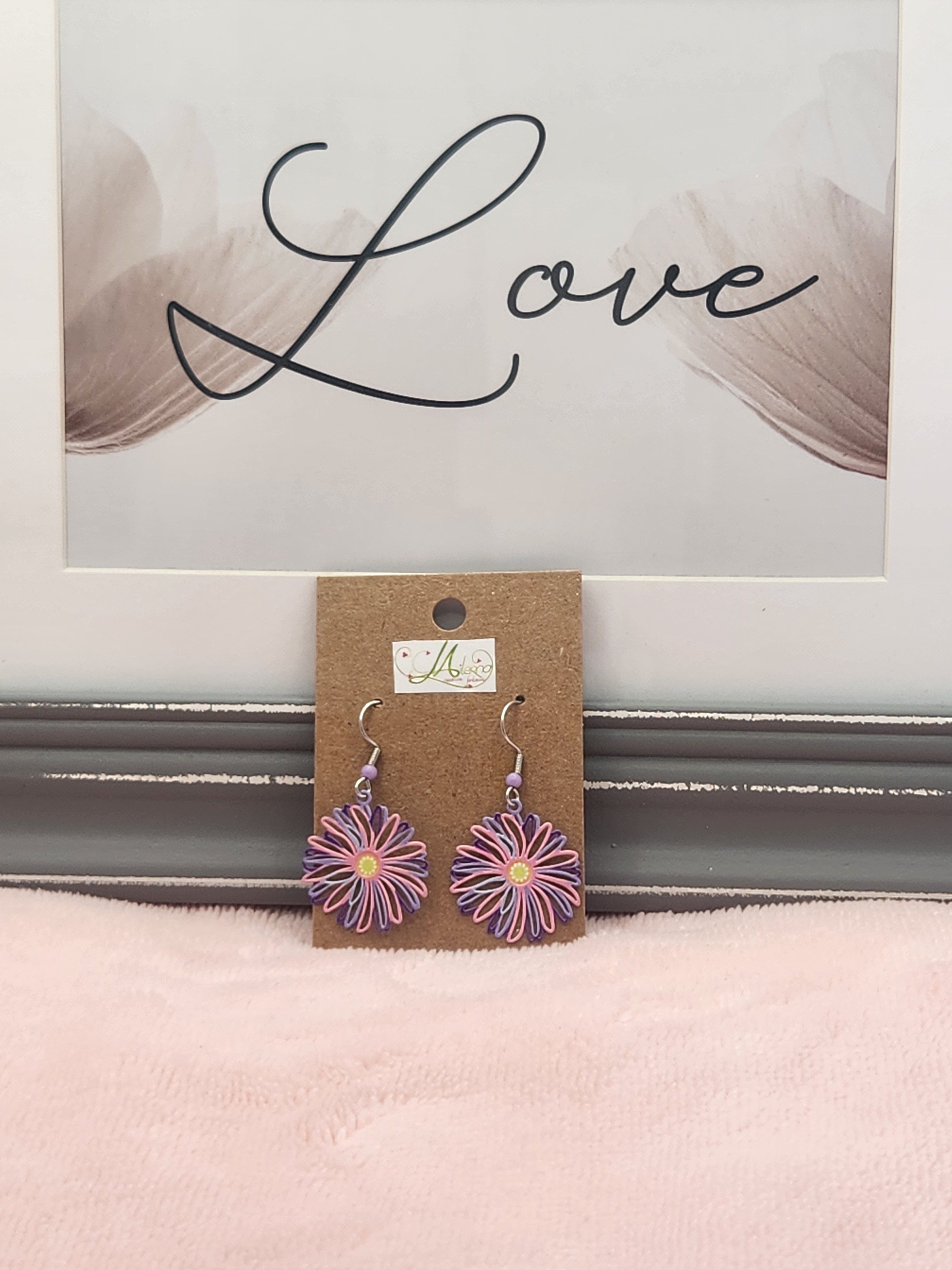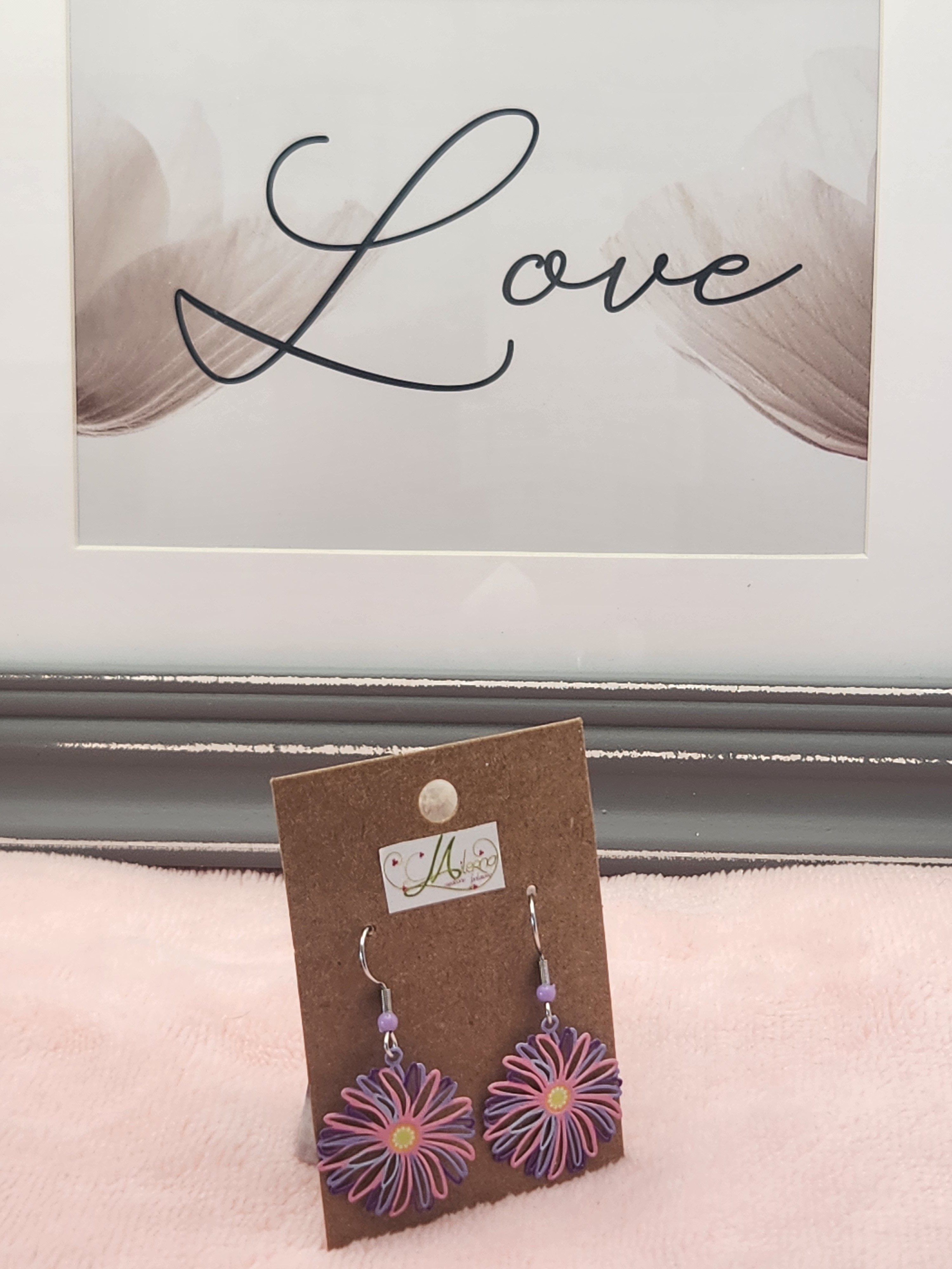 Je vous propose cette paire de boucles d'oreilles estampe fleur rose/violet avec perle violette.