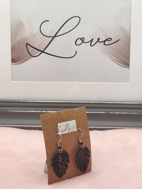 Je vous propose cette paire de boucles d'oreilles estampe feuille noire avec perle noire.