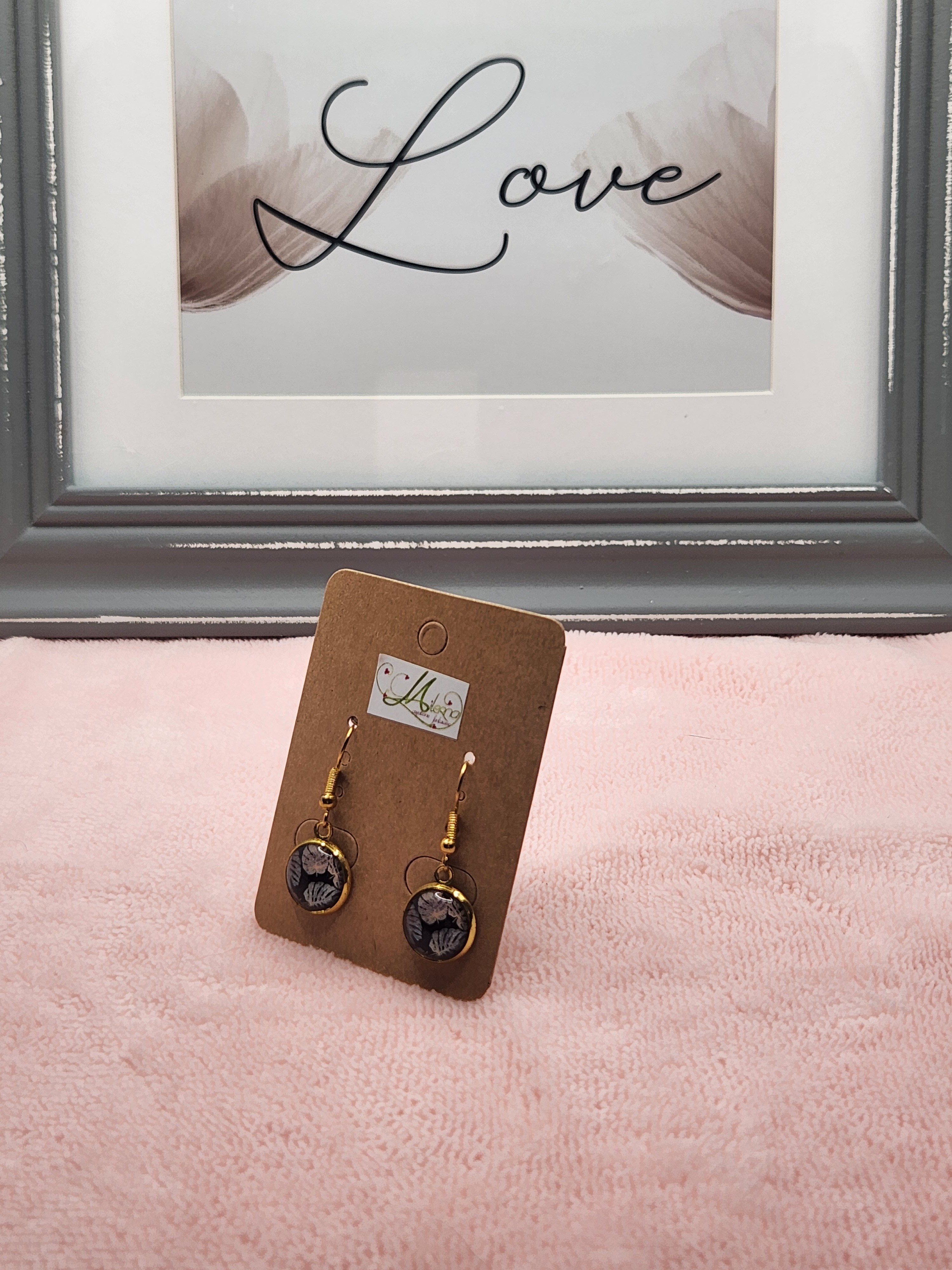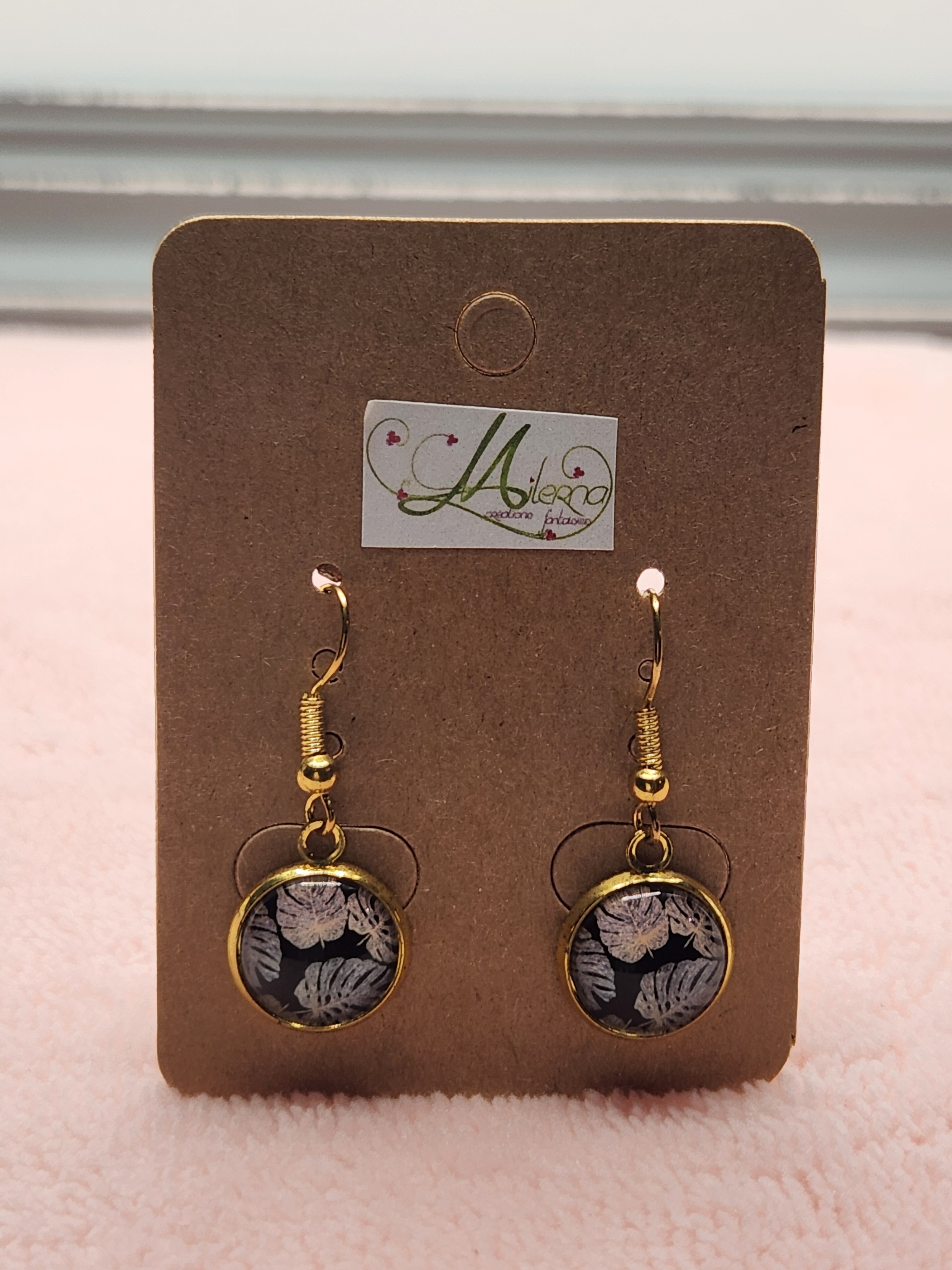 Boucles d'oreilles Cabochon doré feuilles de Monstera