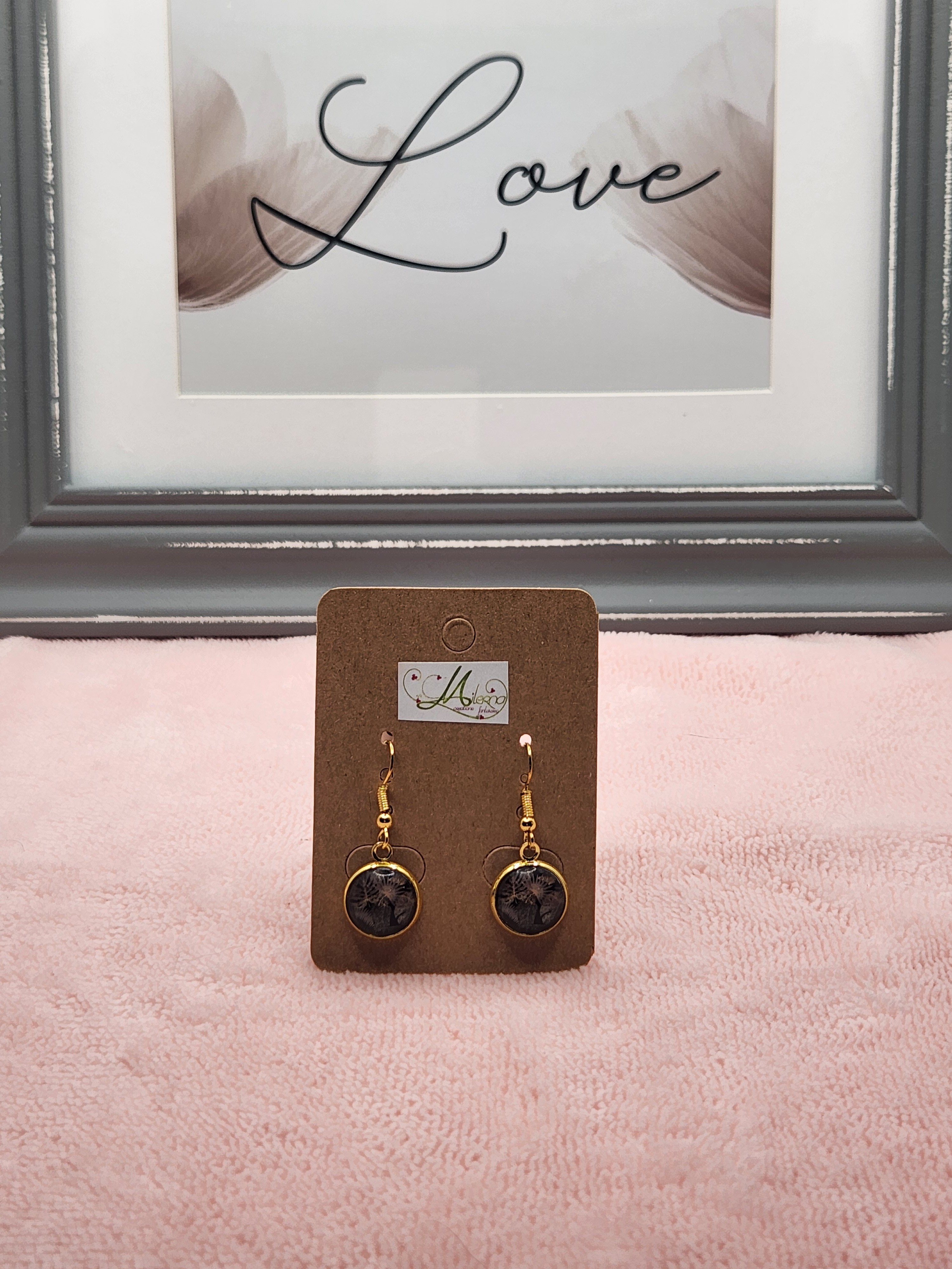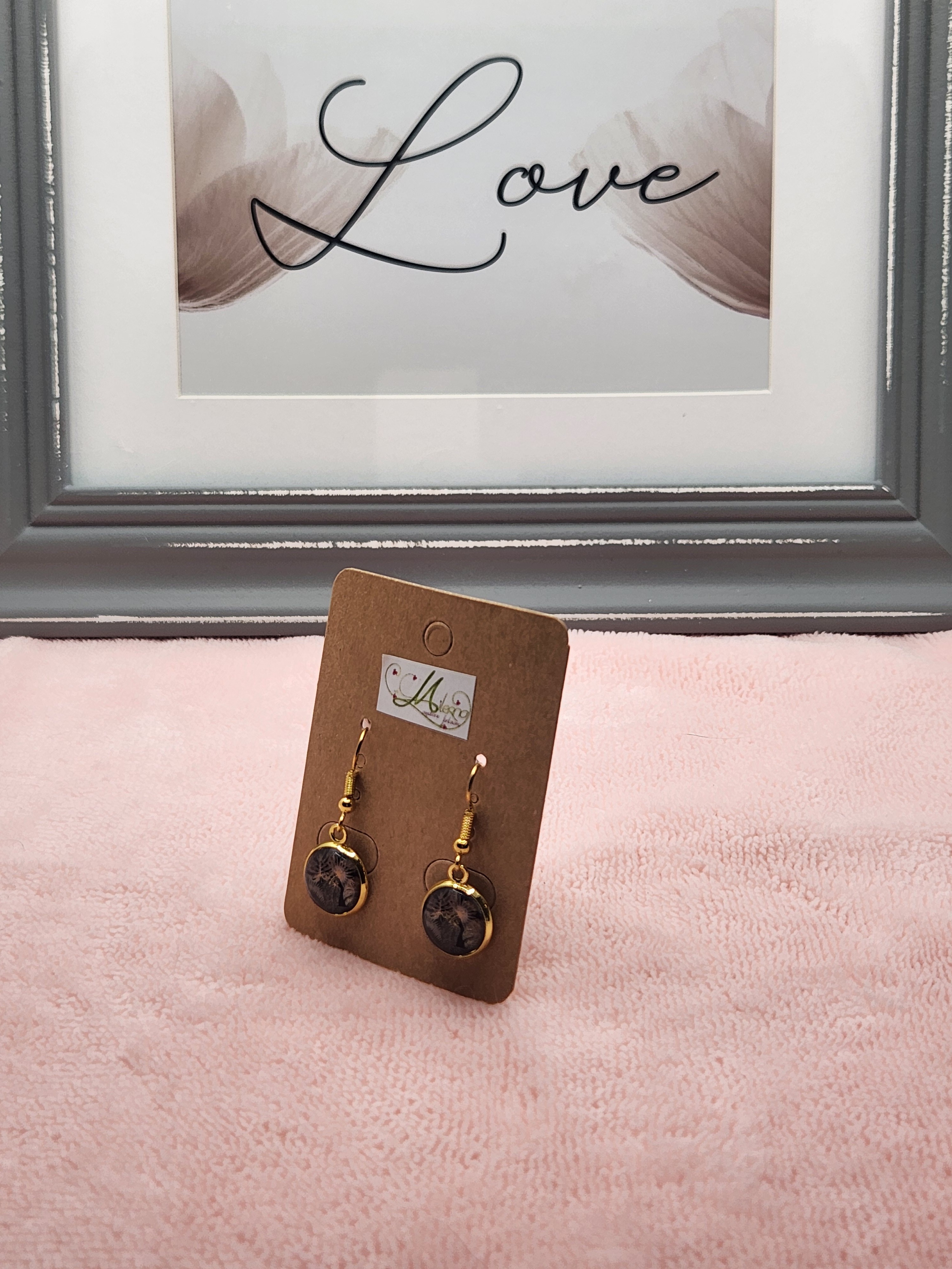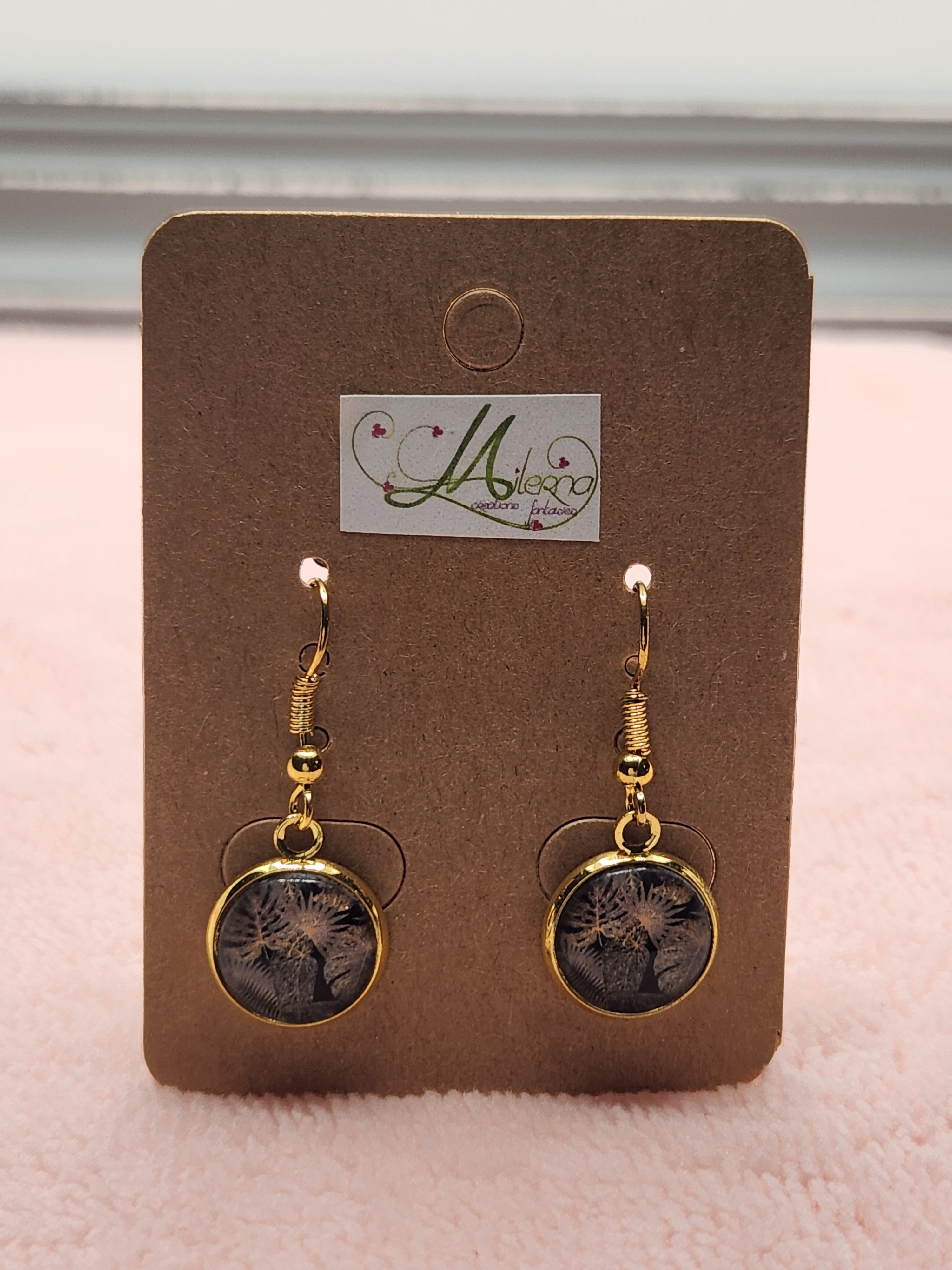 Boucles d'oreilles Cabochon doré et feuilles de palmier