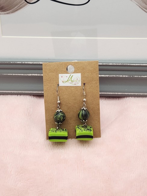 Je vous propose cette paire de boucle d'oreille gourmande, réglisse verte et noire en polymère.