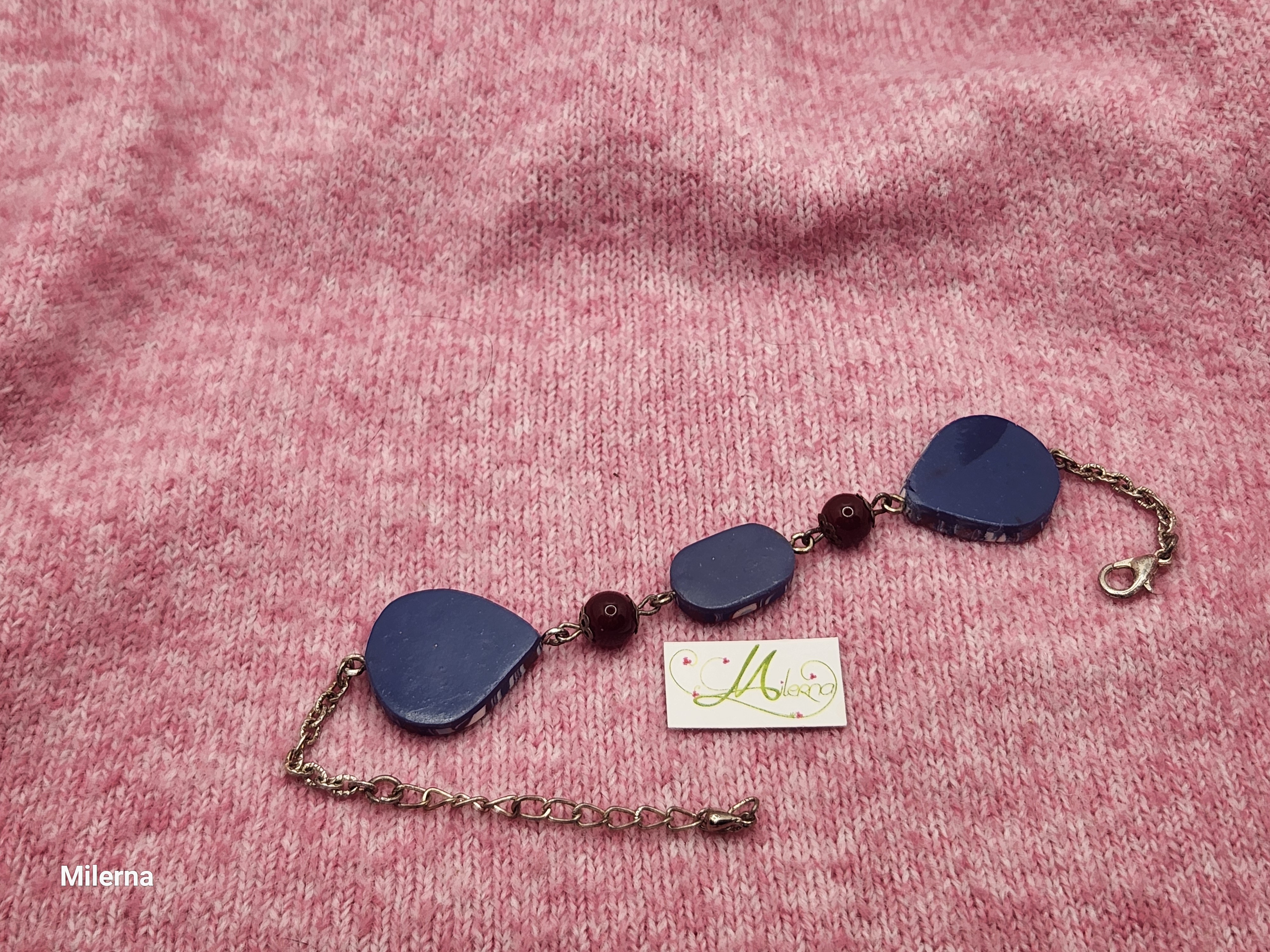 Je vous propose ce bracelet composé de 3 perles en polymère réhaussé de deux perles en bois.