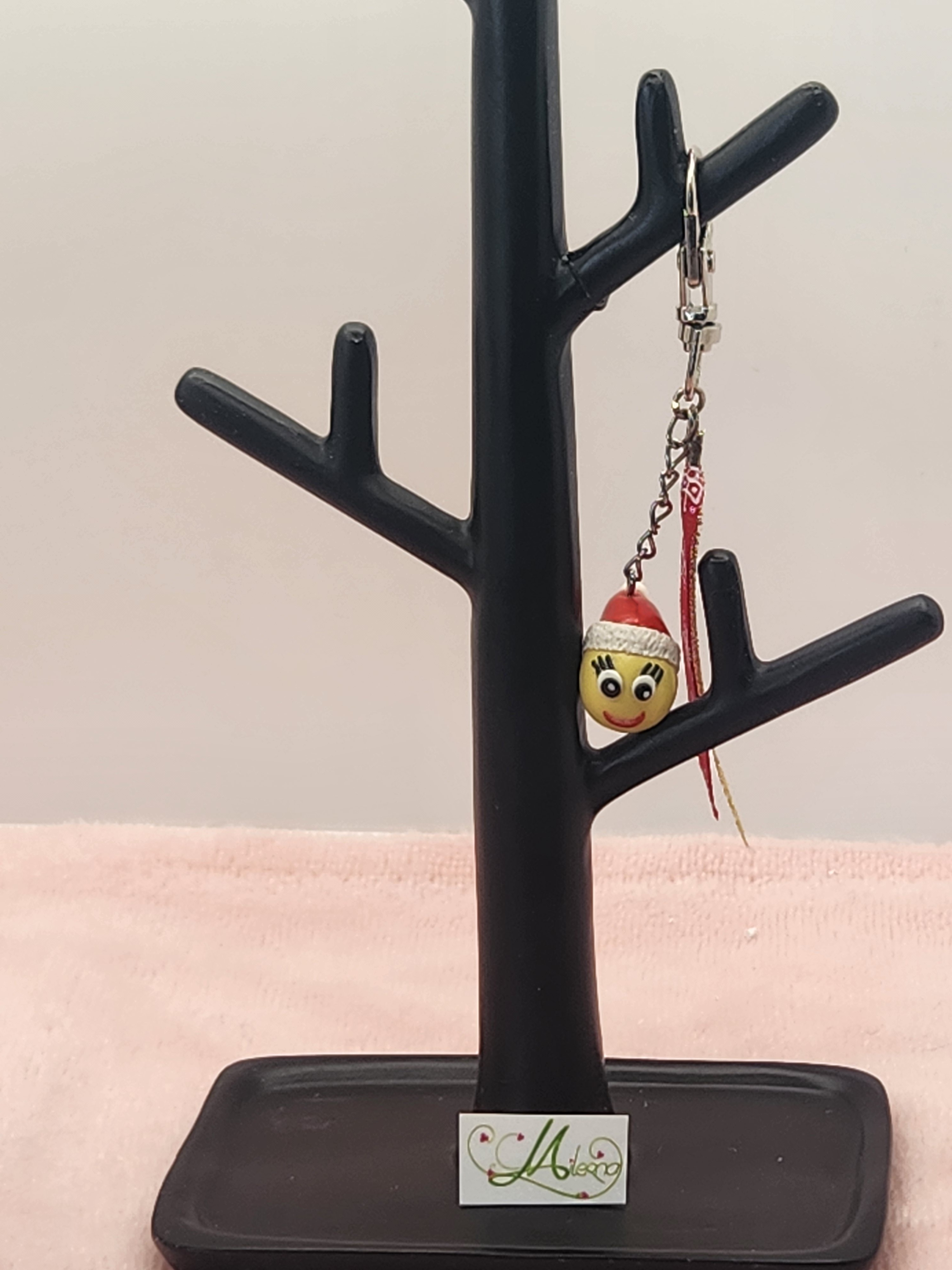 Je vous propose ce porte clefs smiley émoticone avec son bonnet de Noël en polymère,