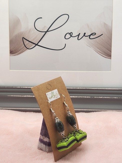 Je vous propose cette paire de boucle d'oreille gourmande, réglisse verte et noire en polymère.