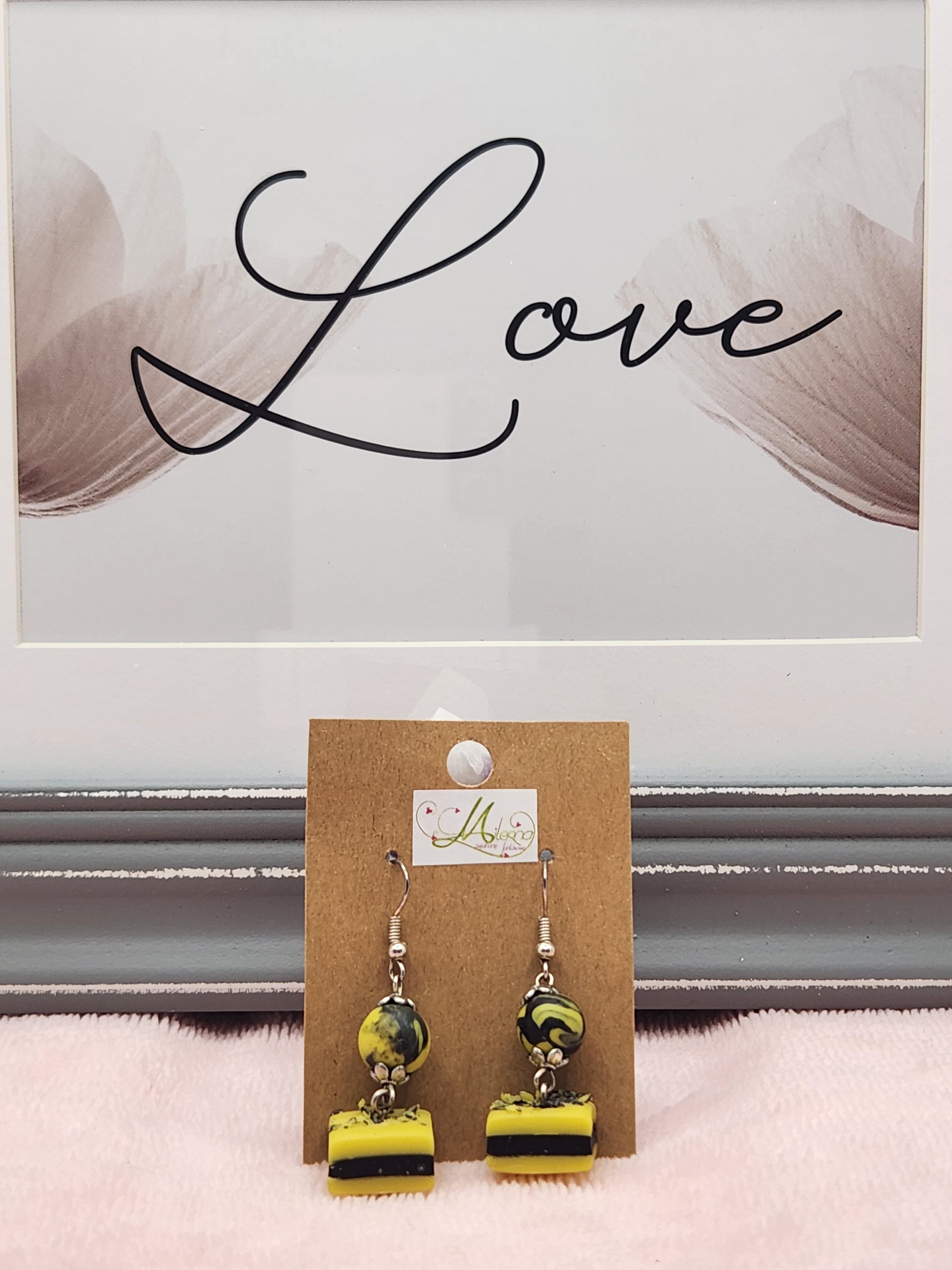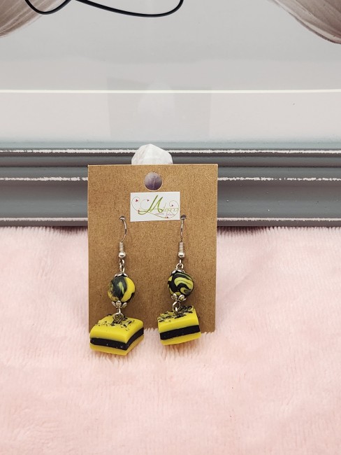 Je vous propose cette paire de boucles d'oreilles gourmande, réglisse jaune et noire en polymère.