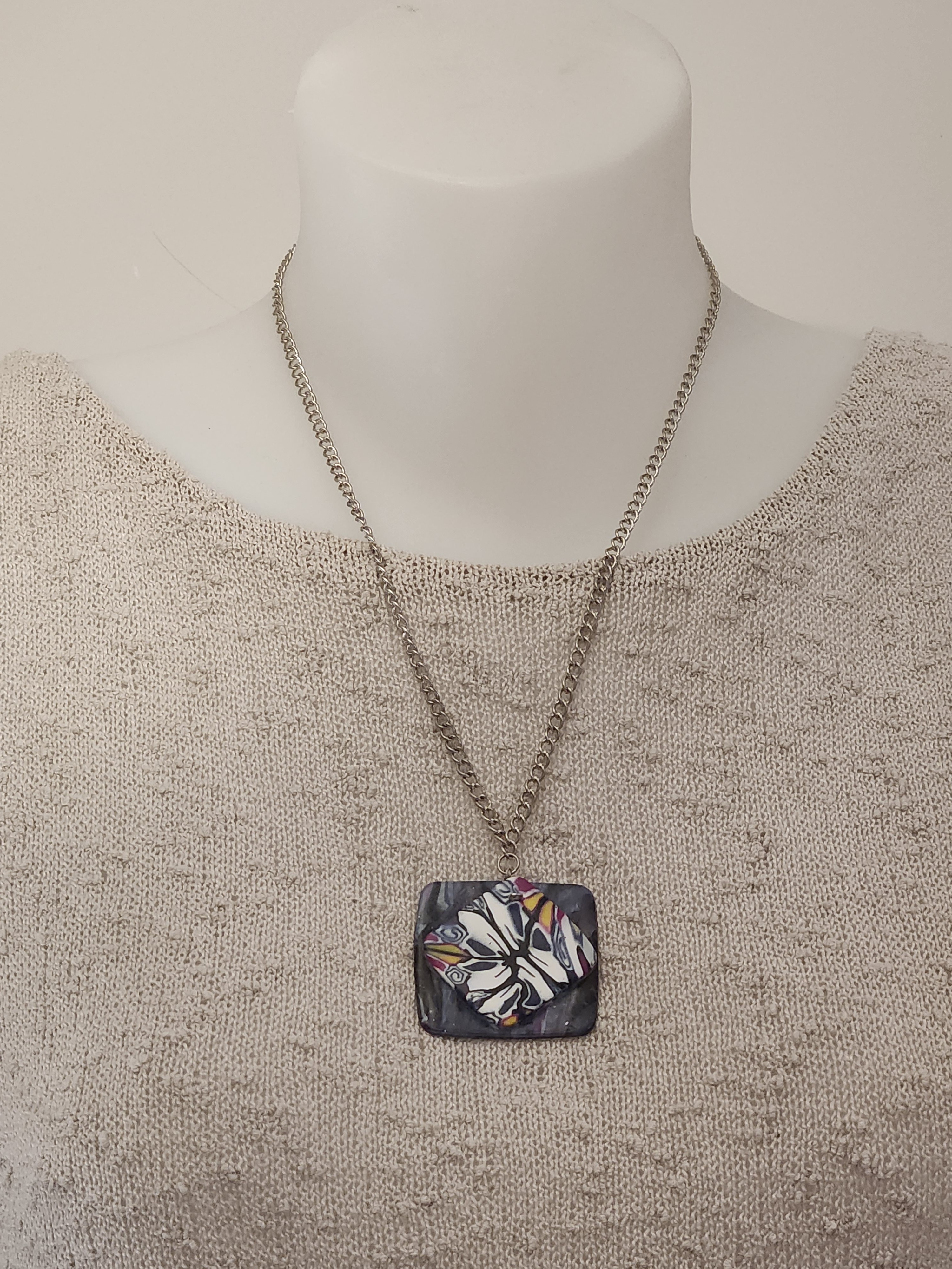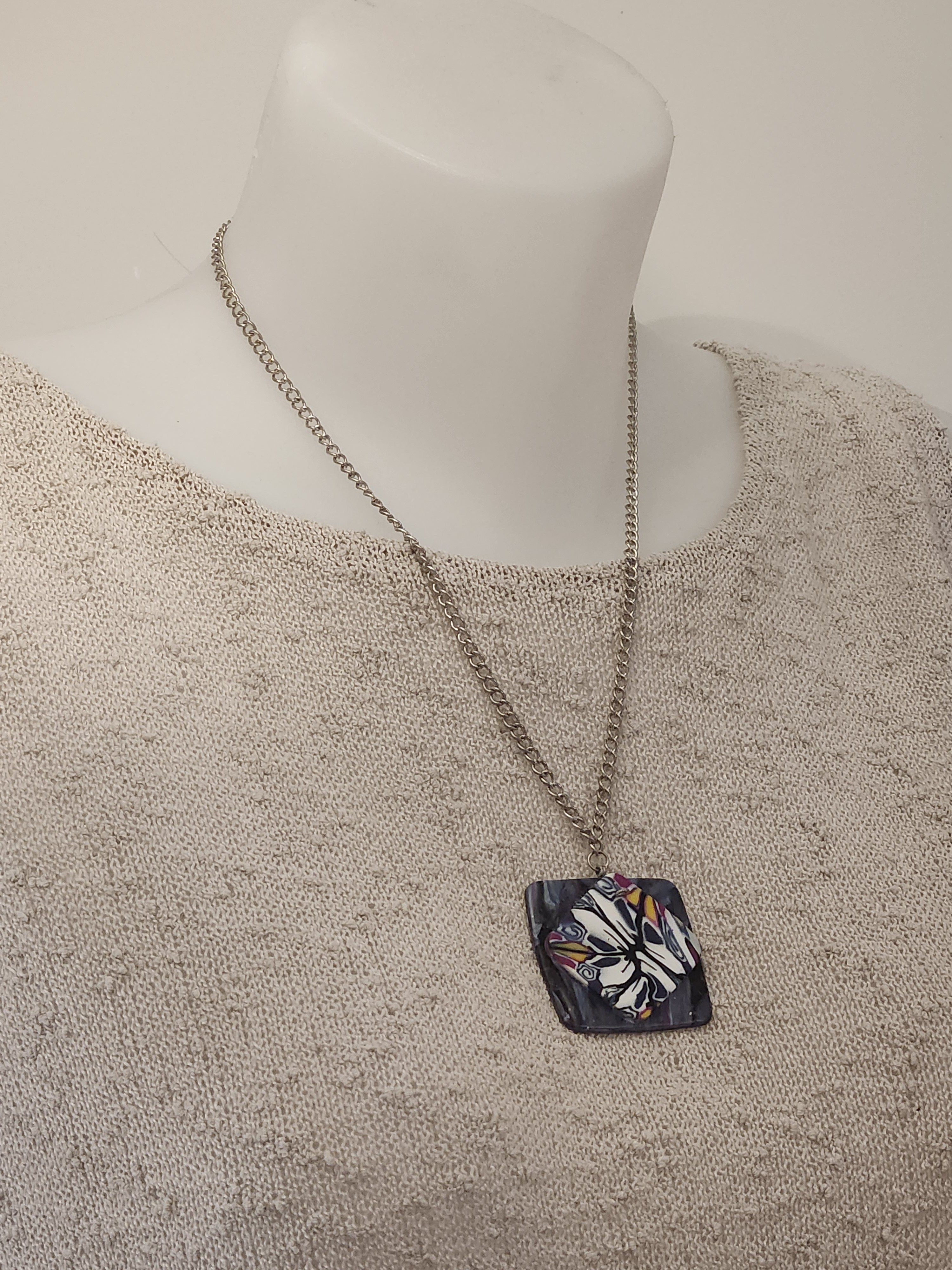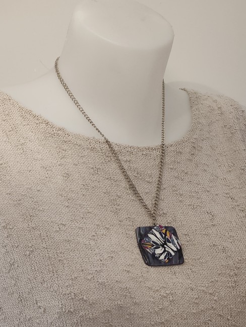 Je vous propose ce collier avec un pendentif multicolore en polymère.