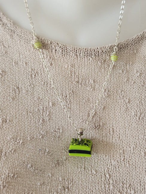 Je vous propose ce pendentif gourmand, réglisse verte et noire en polymère.