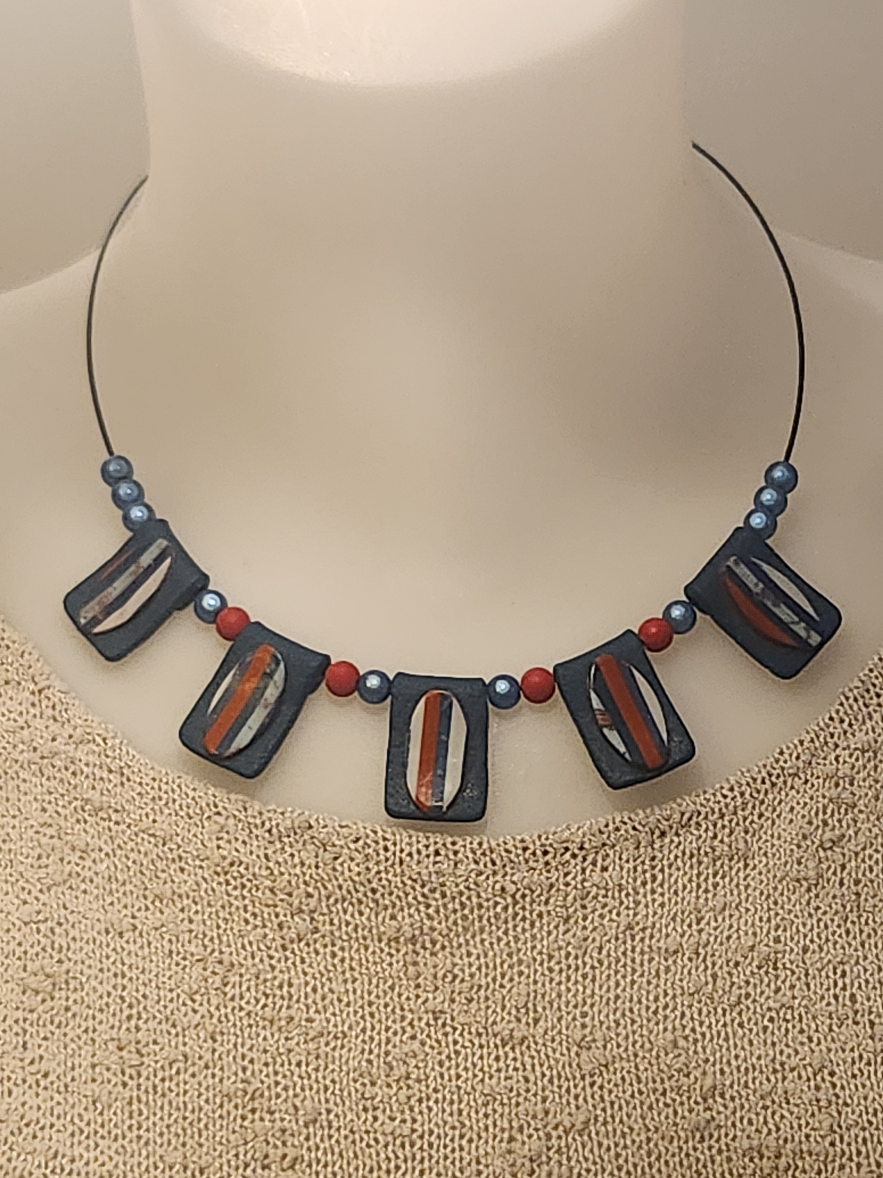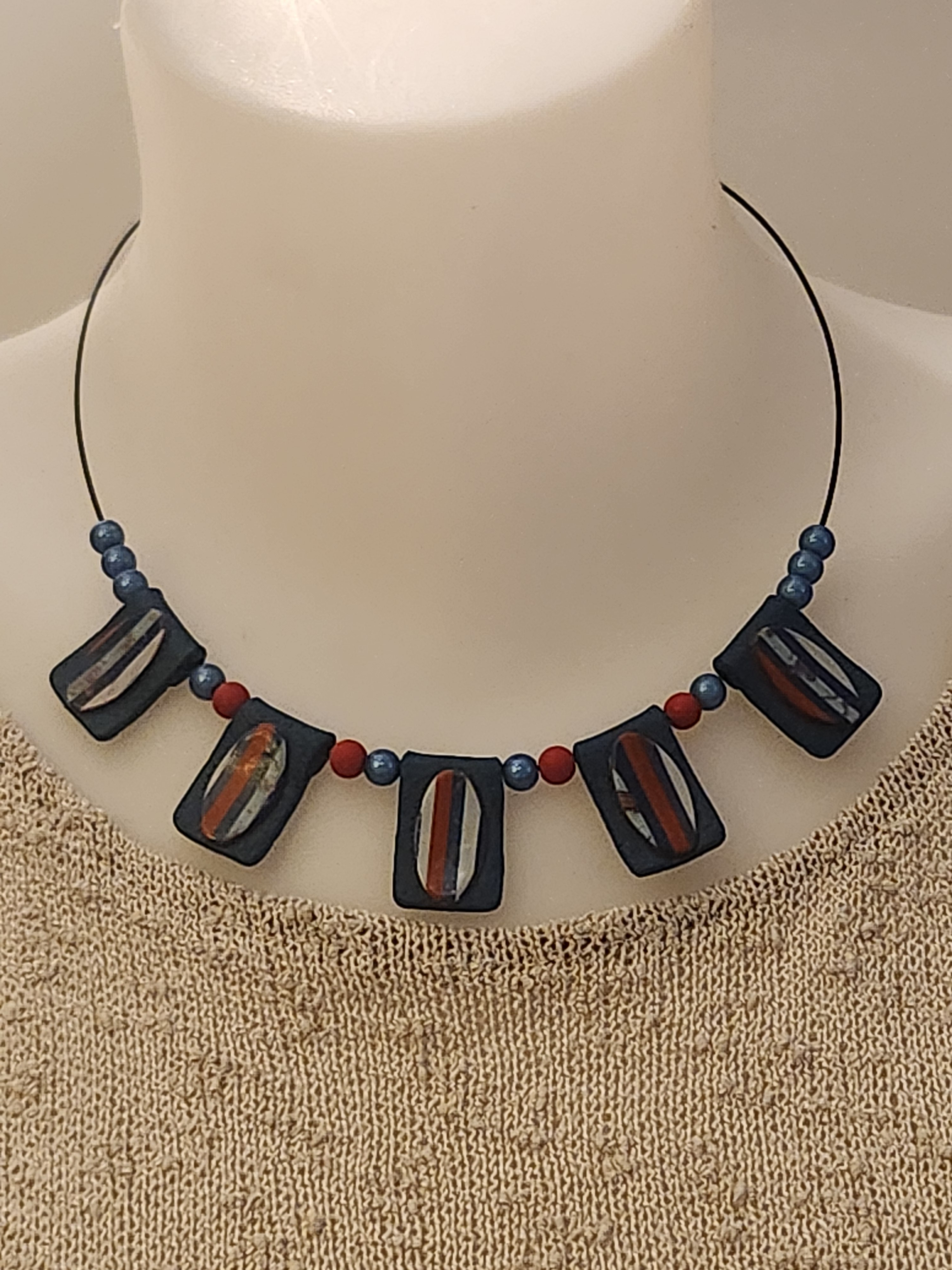 Le tour de cou est noir. je propose également en boutique, un bracelet assorti au collier...