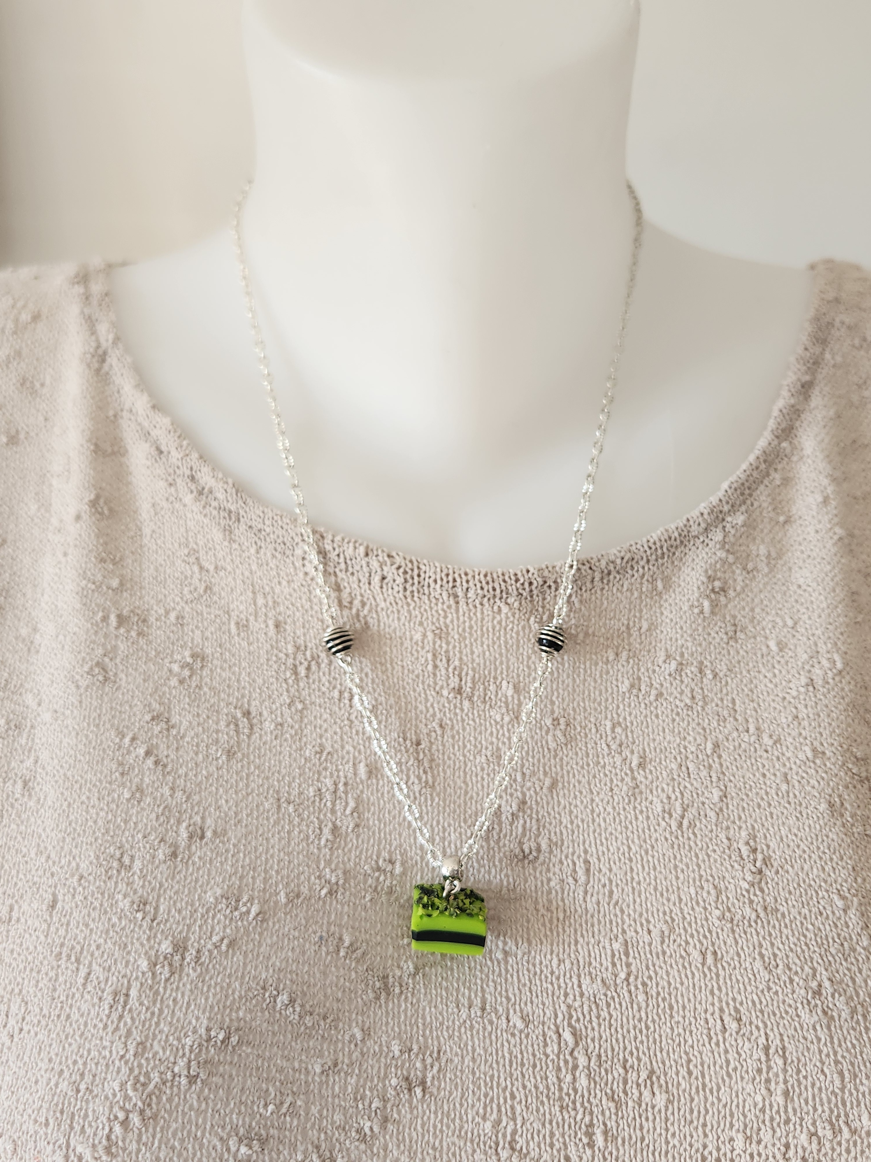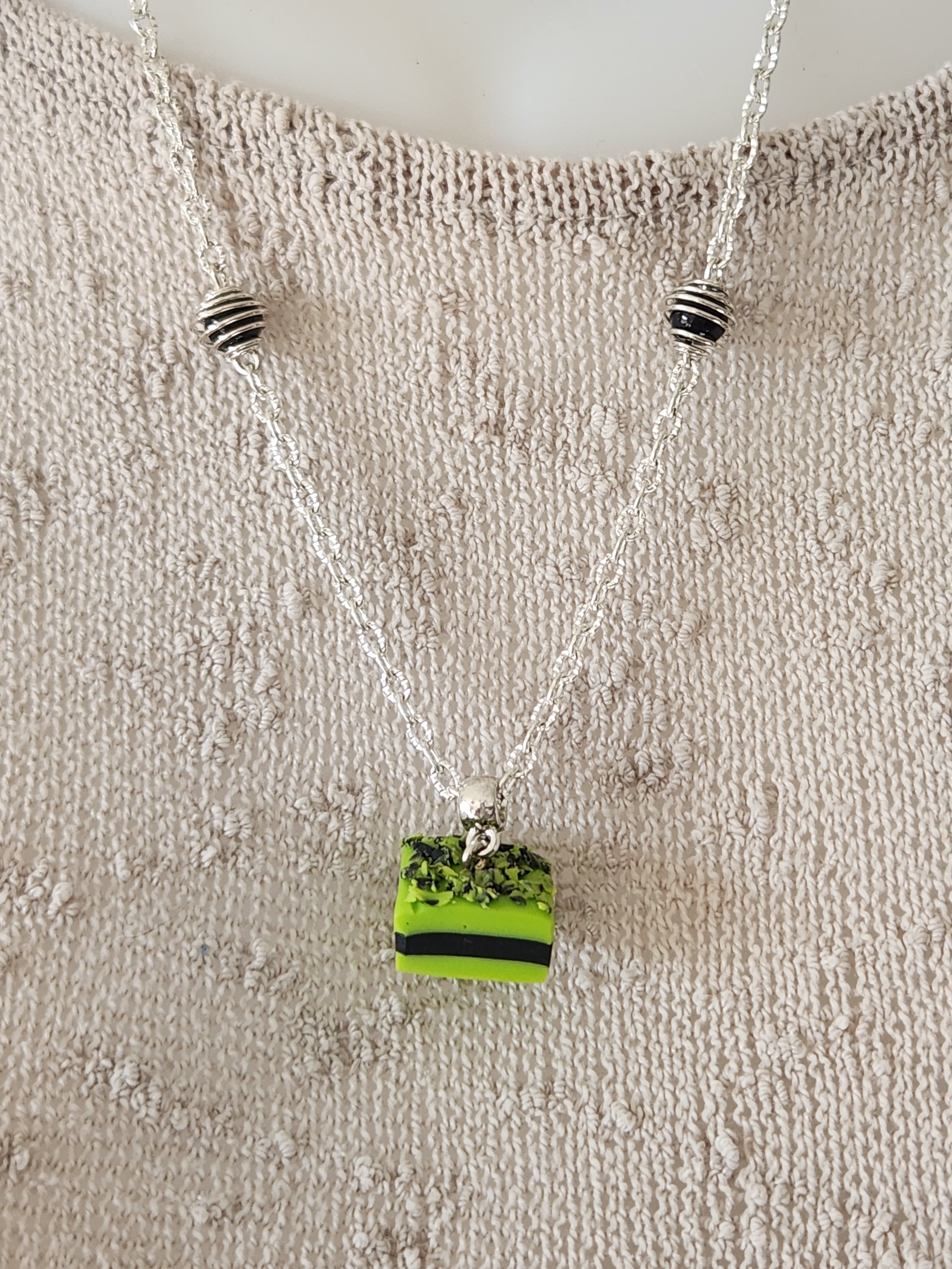 Je vous propose ce pendentif gourmand, réglisse verte et noire en polymère.