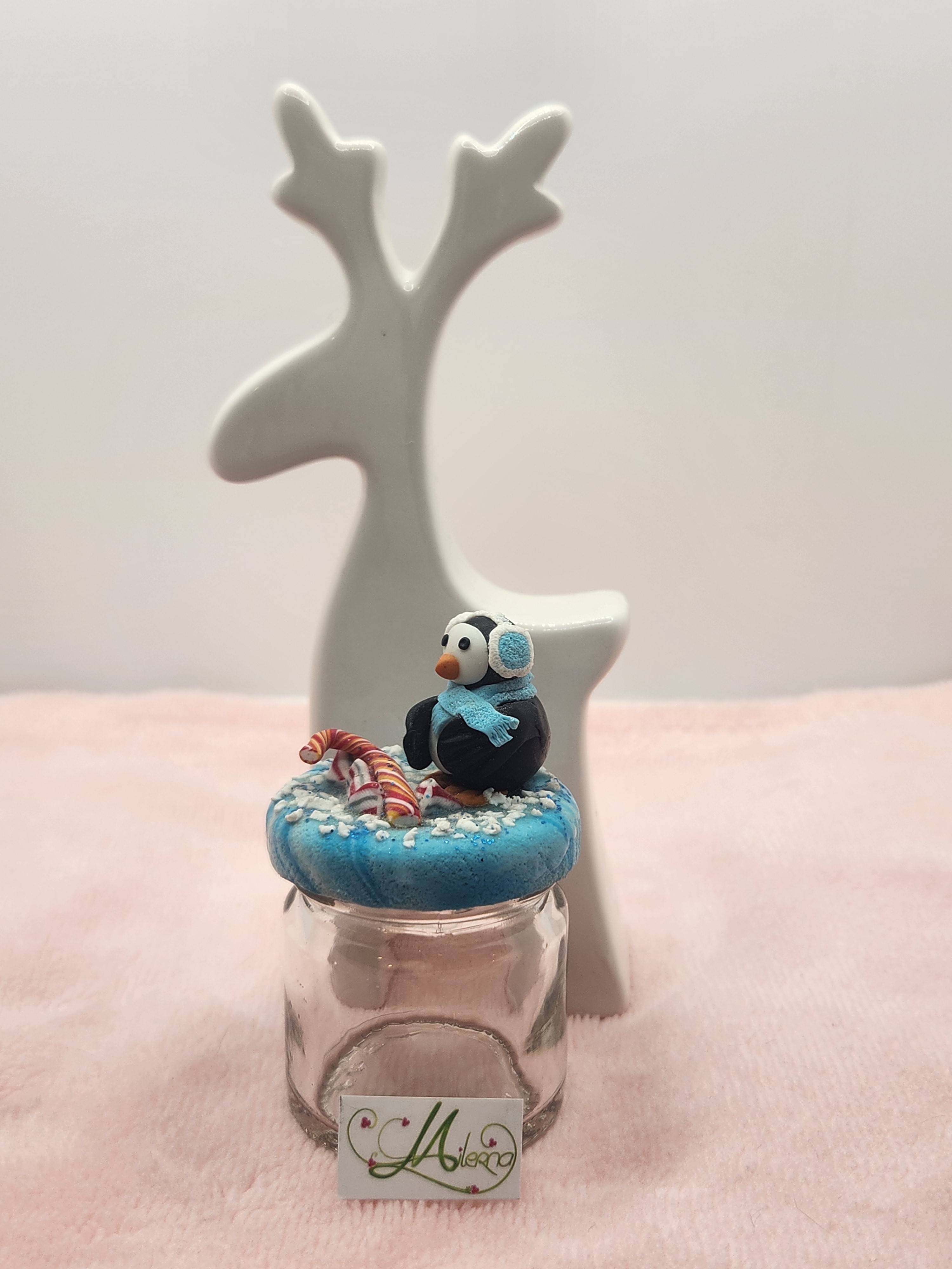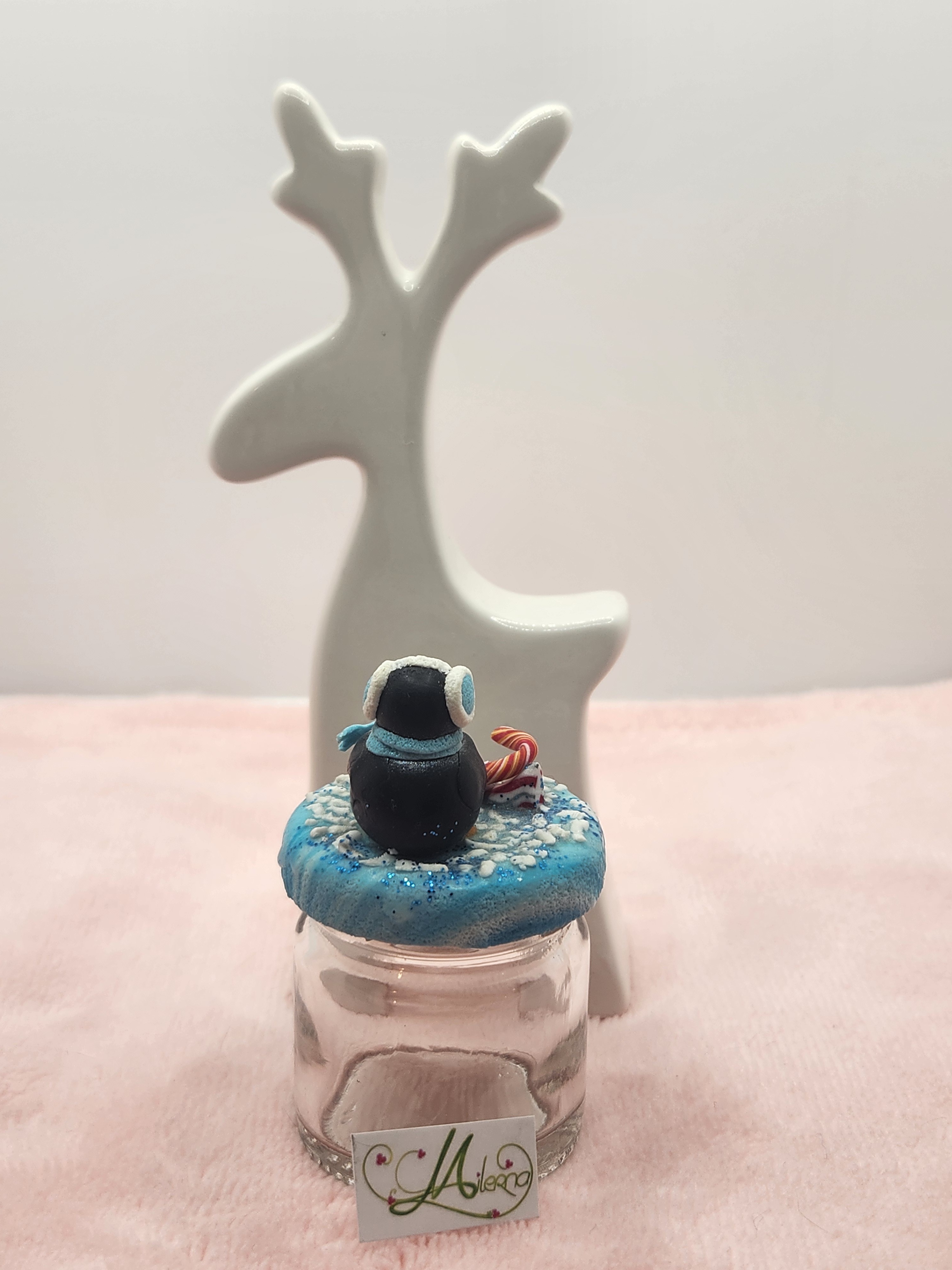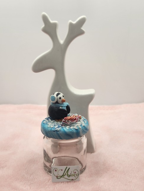 Je vous propose ce pot pingouin avec un sucre d'orge et des berlingots.