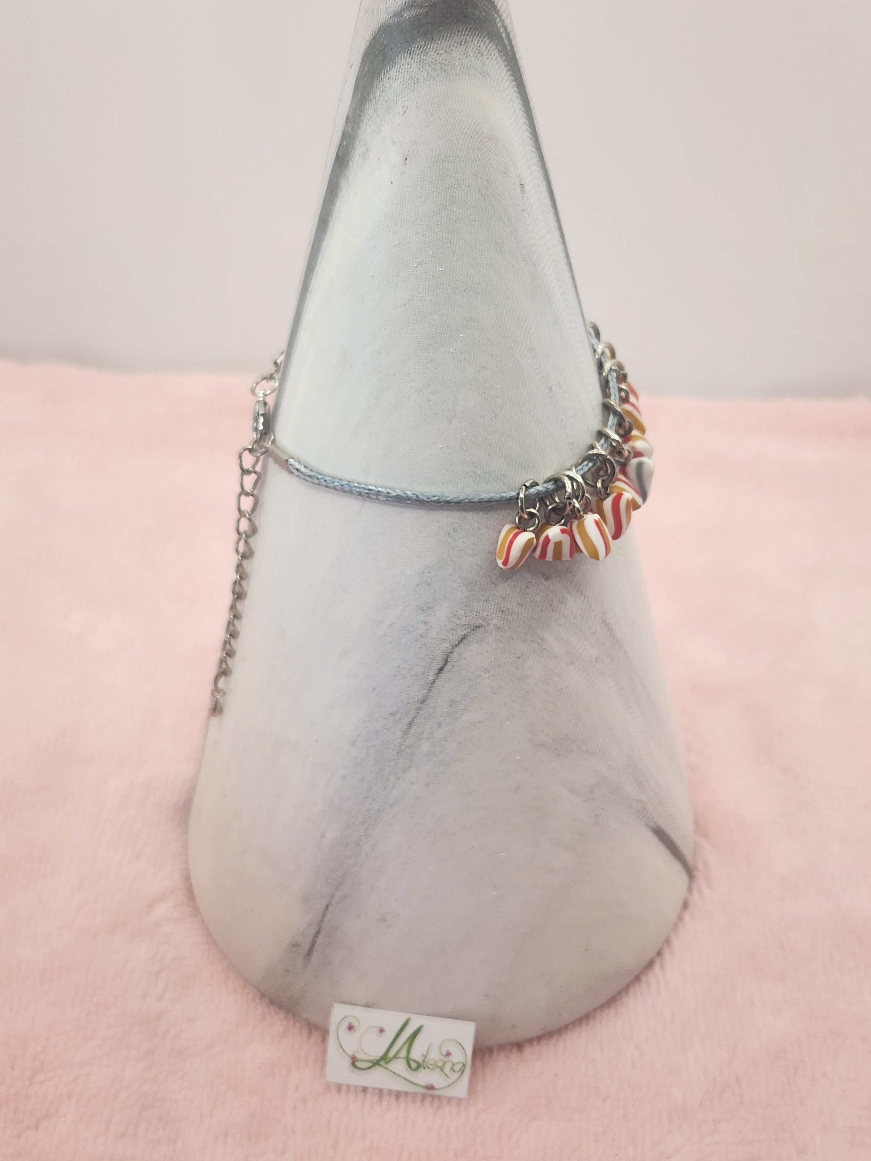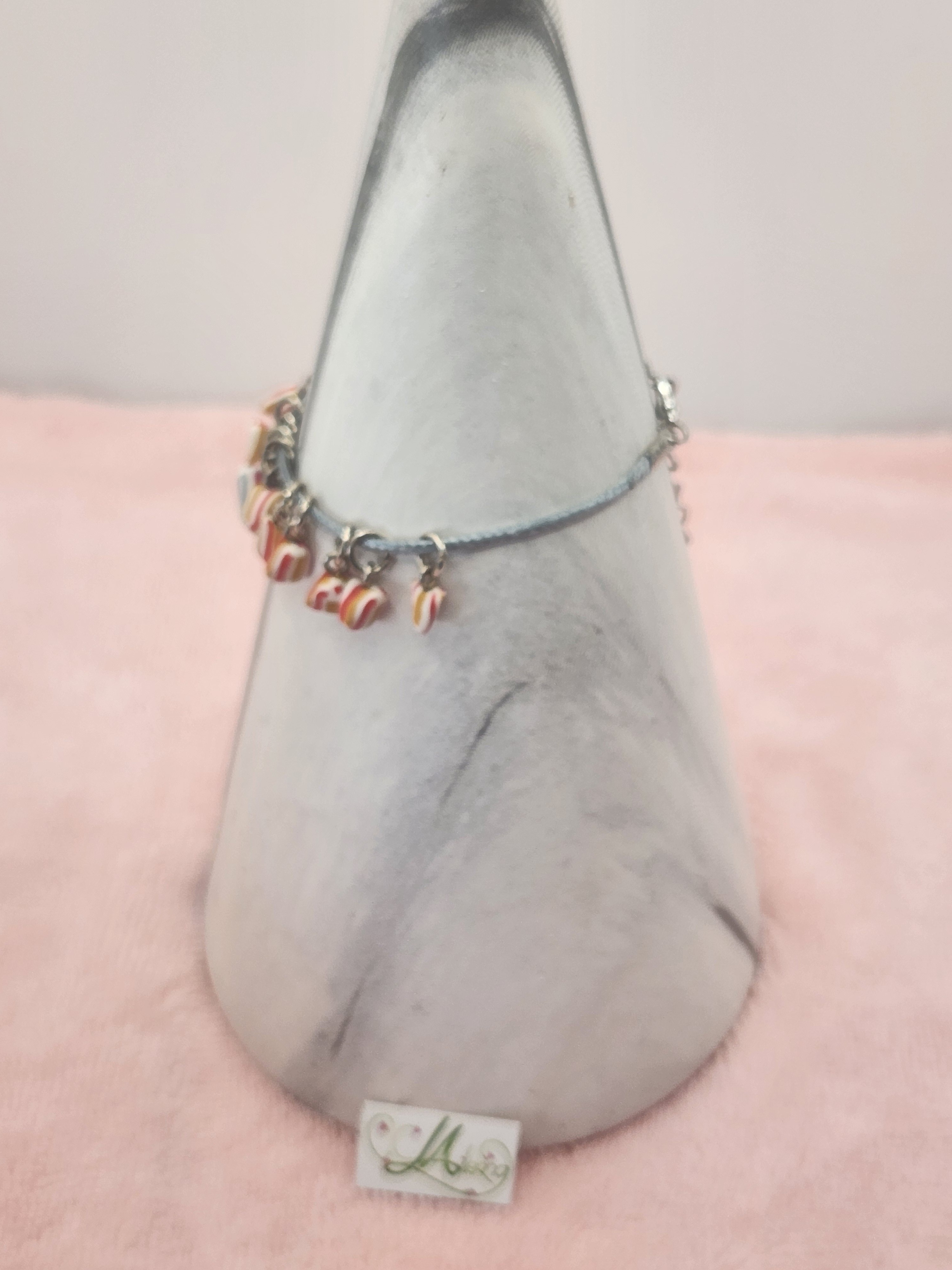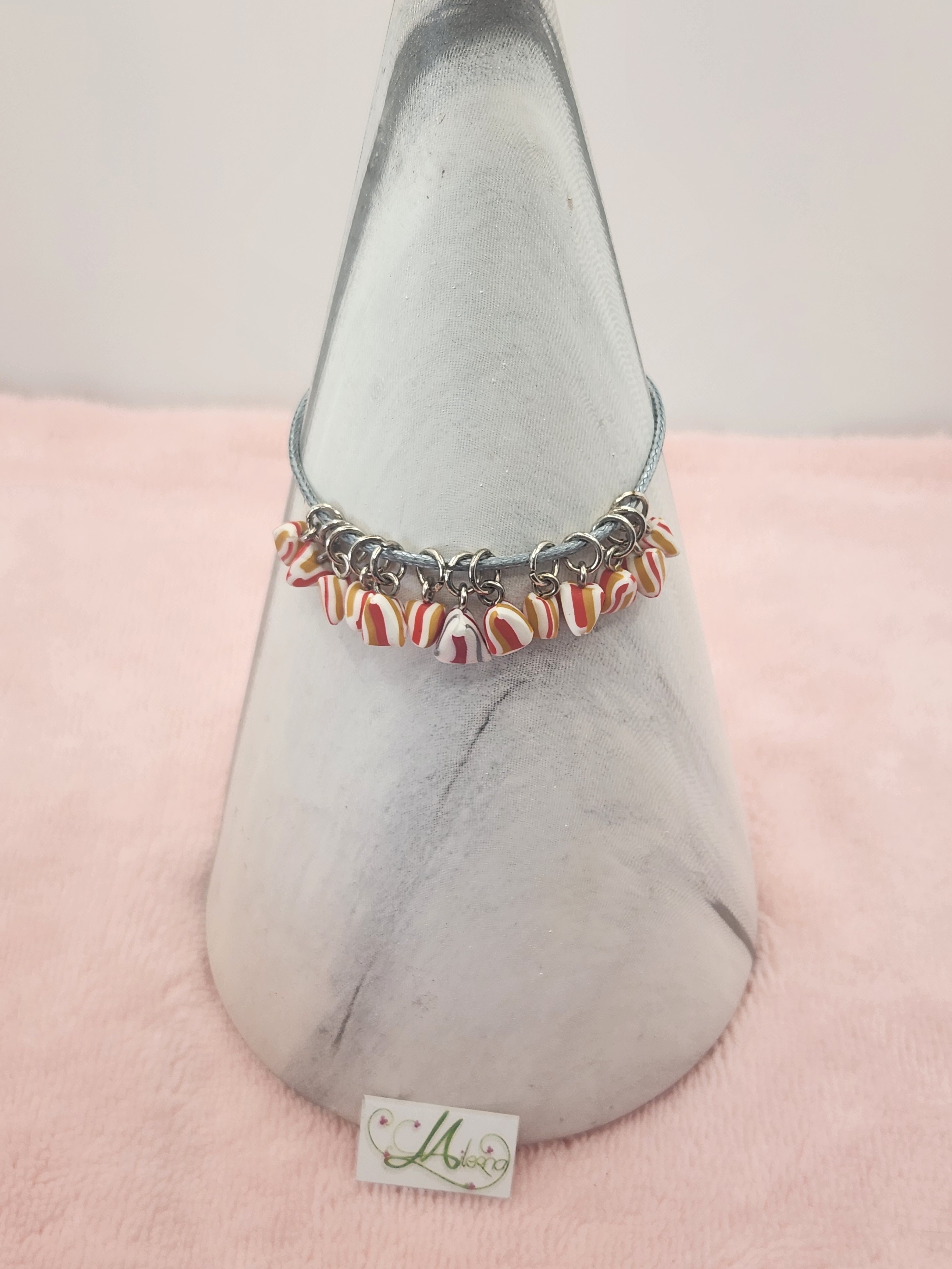 Je vous propose ce bracelet en coton gris avec ses 13 breloques berlingot de Noël en polymère.