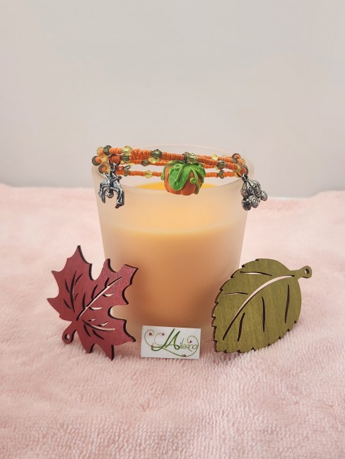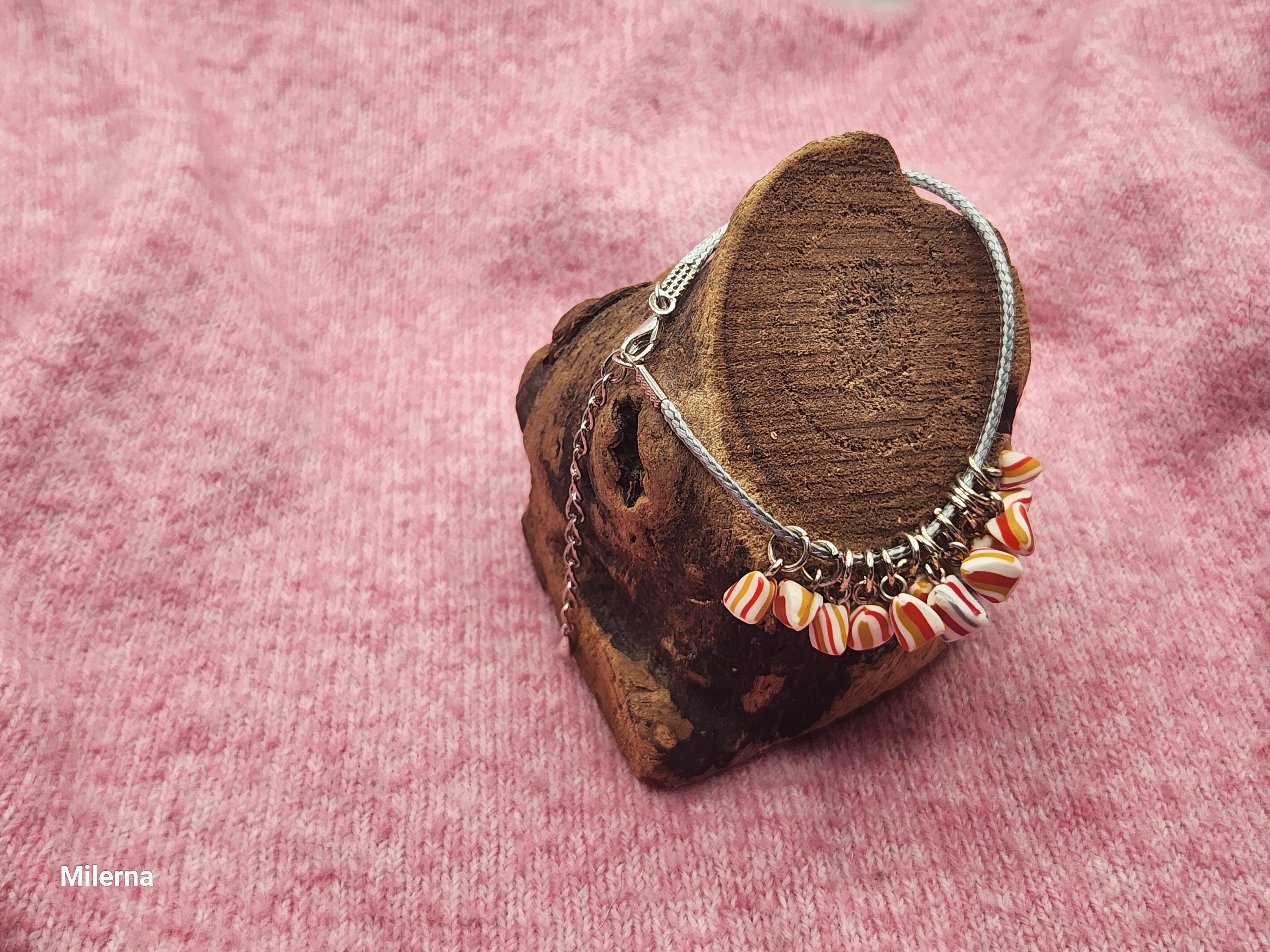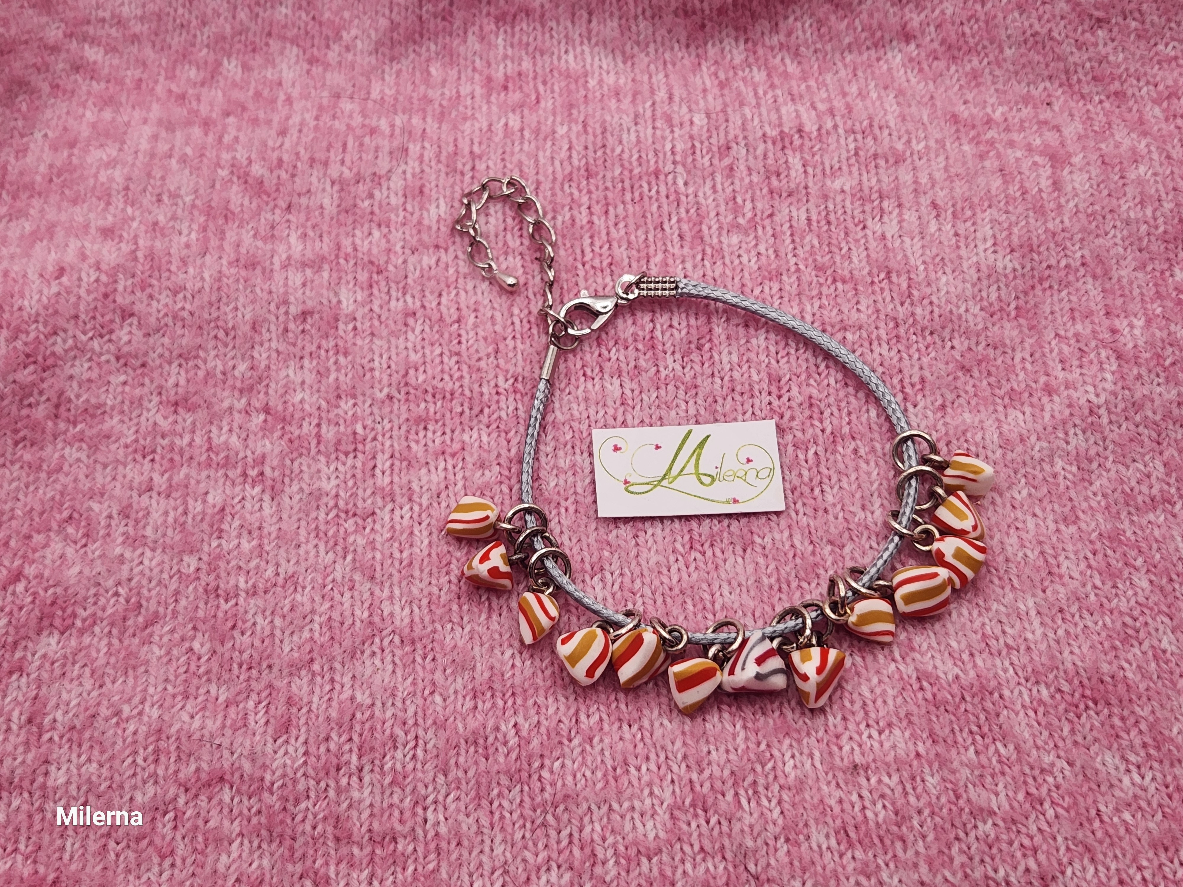 Je vous propose ce bracelet en coton gris avec ses 13 breloques berlingot de Noël en polymère.