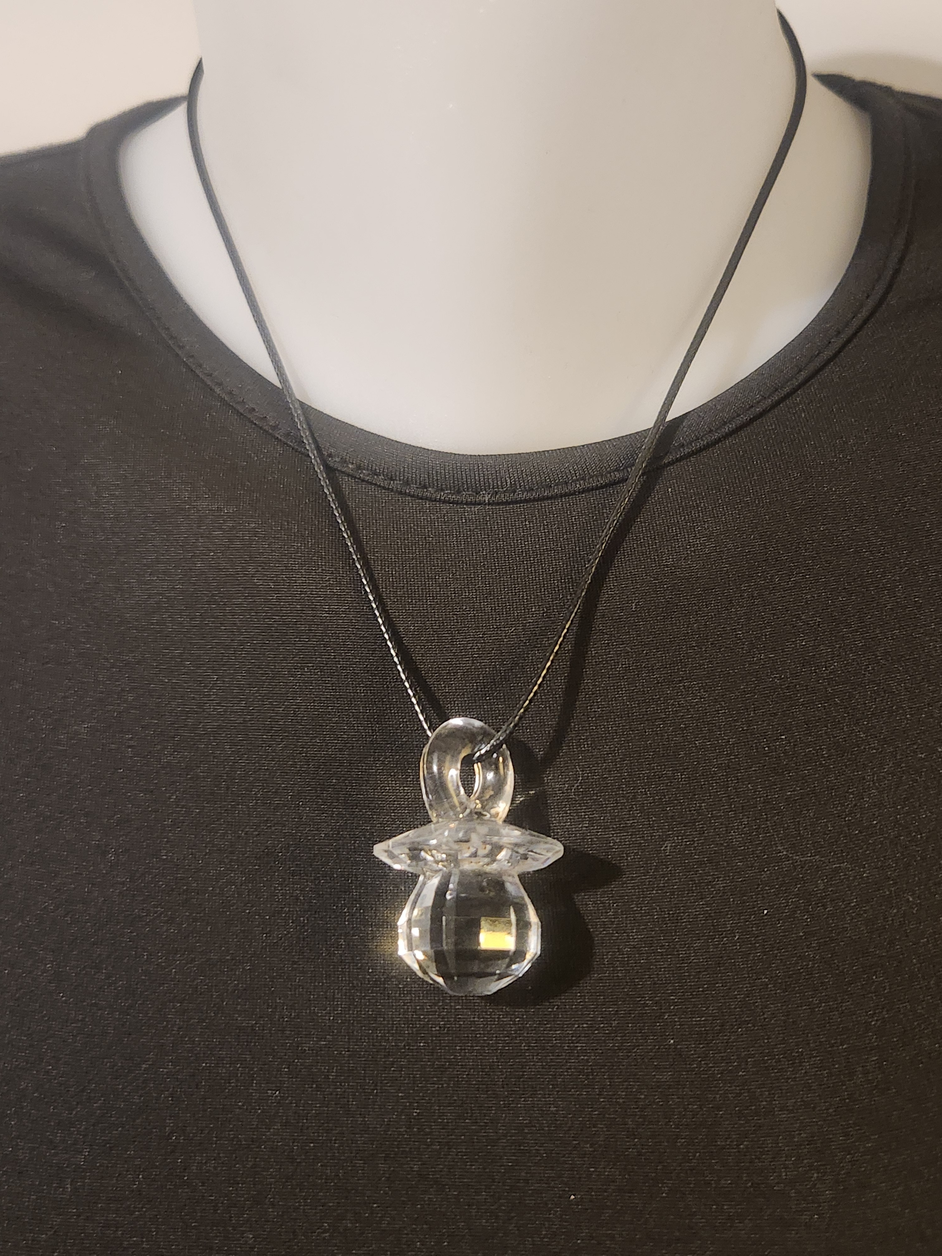 Je vous propose ce pendentif tétine blanche transparente en acrilyque.