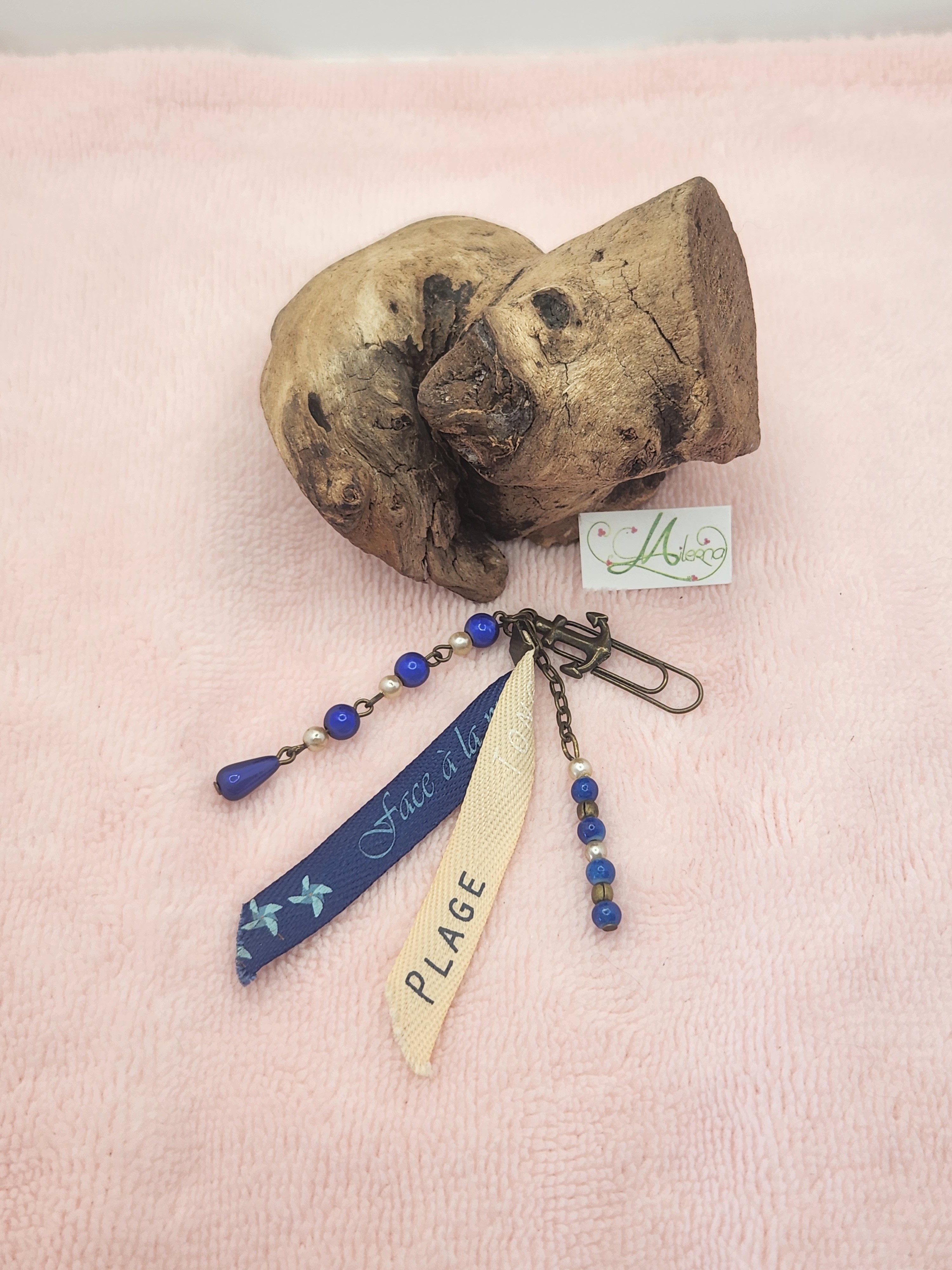 Il se compose de perles bronze, crème et bleue, ainsi que de deux rubans "face à la mer" et "Plage, tongs"