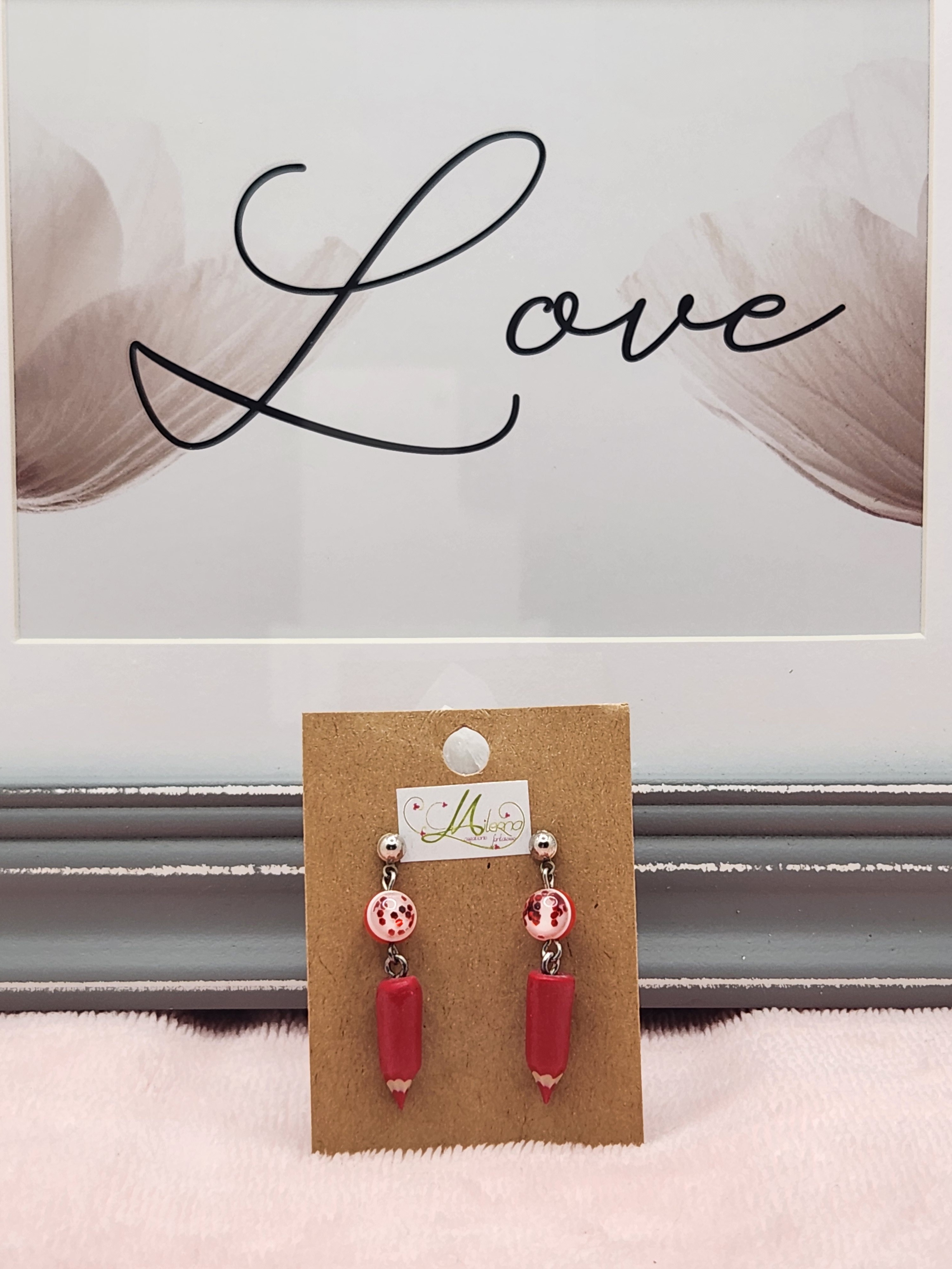 Je vous propose cette paire de boucles d'oreilles fantaisie, crayon en polymère, de couleur rouge.