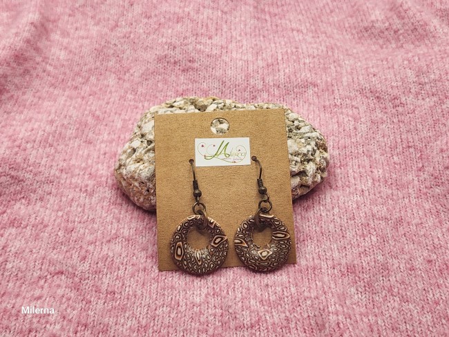 Paire de boucles, ronde, ton de vert, bronze en polymère