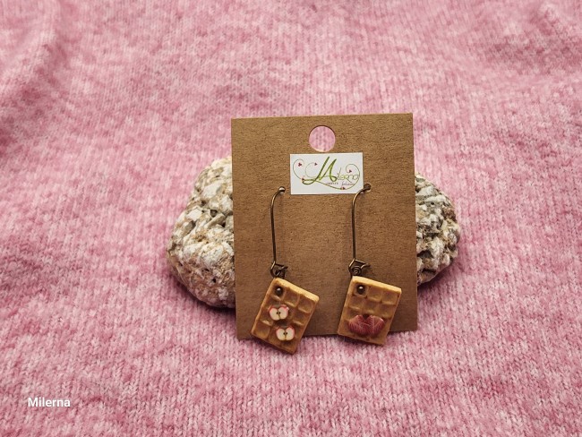 Boucles d'oreilles petit biscuit gourmand en polymère avec des perles dorées.